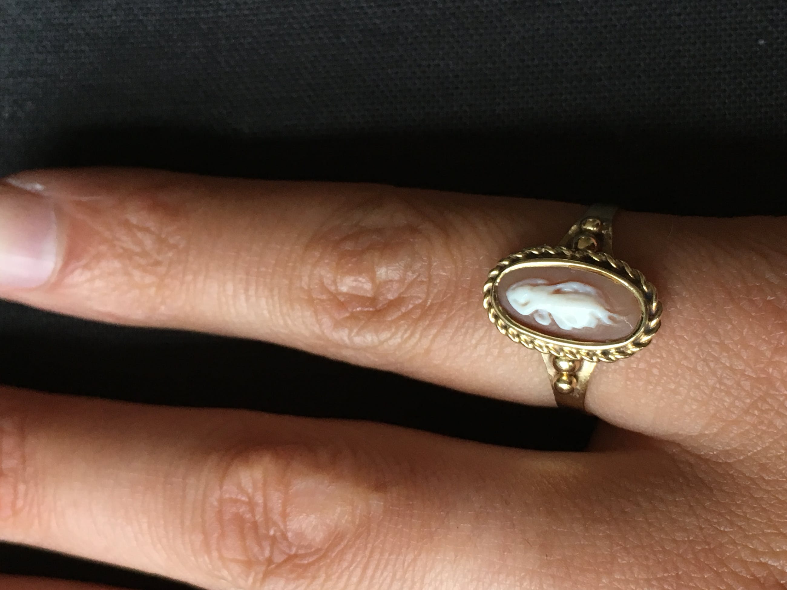 | De ring is gedragen, maar verkeerd in goede staat evenals de camee | |||