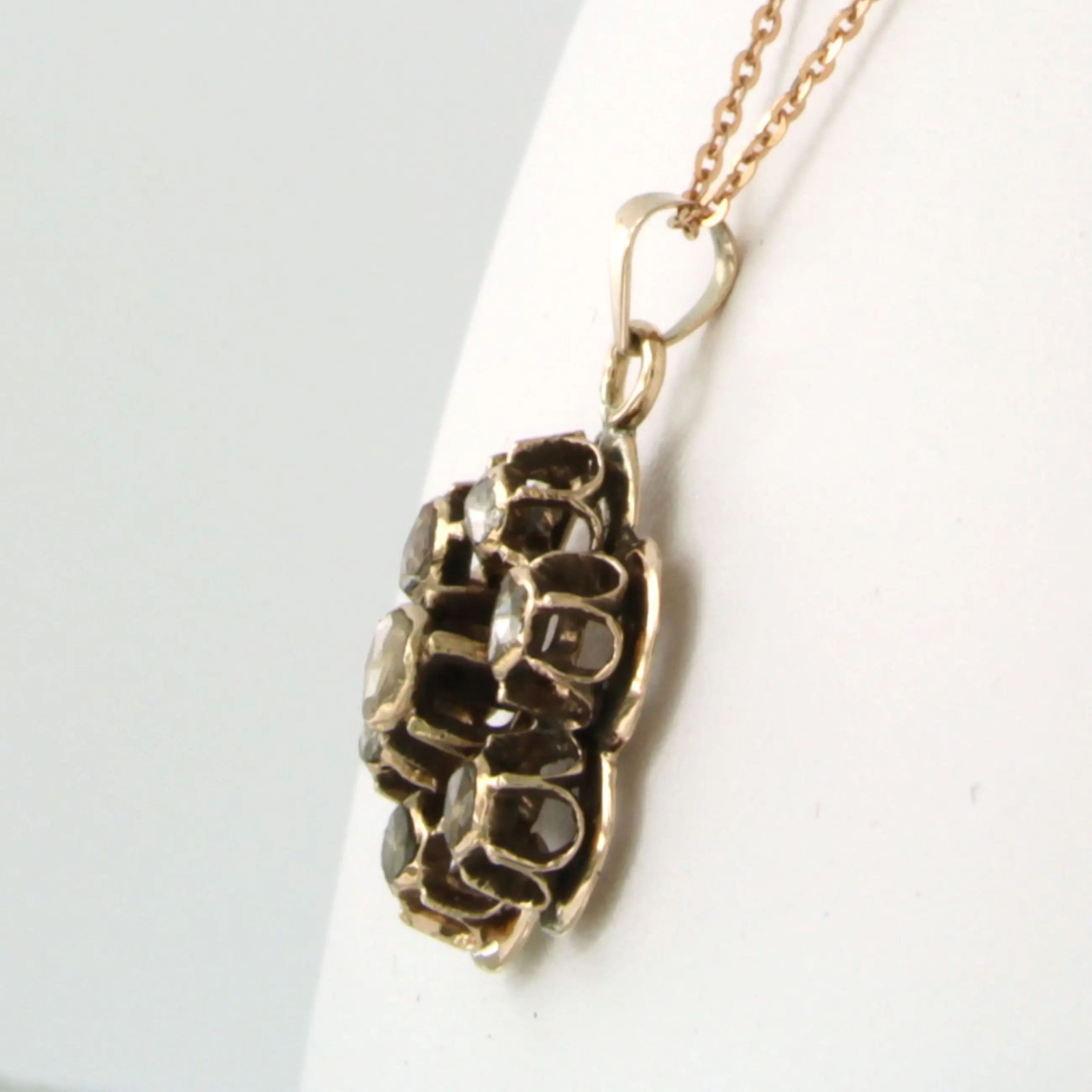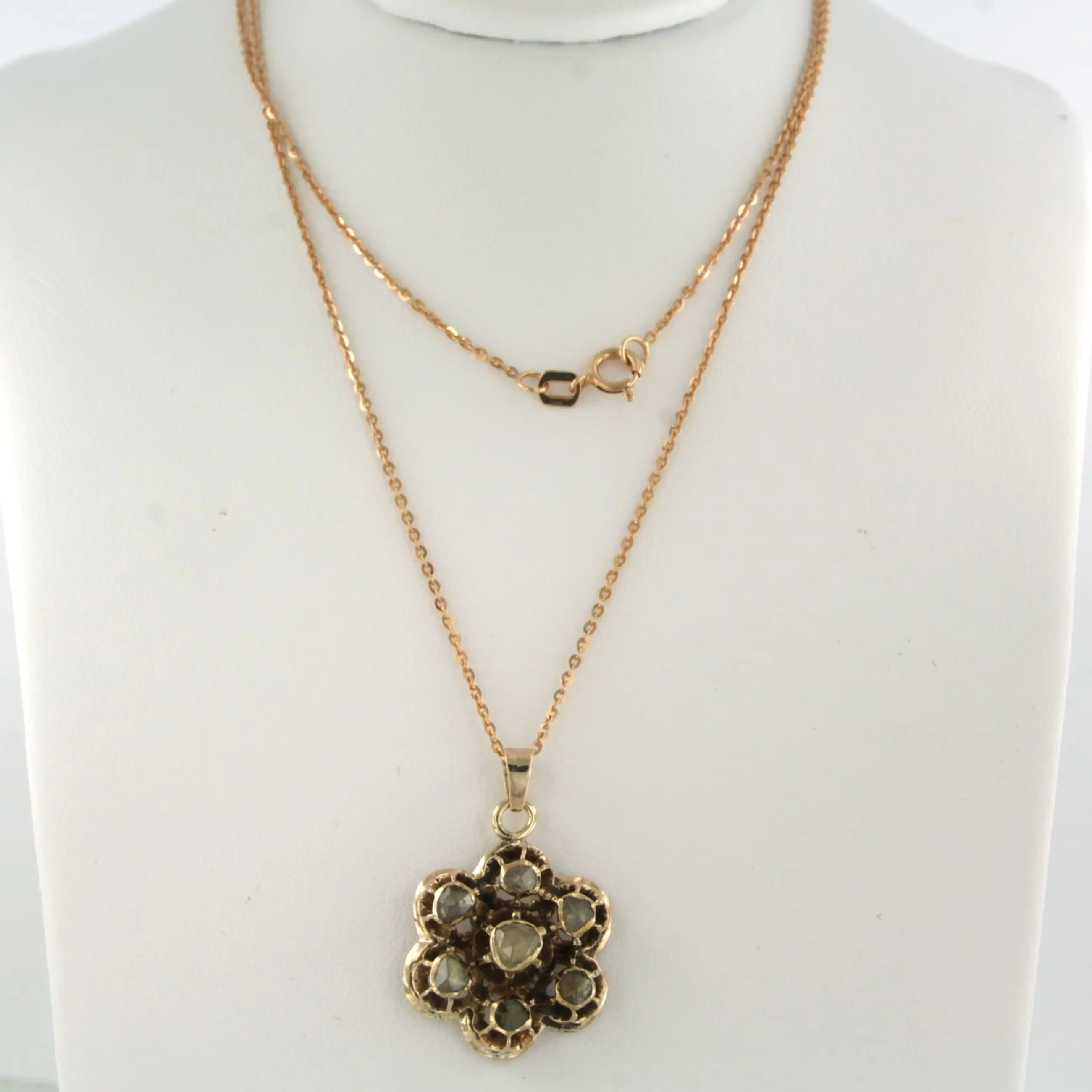 14k gouden collier en hanger met roos geslepen diamant totaal circa 0.15ct
