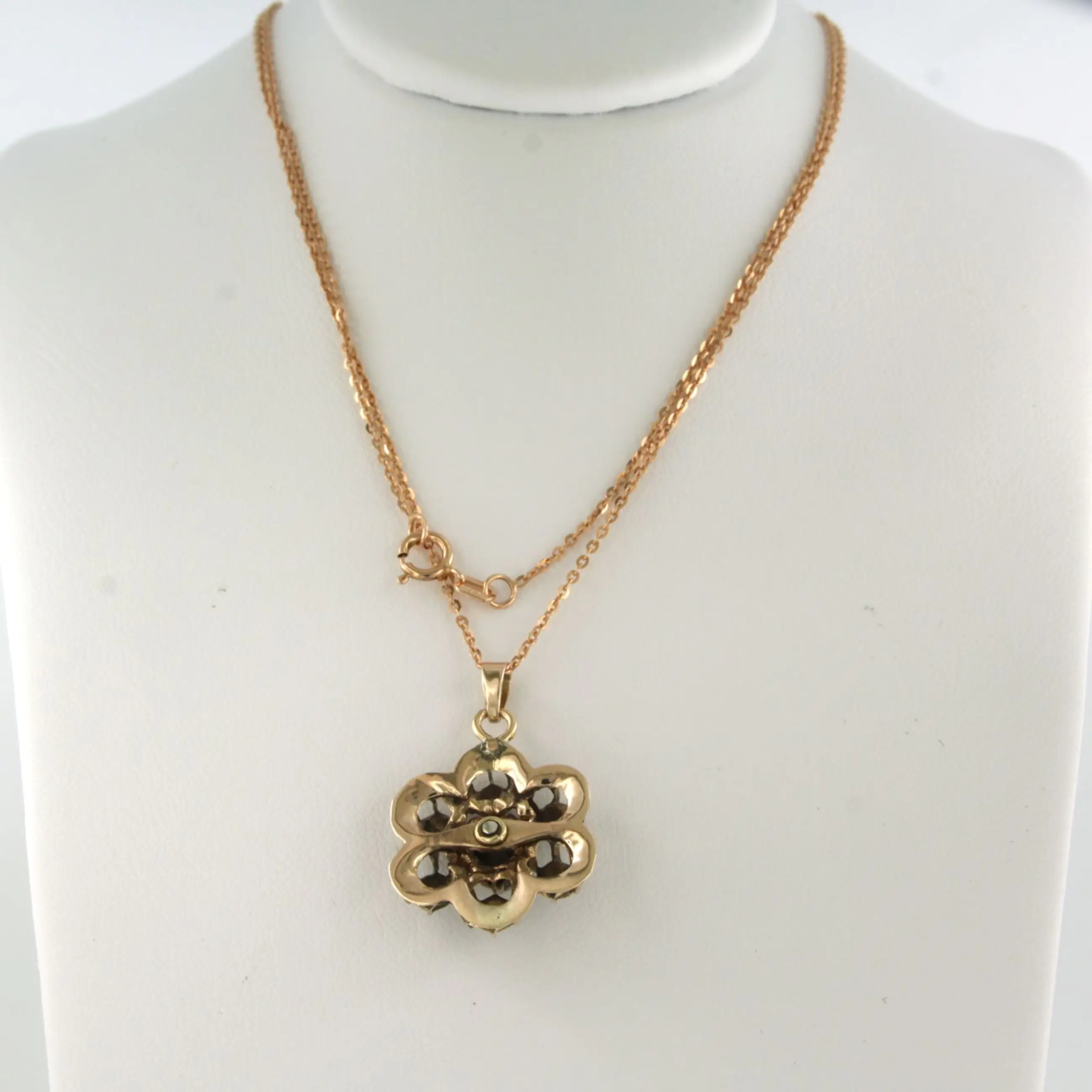 14k rood gouden collier met hanger bezet met roos geslepen diamant totaal circa 0.15ct – G/H - SI - 45cm lang