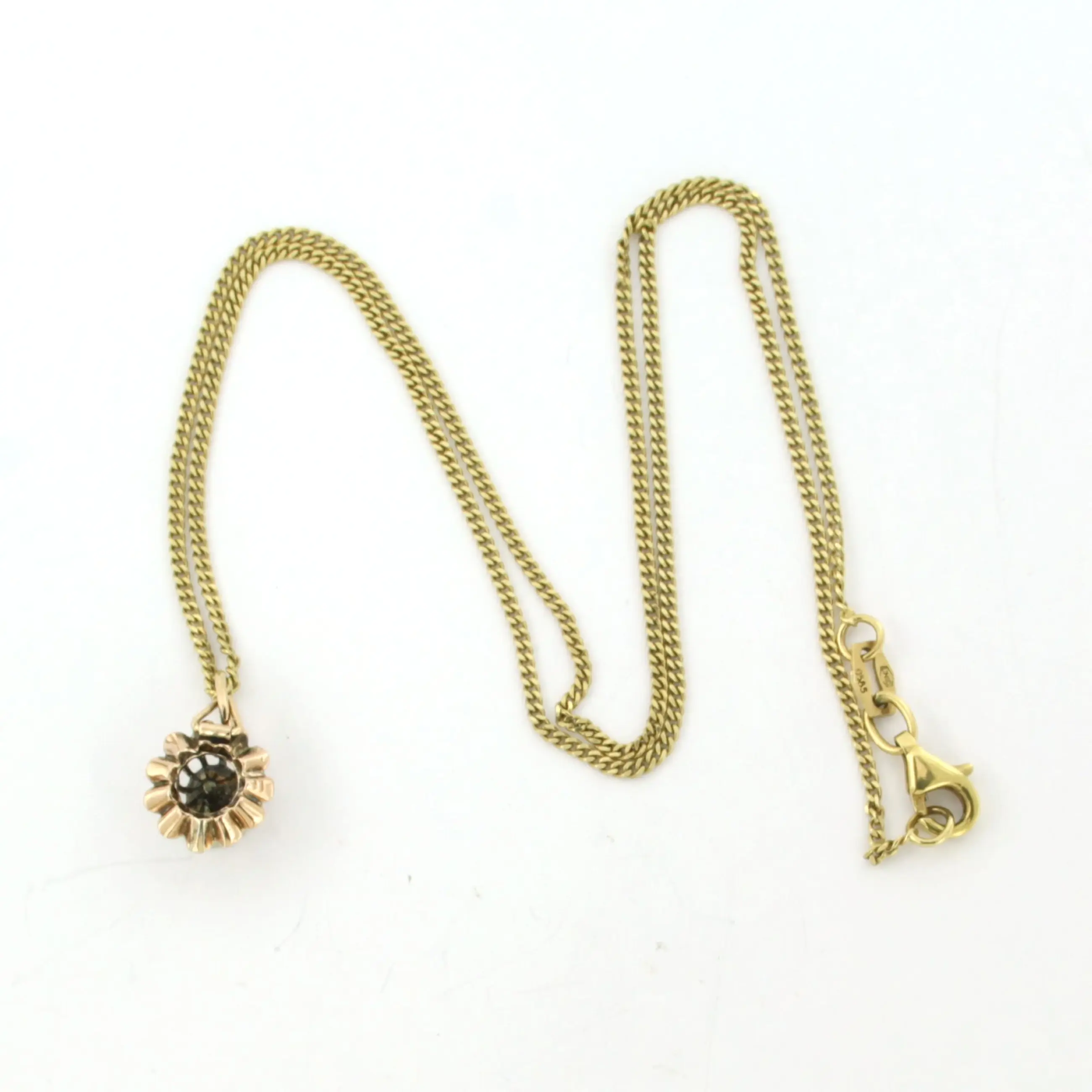 14k gouden collier en hanger met roos geslepen diamant totaal circa 0.25ct