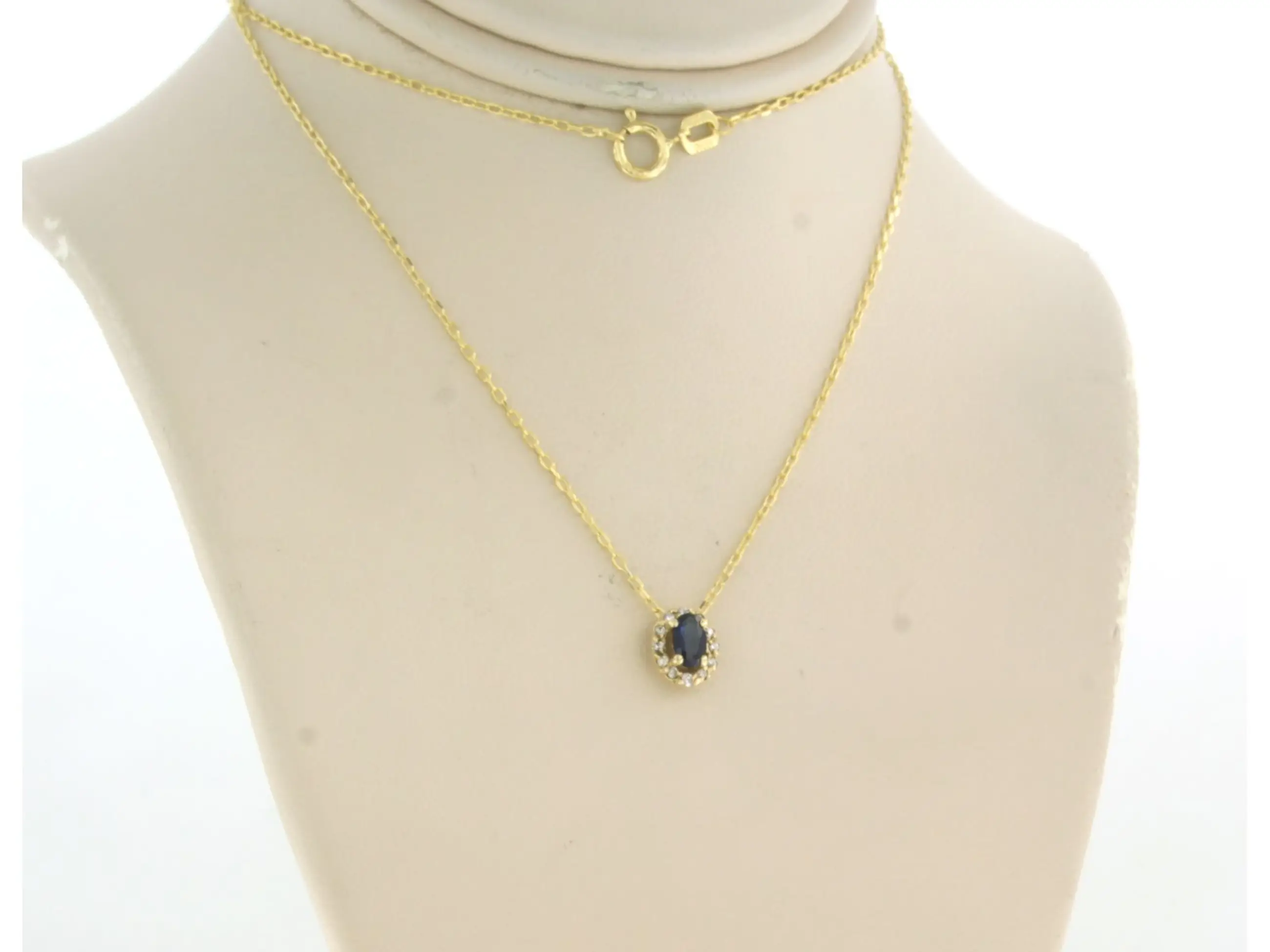 14k geelgouden collier met hanger bezet met saffier 0.30 karaat en briljant geslepen diamant 0.05ct - F/G - VS/SI - 45cm