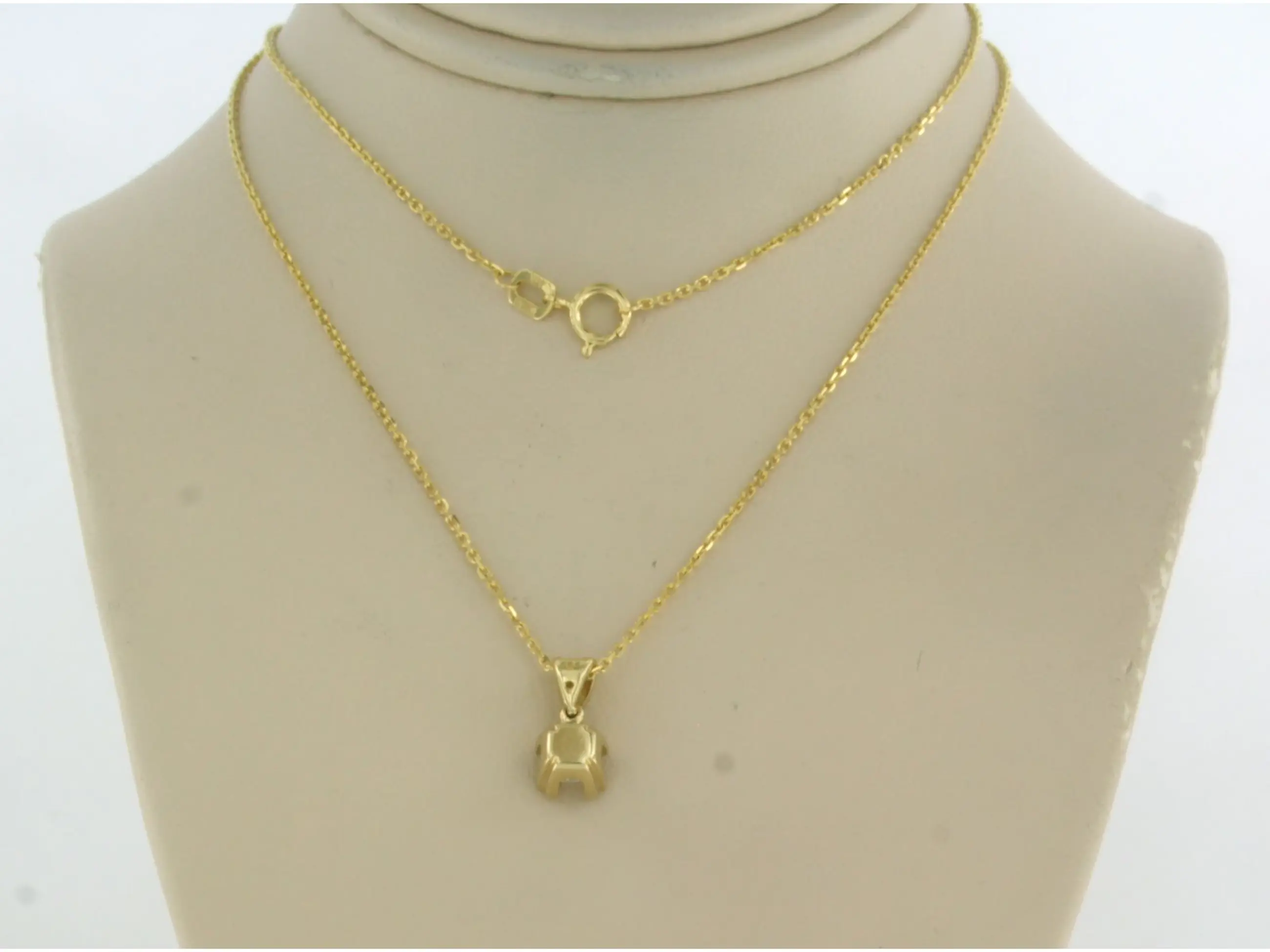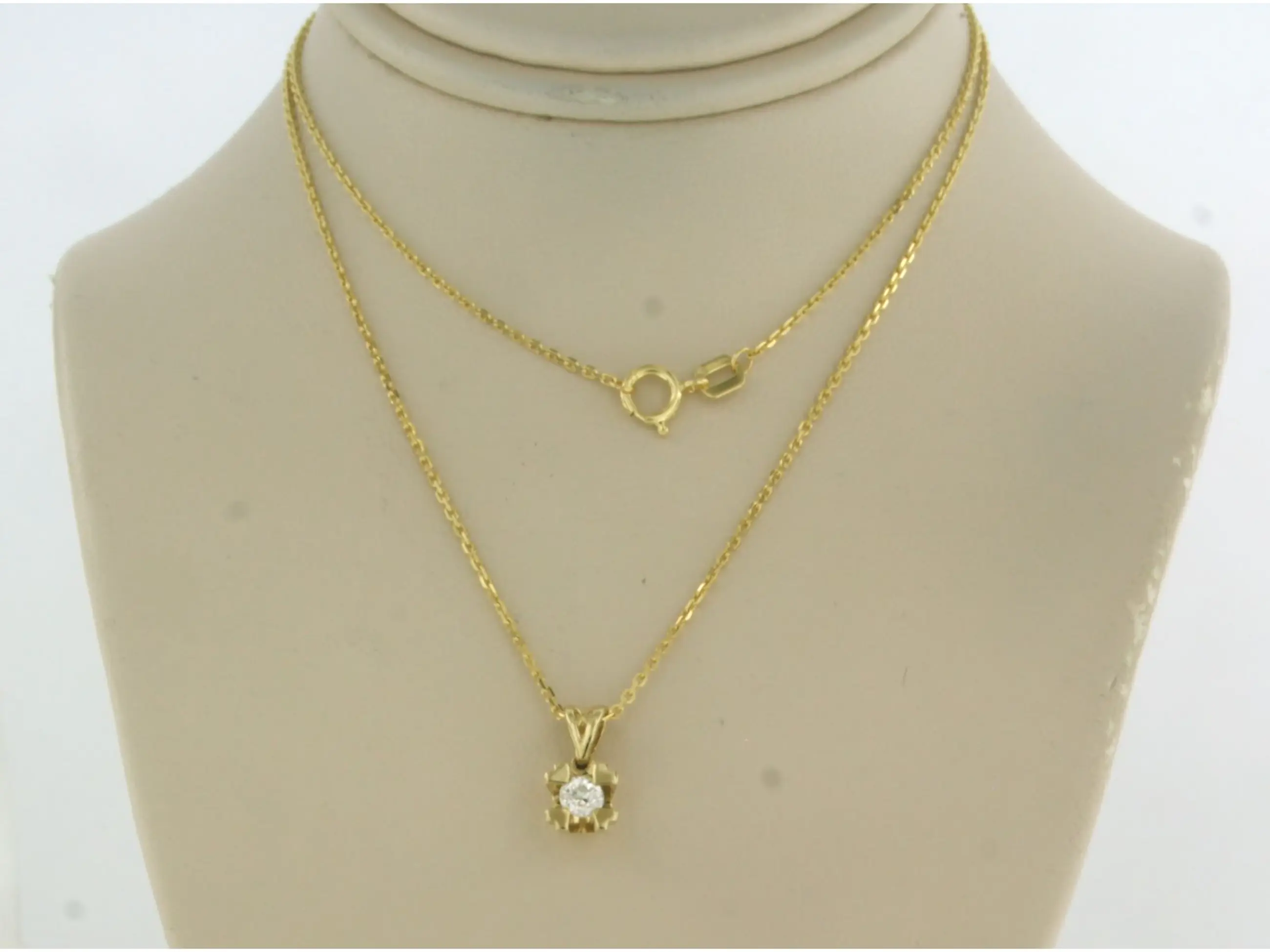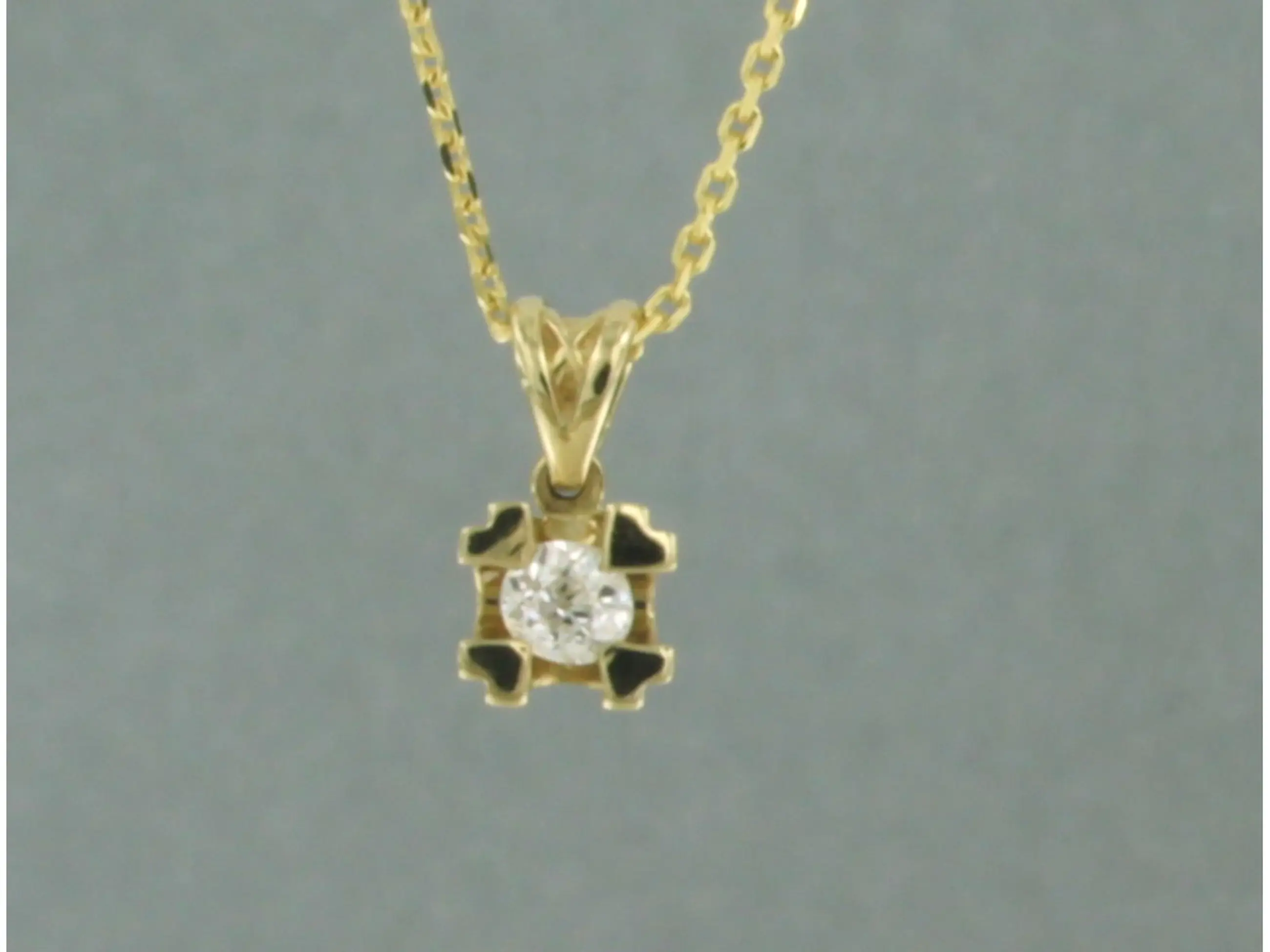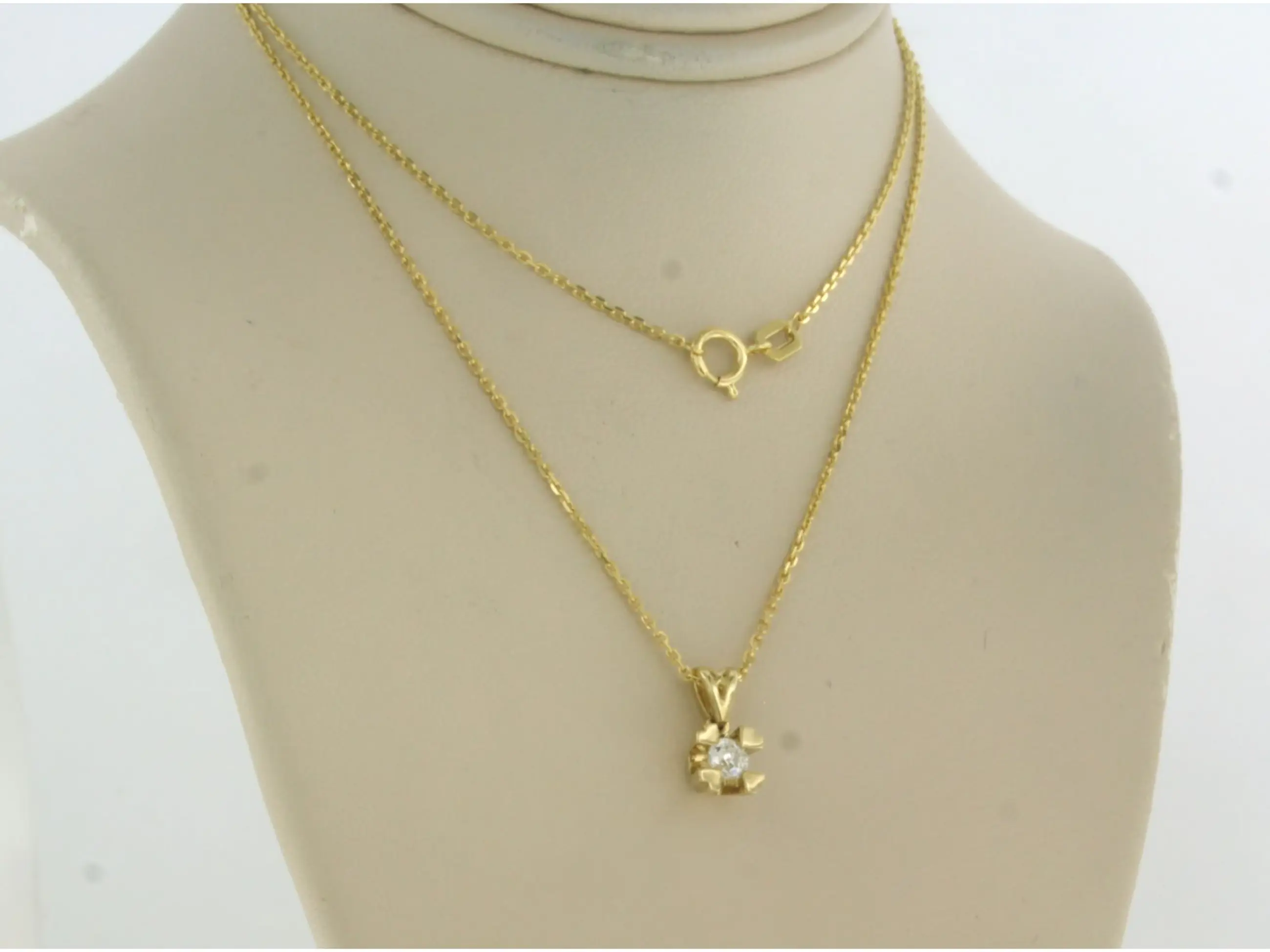14k geel gouden collier met een solitair hanger bezet met oud Amsterdams slijpvorm geslepen diamant tot. 0,12ct - H/I - SI - 45 cm lang