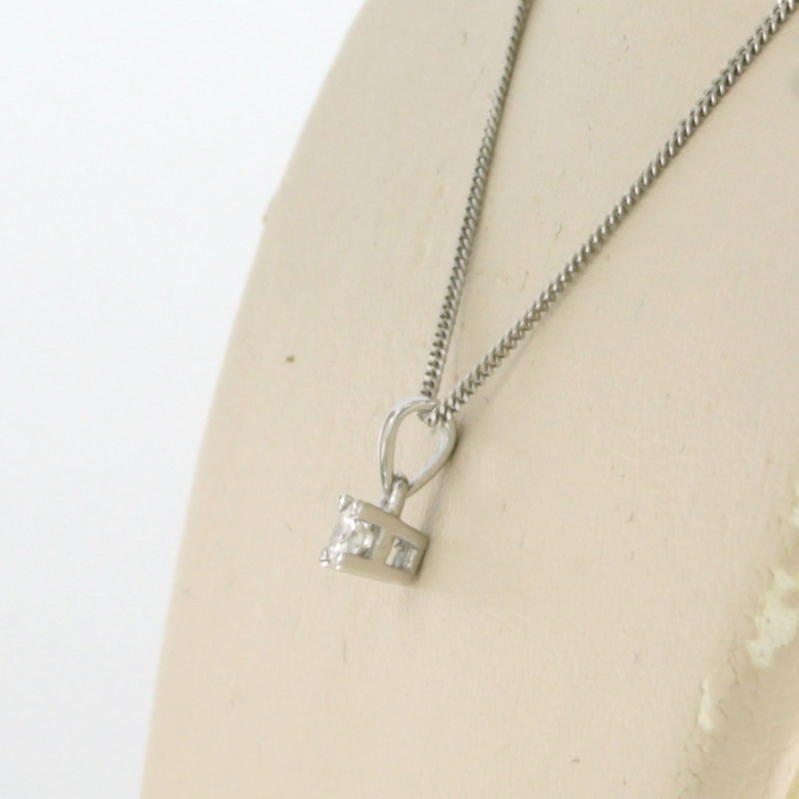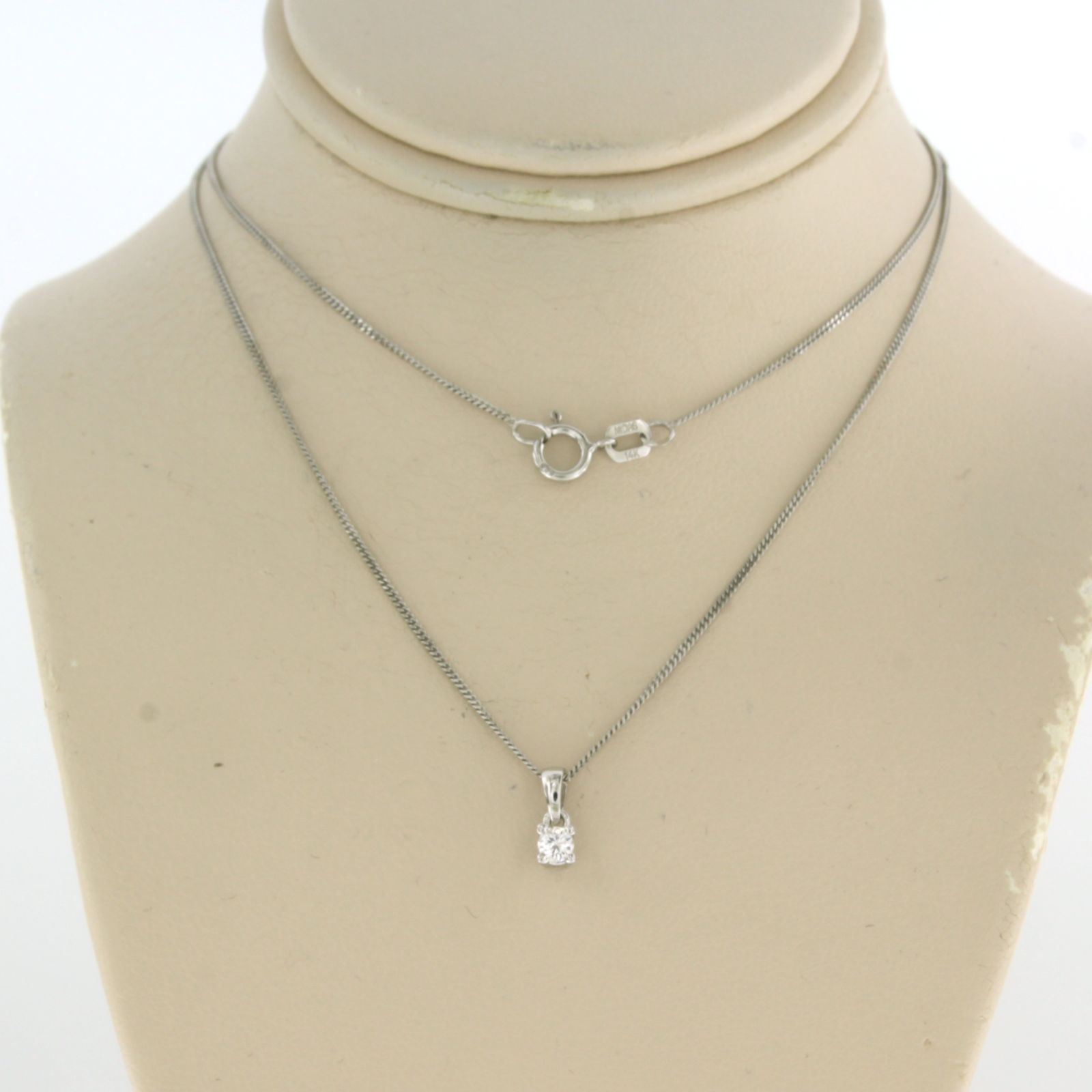 14k wit gouden collier met hanger bezet met briljant geslepen diamant 0.10 ct - F/G - VS/SI - 45cm lang