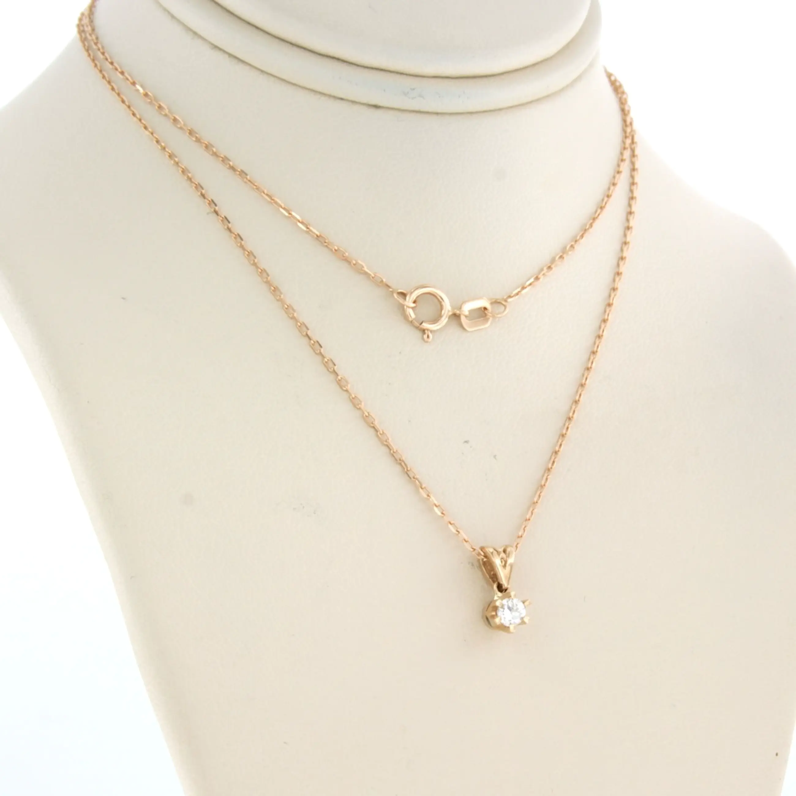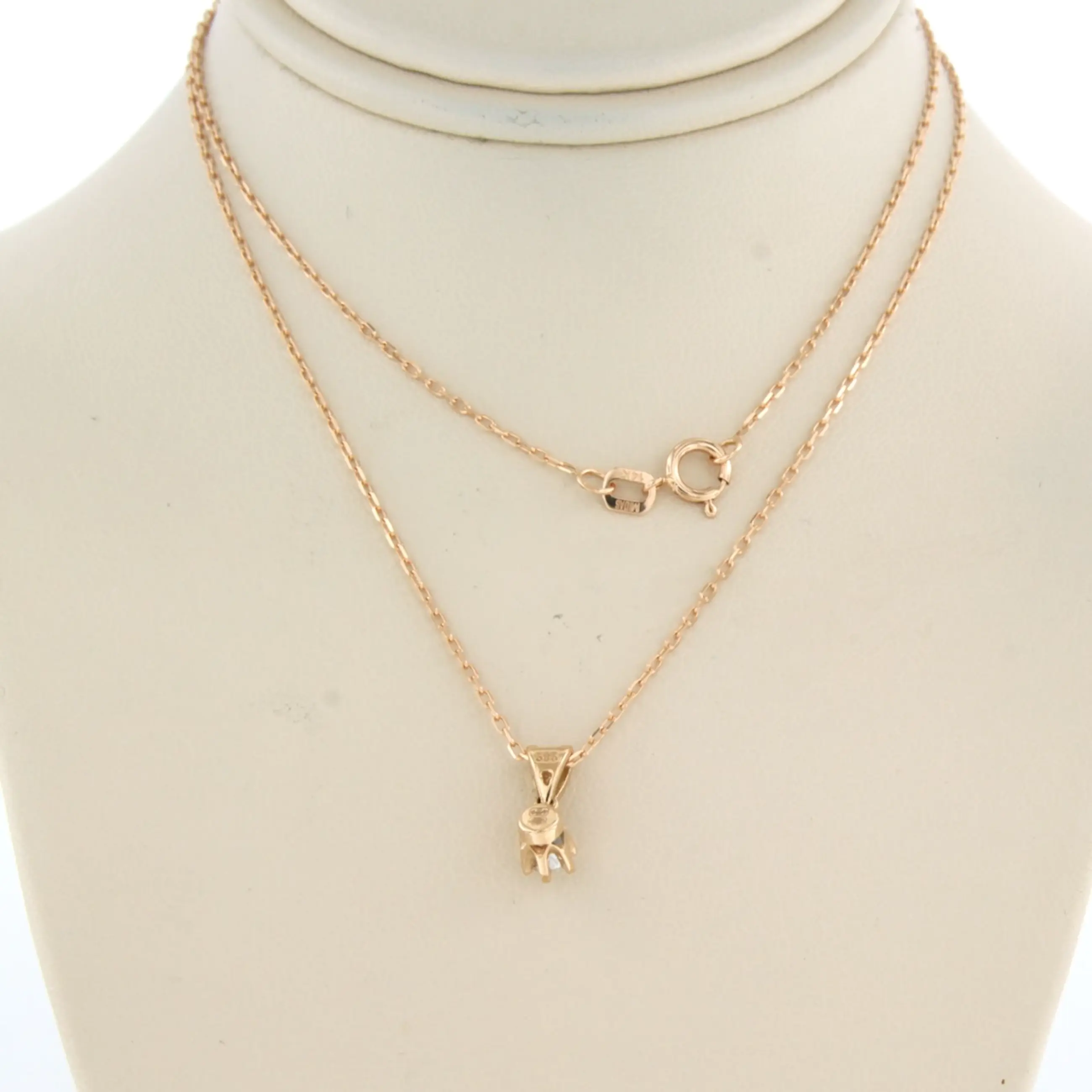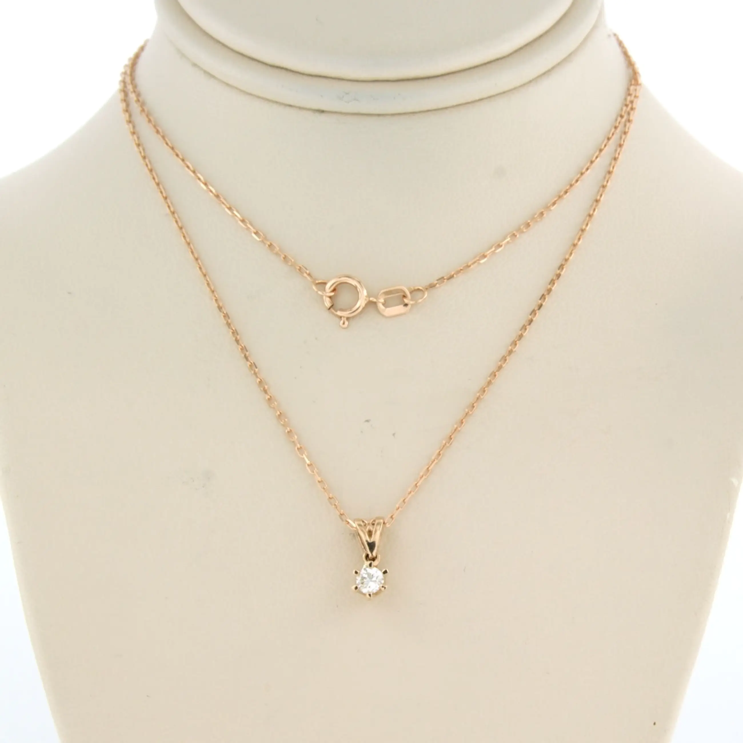 14k rosé gouden collier met een solitair hanger bezet met Bolsjewiek geslepen diamant tot. 0,12ct - I/J - SI - 45 cm lang