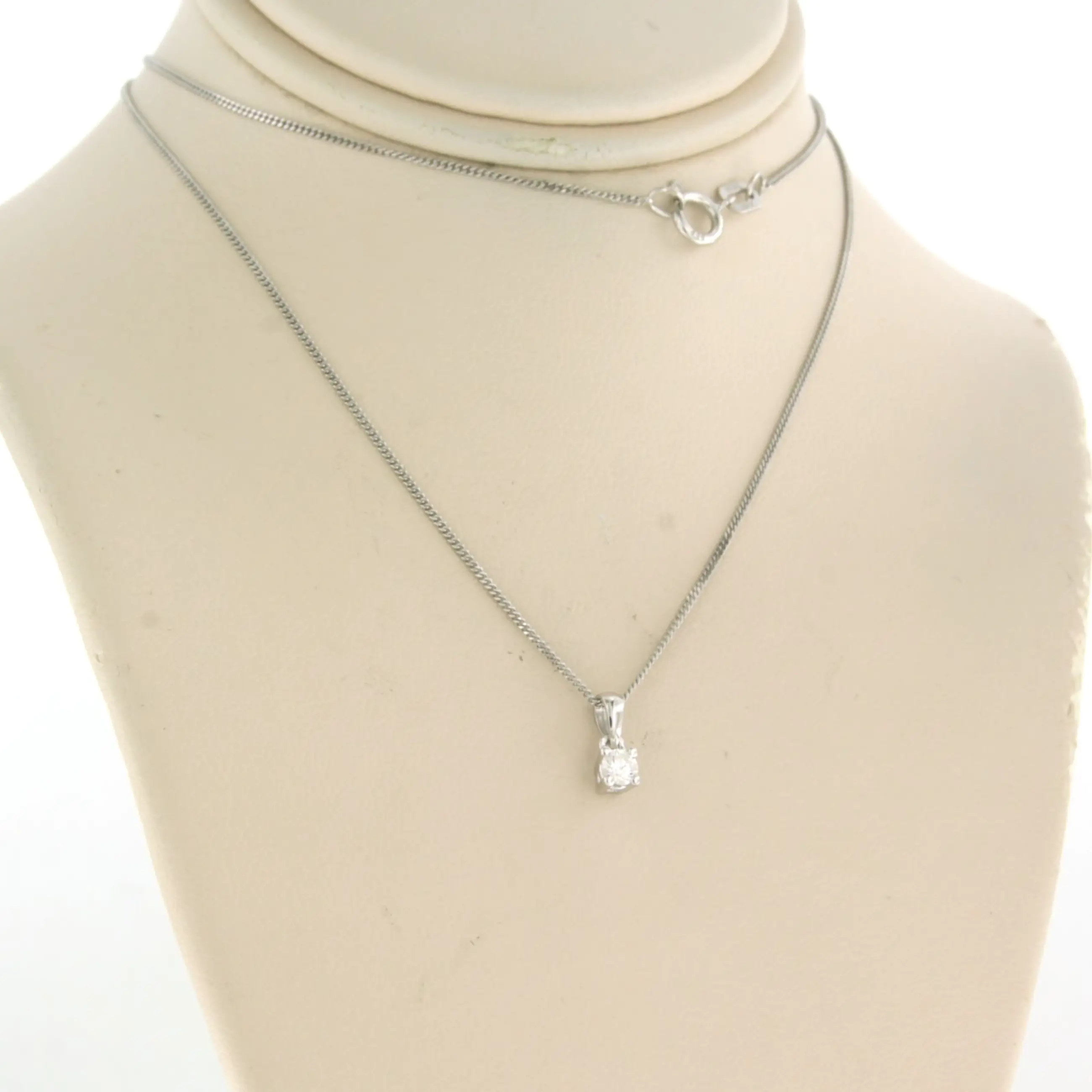 14k witgouden collier met solitair hanger bezet met briljant geslepen diamant tot. 0,10ct - F/G - VS/SI - 45 cm lang