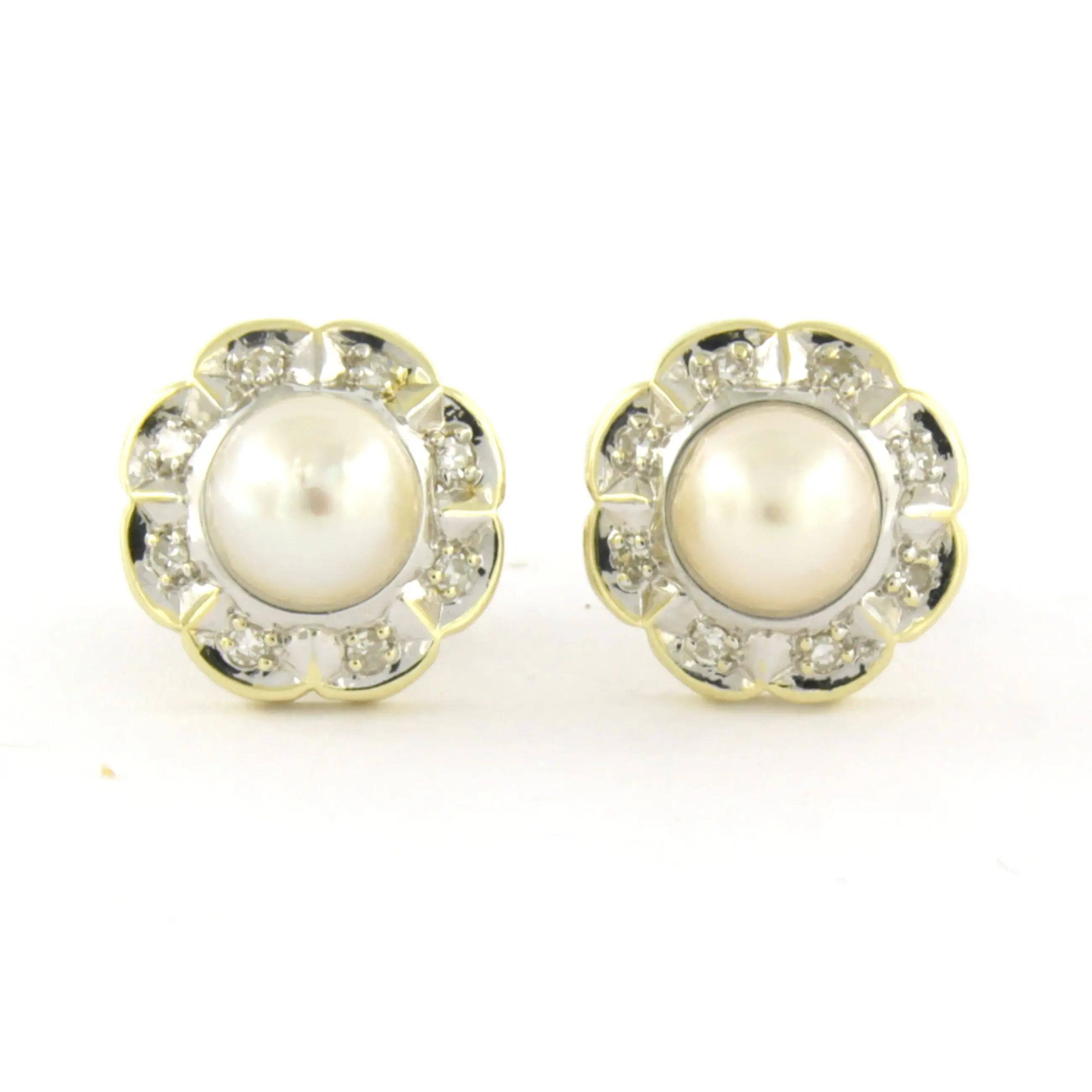 14k bicolour gouden oorknoppen bezet met parel en single cut geslepen diamant tot. 0.06ct – F/G – VS/SI