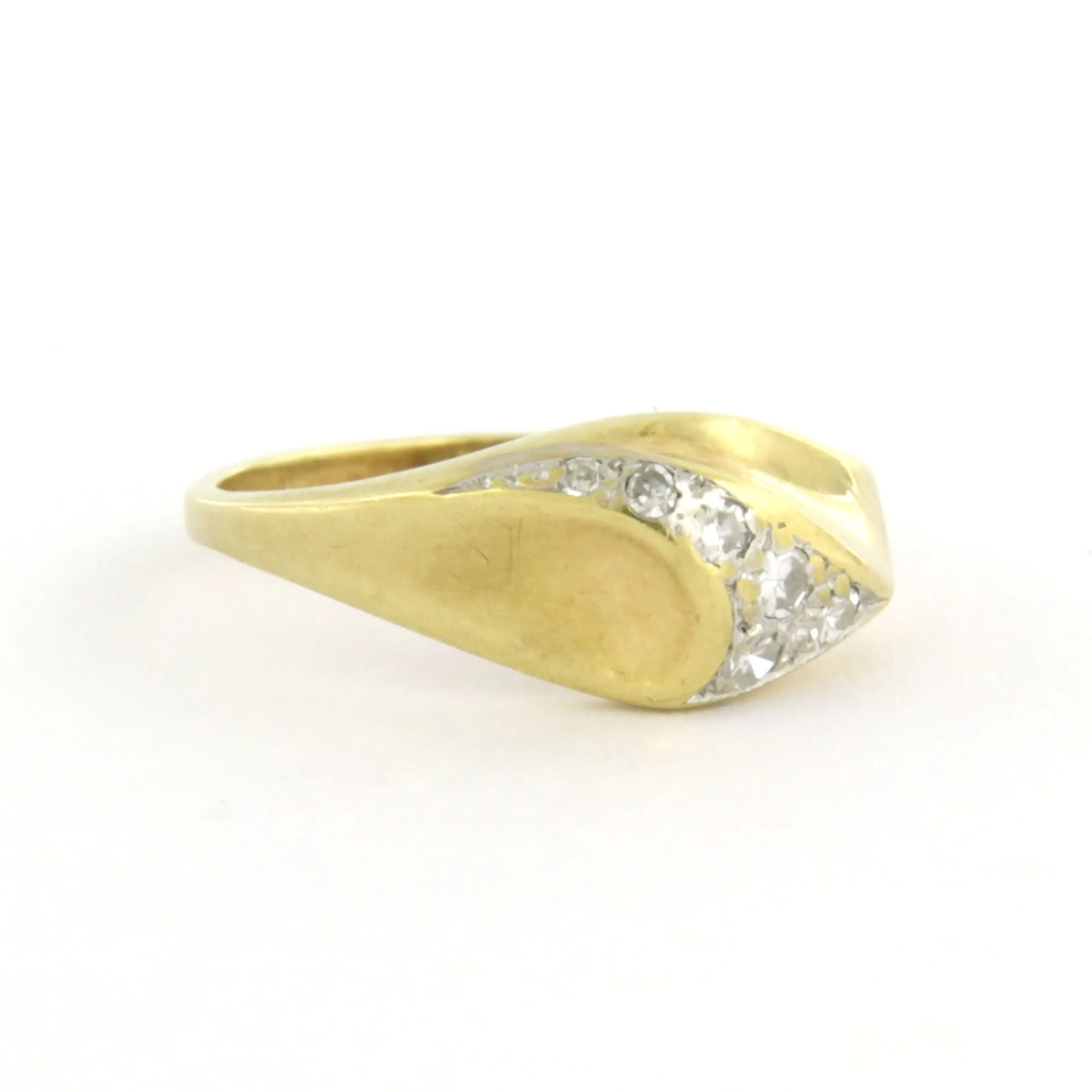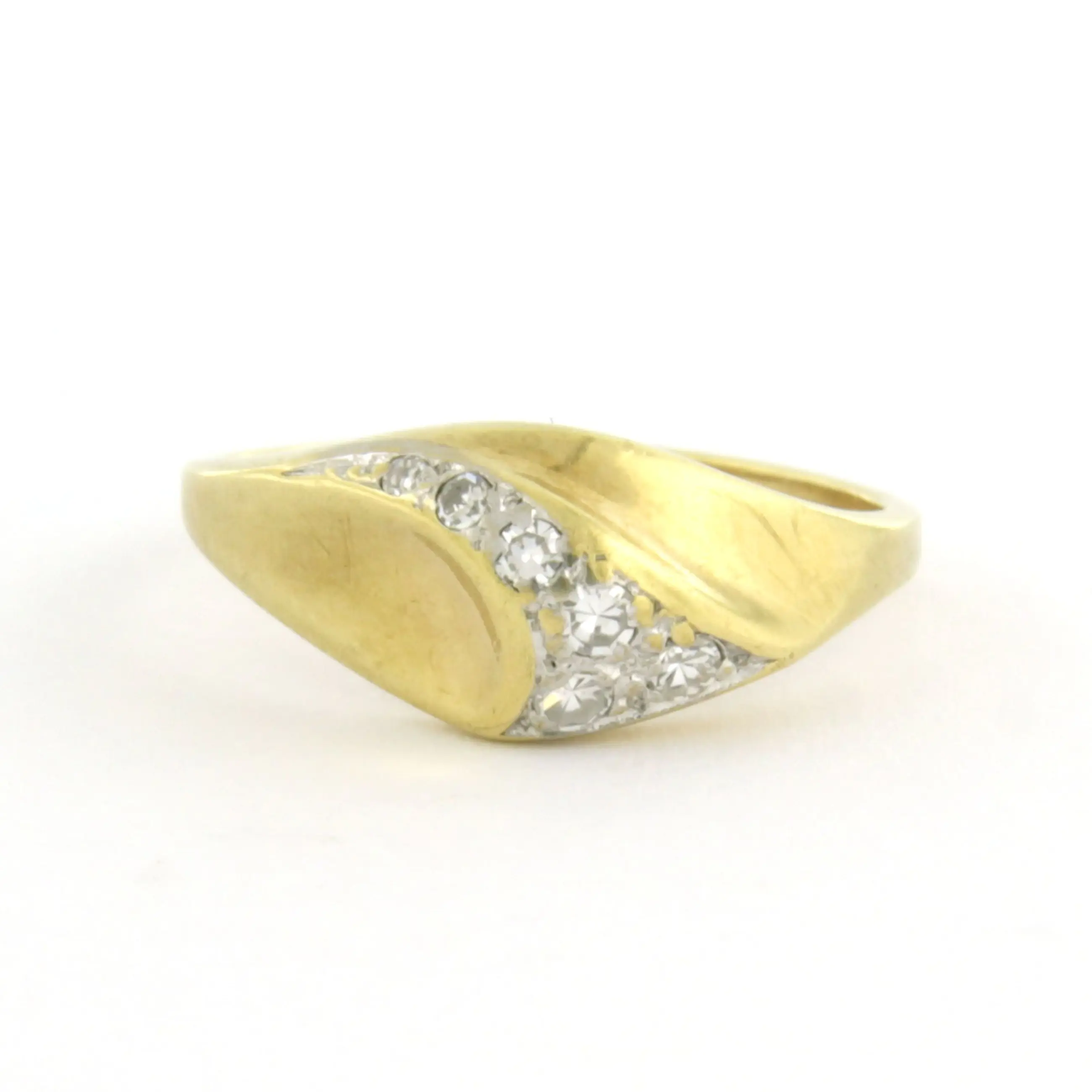 14k bicolour gouden ring met single cut geslepen diamant tot. 0.10ct – F/G - VS/SI - ringmaat 16(50)
