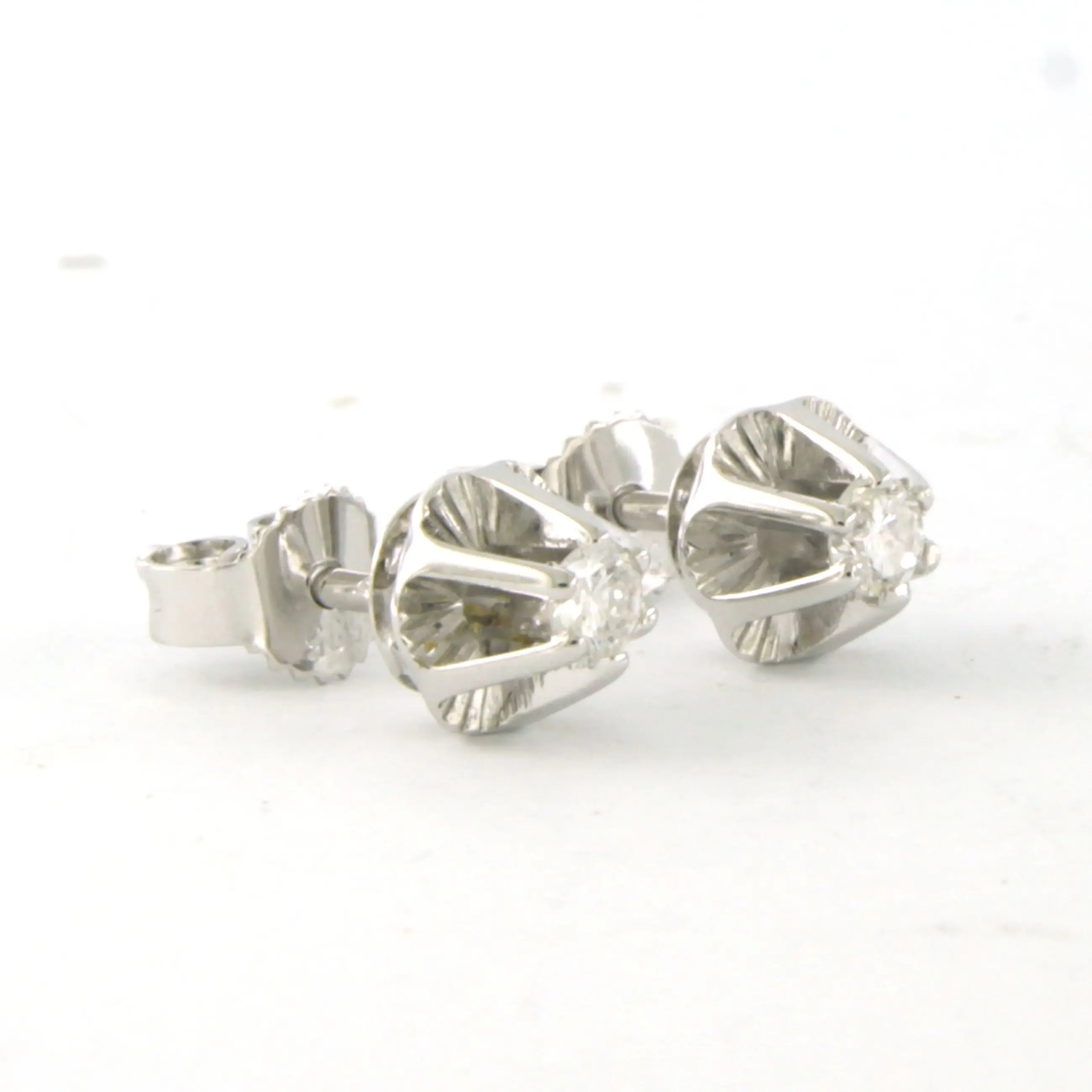 14k wit gouden solitair oorknoppen bezet met briljant geslepen diamant tot. 0,16ct - F/G - VS/SI