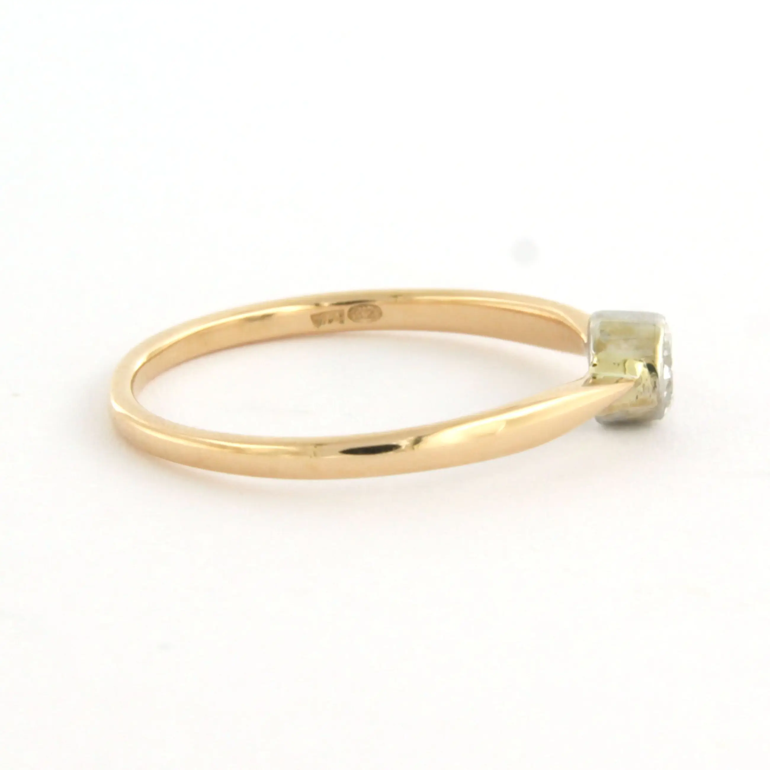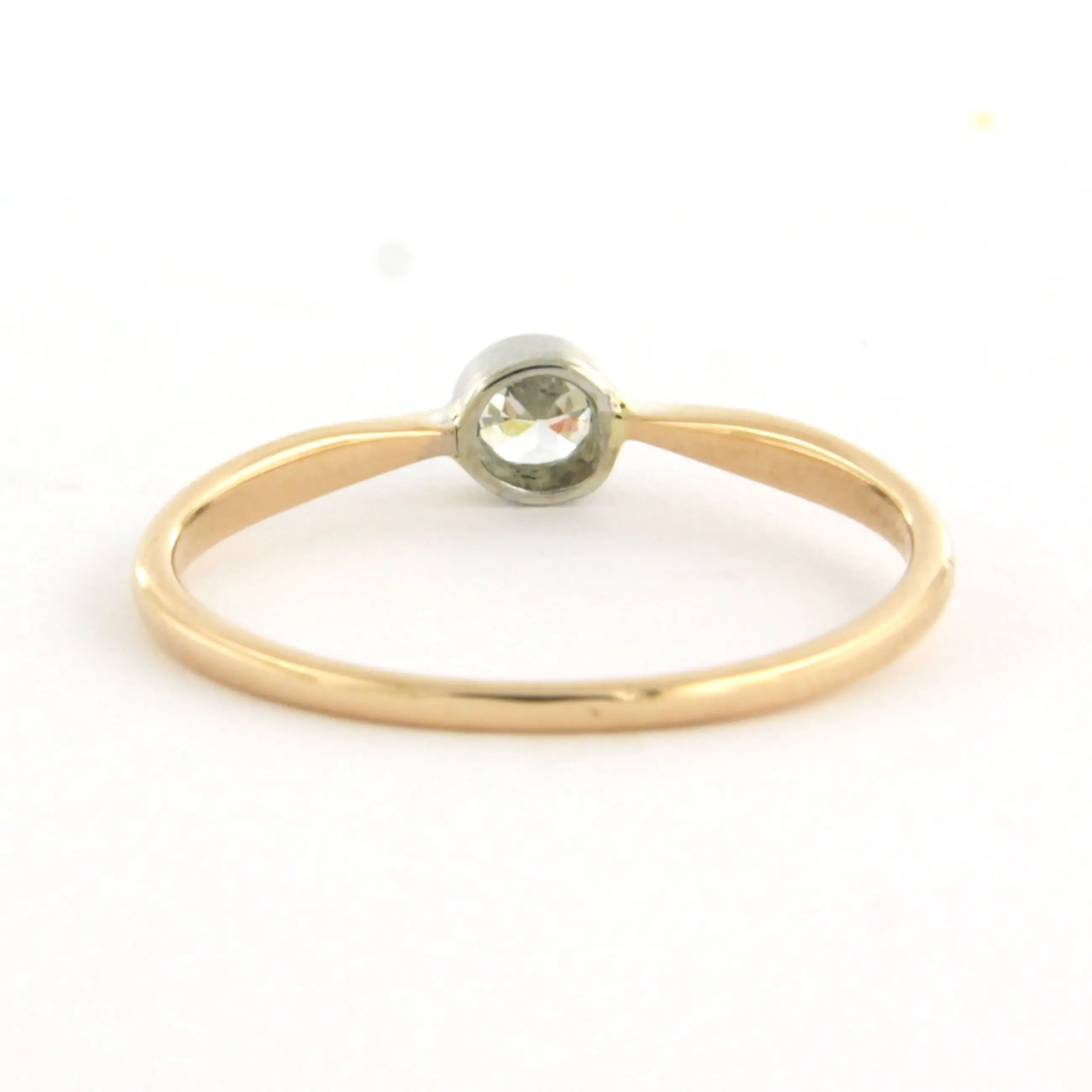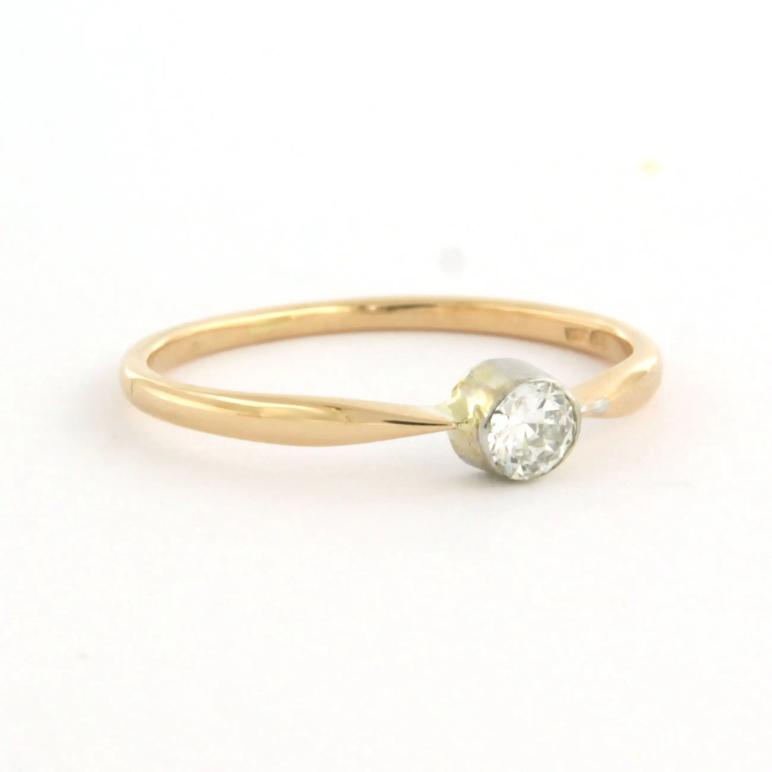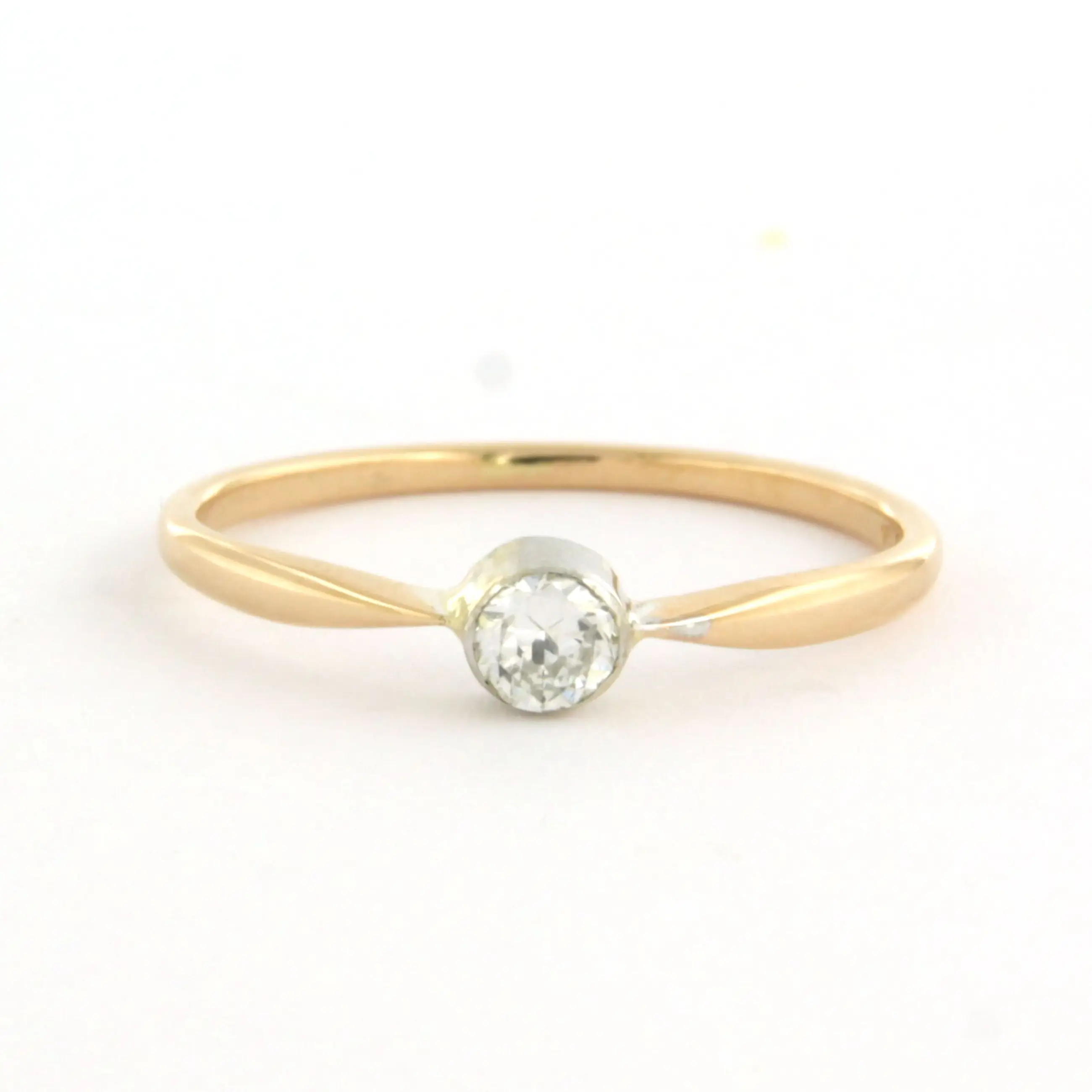 14k bicolour gouden solitair ring bezet met oud Amsterdams slijpvorm geslepen diamant tot. 0.18ct – G/H - SI - ringmaat 16.5(52)