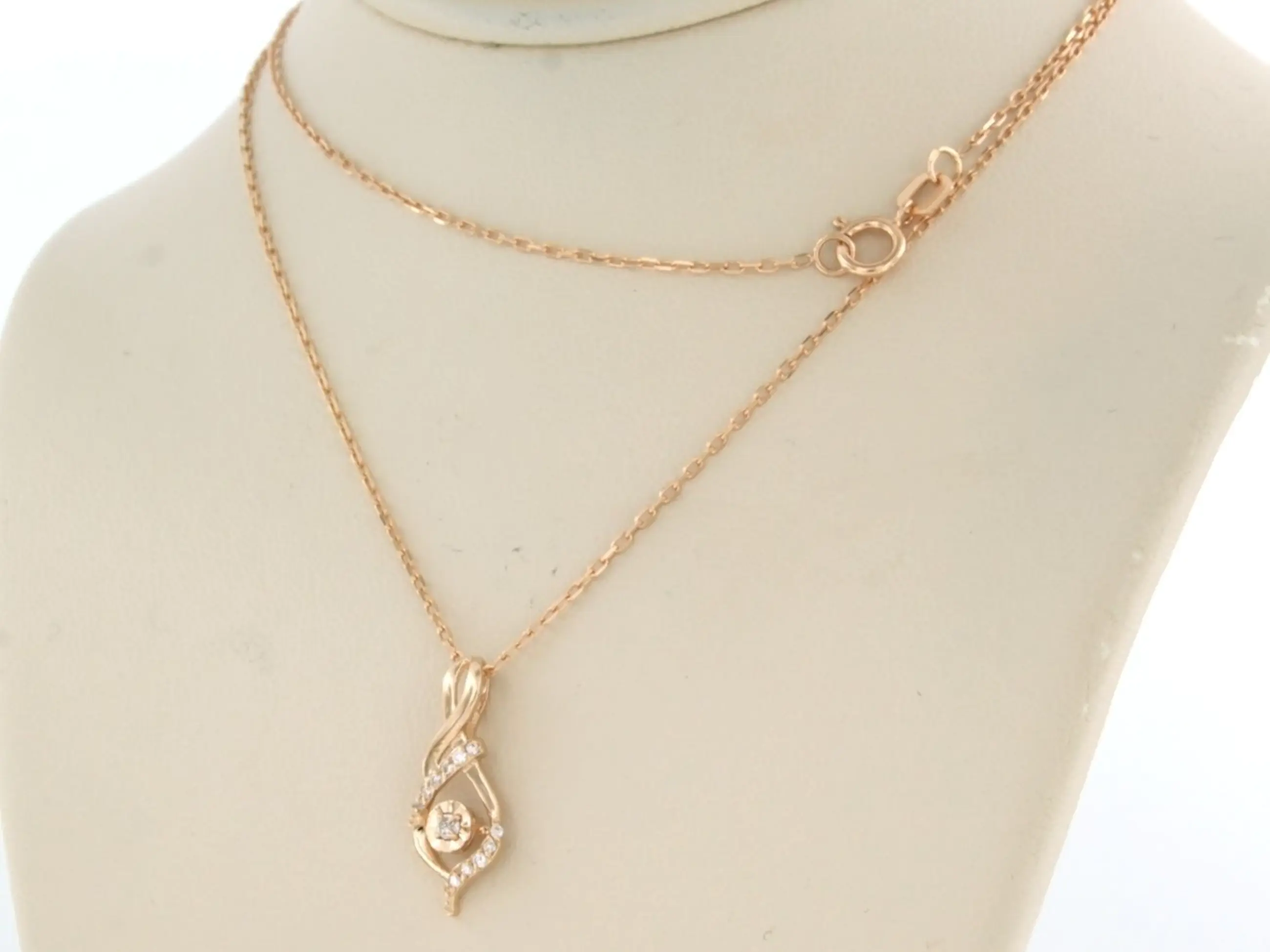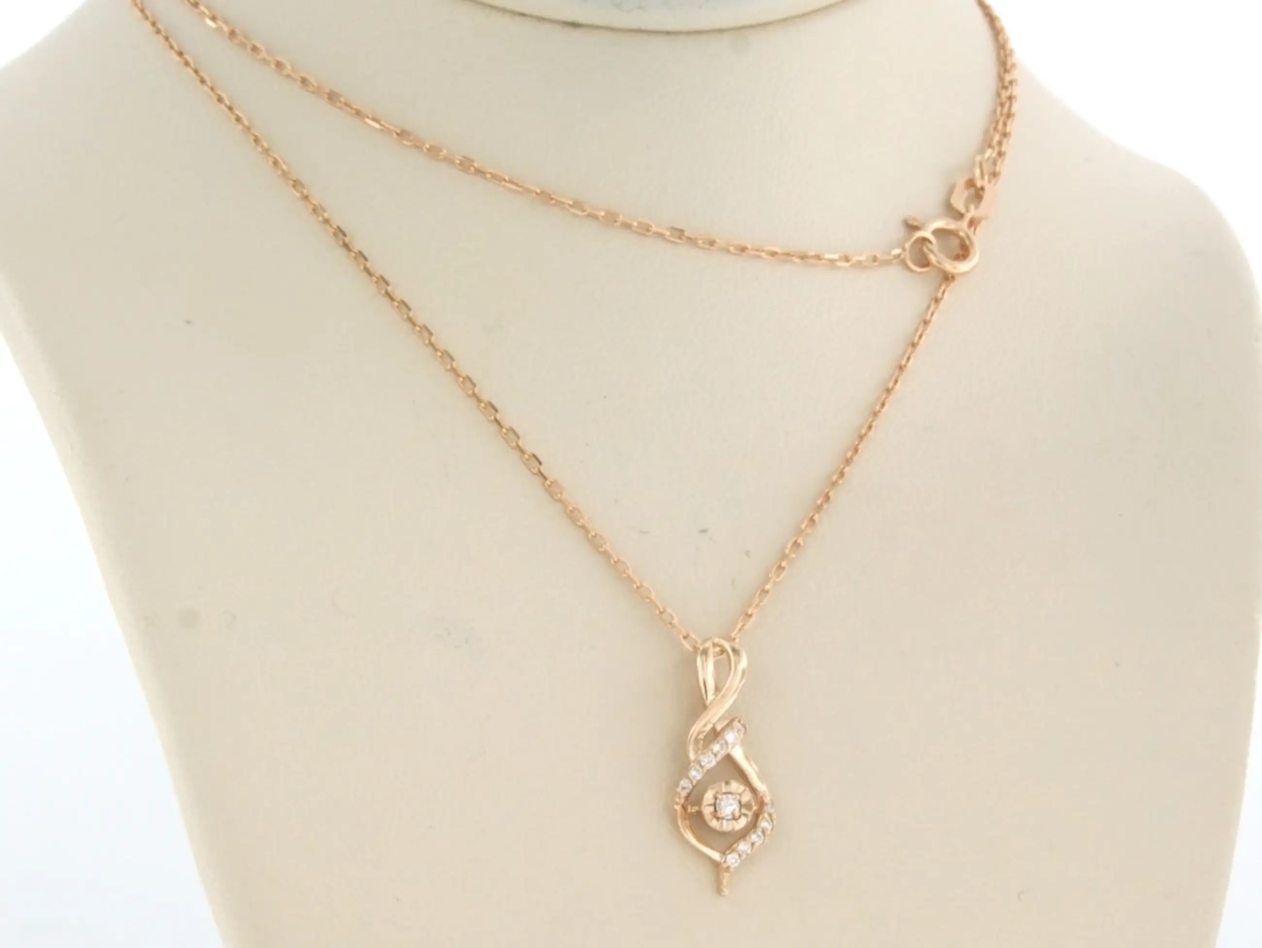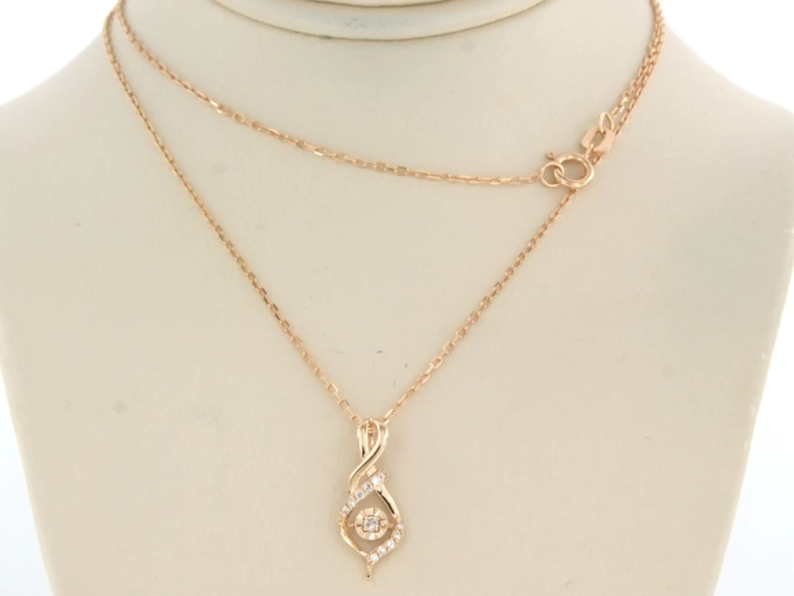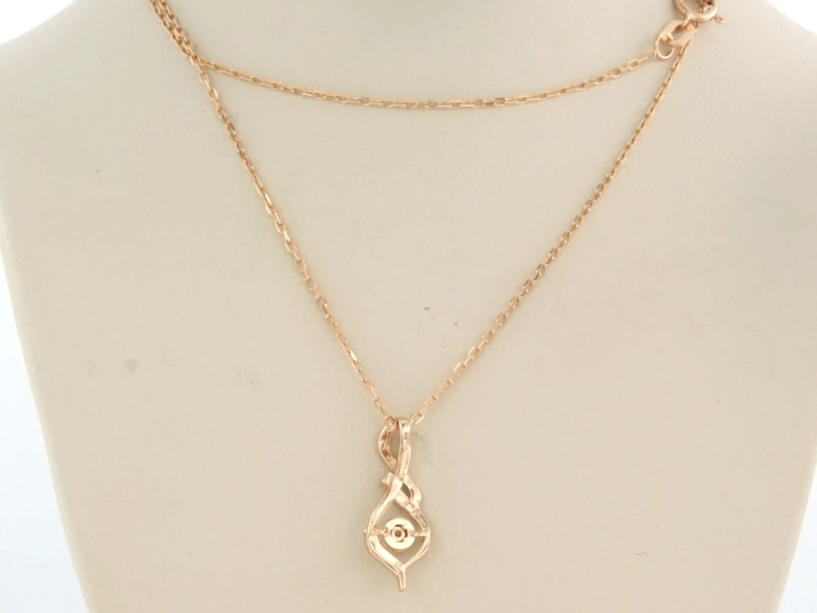 14k rood gouden collier met hanger bezet met briljant geslepen diamant tot. 0,07ct - G/H - VS/SI - 45 cm lang