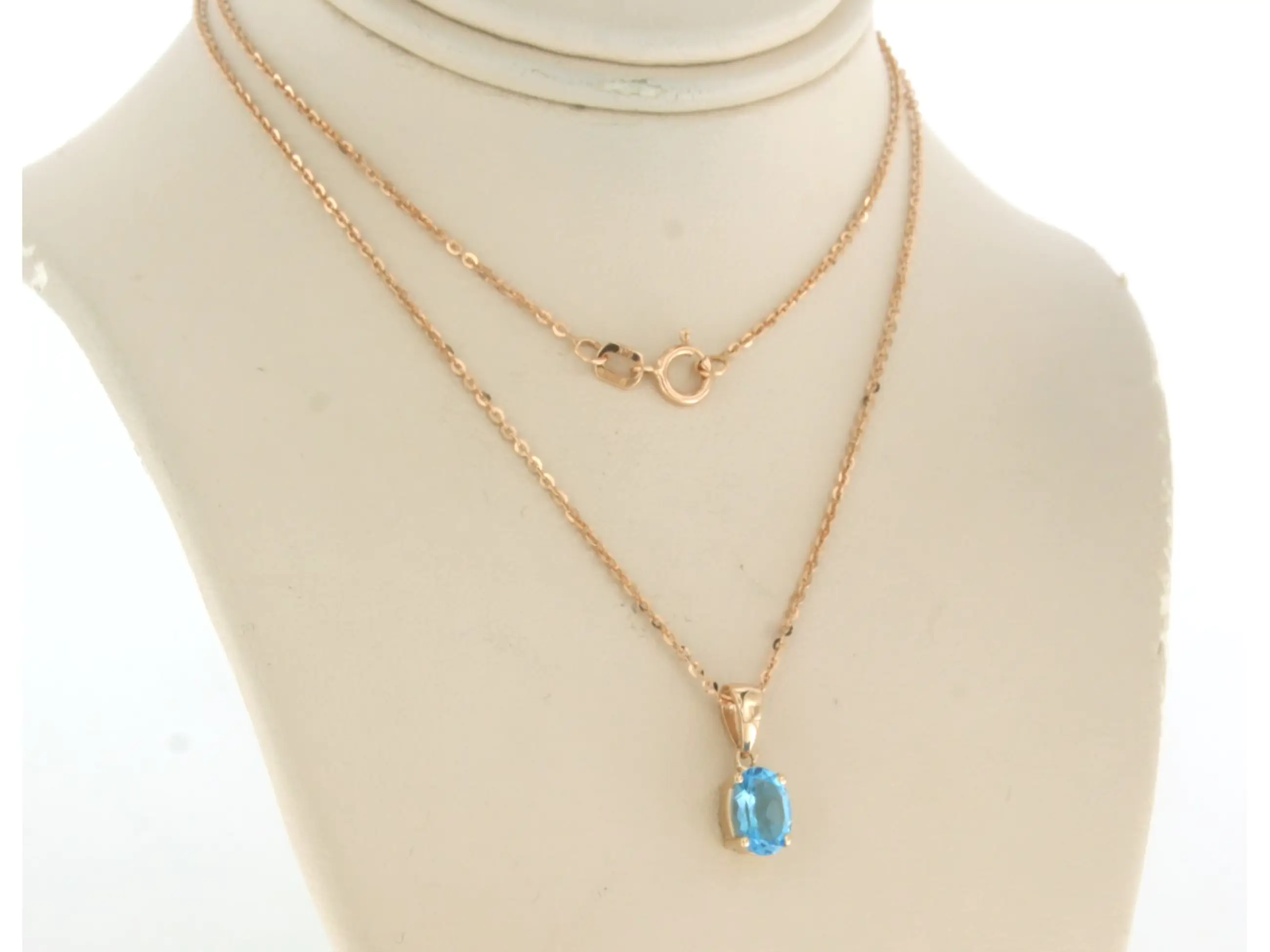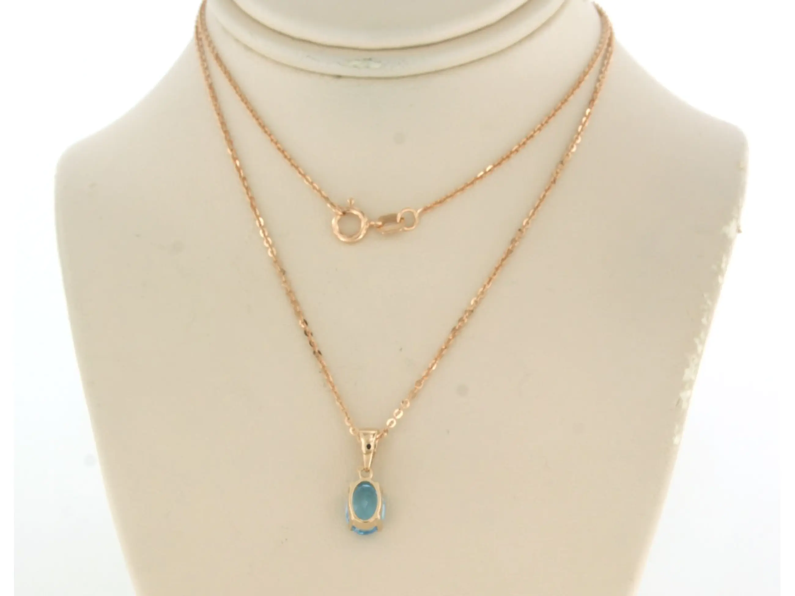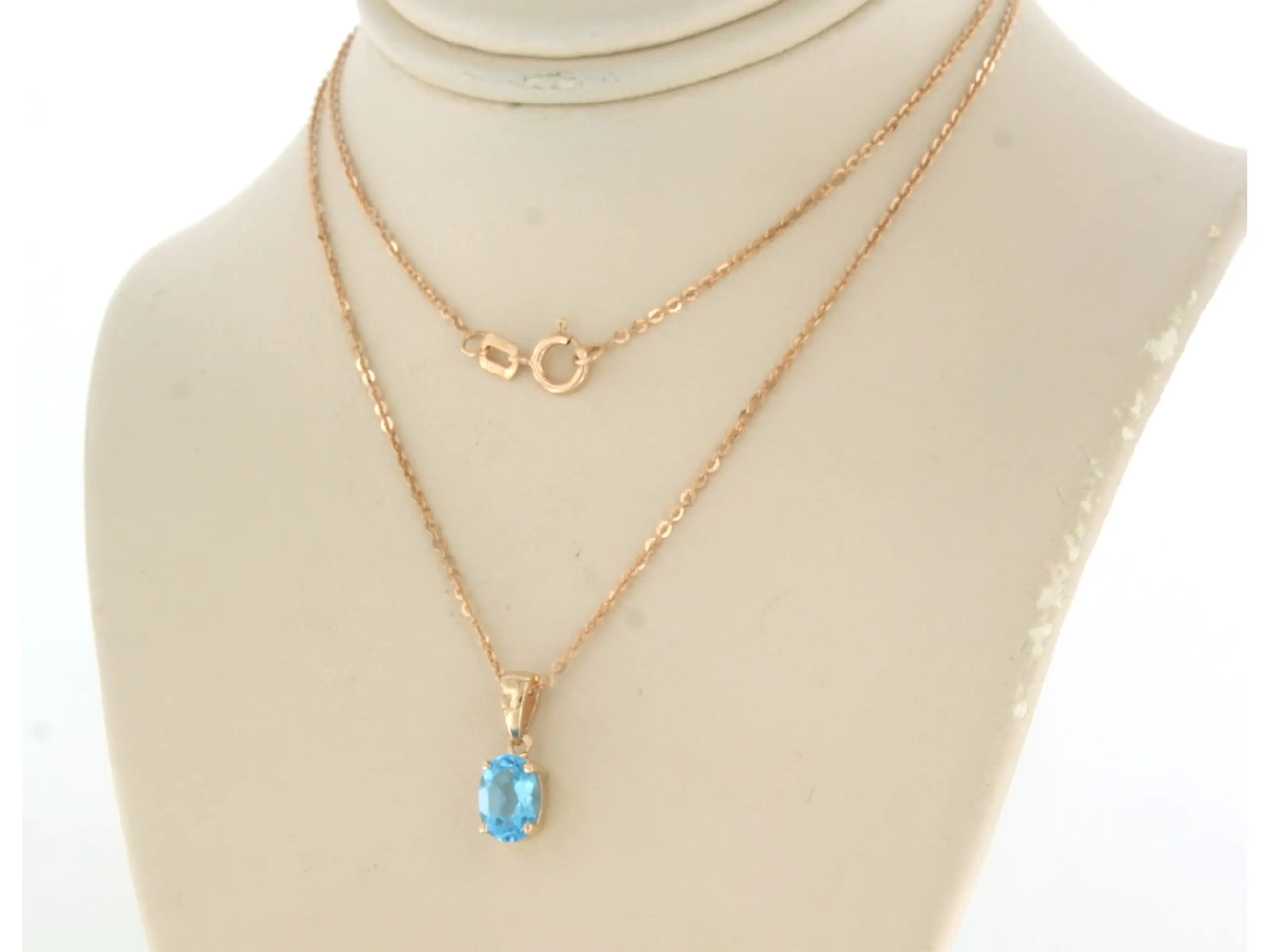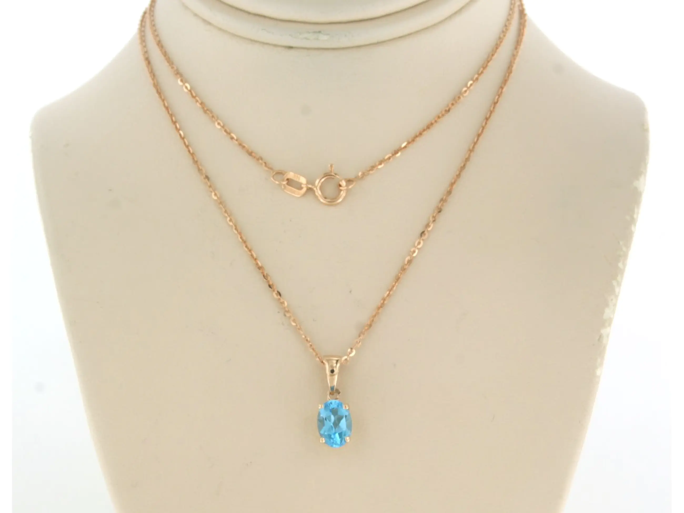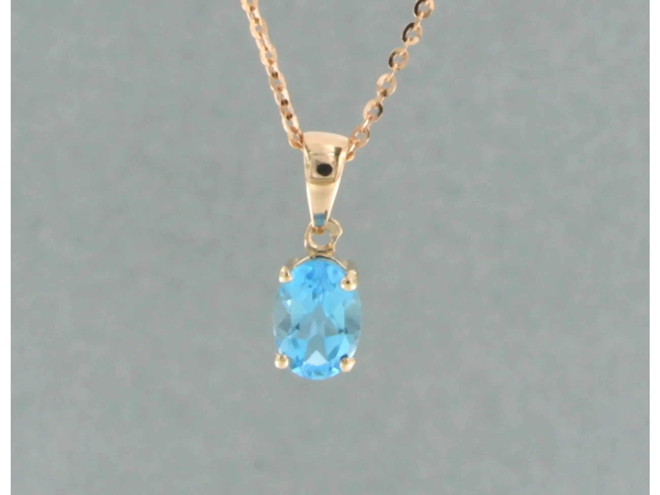 14k rose gouden collier met hanger bezet met ovaal facet geslepen topaas tot. 1.00 karaat - 45 cm lang
