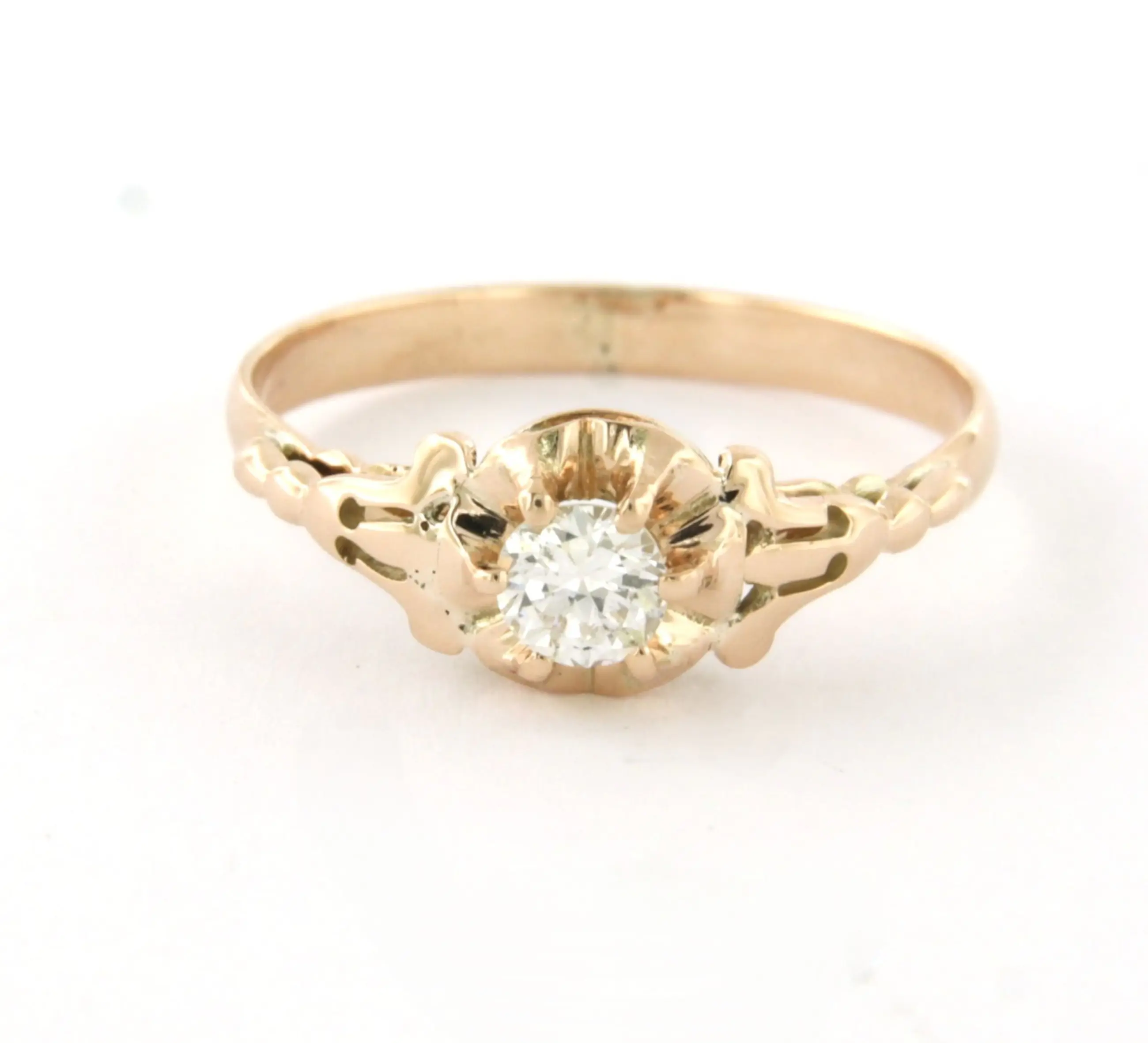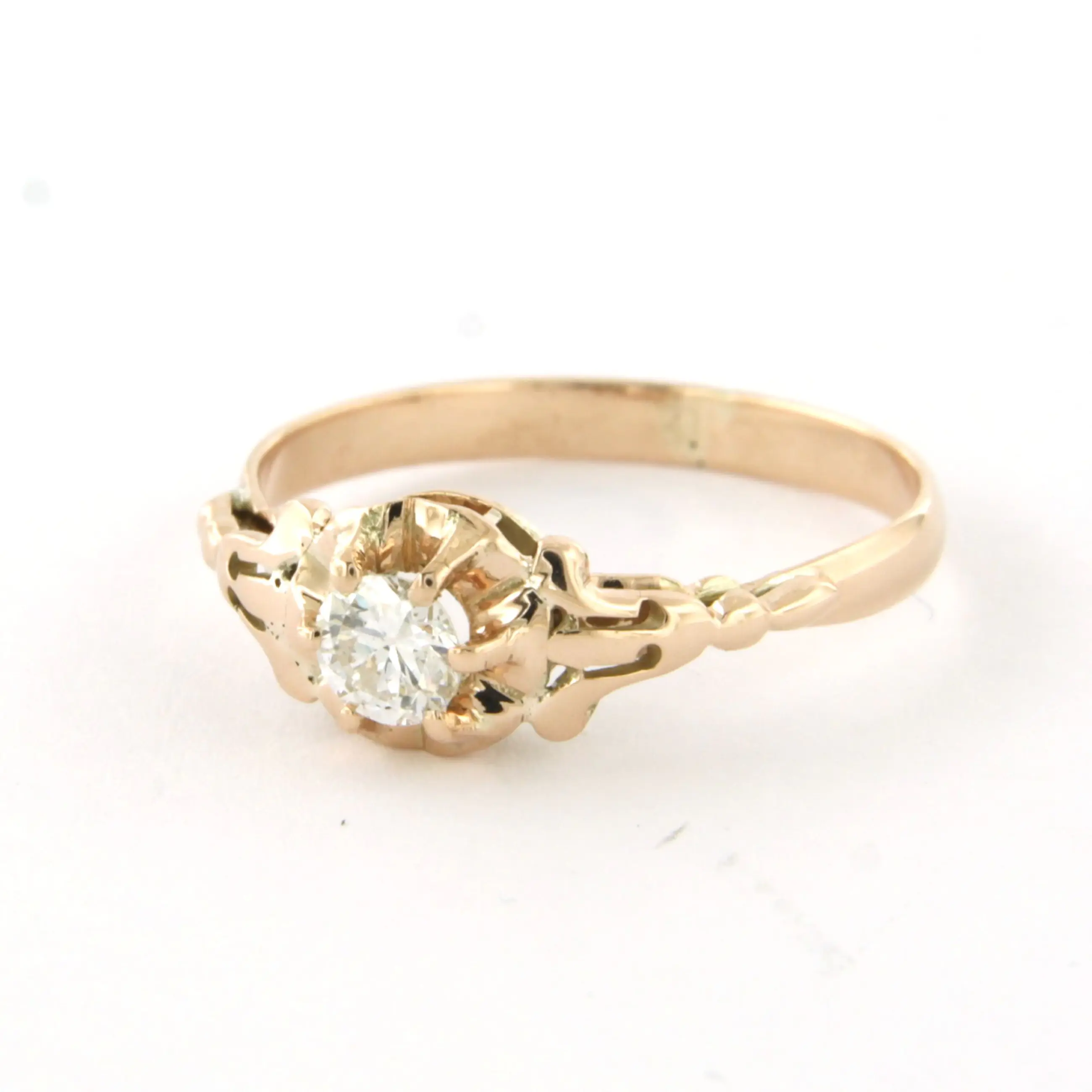 14k rose solitair gouden ring met oud Europees slijpvorm geslepen diamant tot. 0.25ct – F/G - VS/SI - ringmaat 17(53)