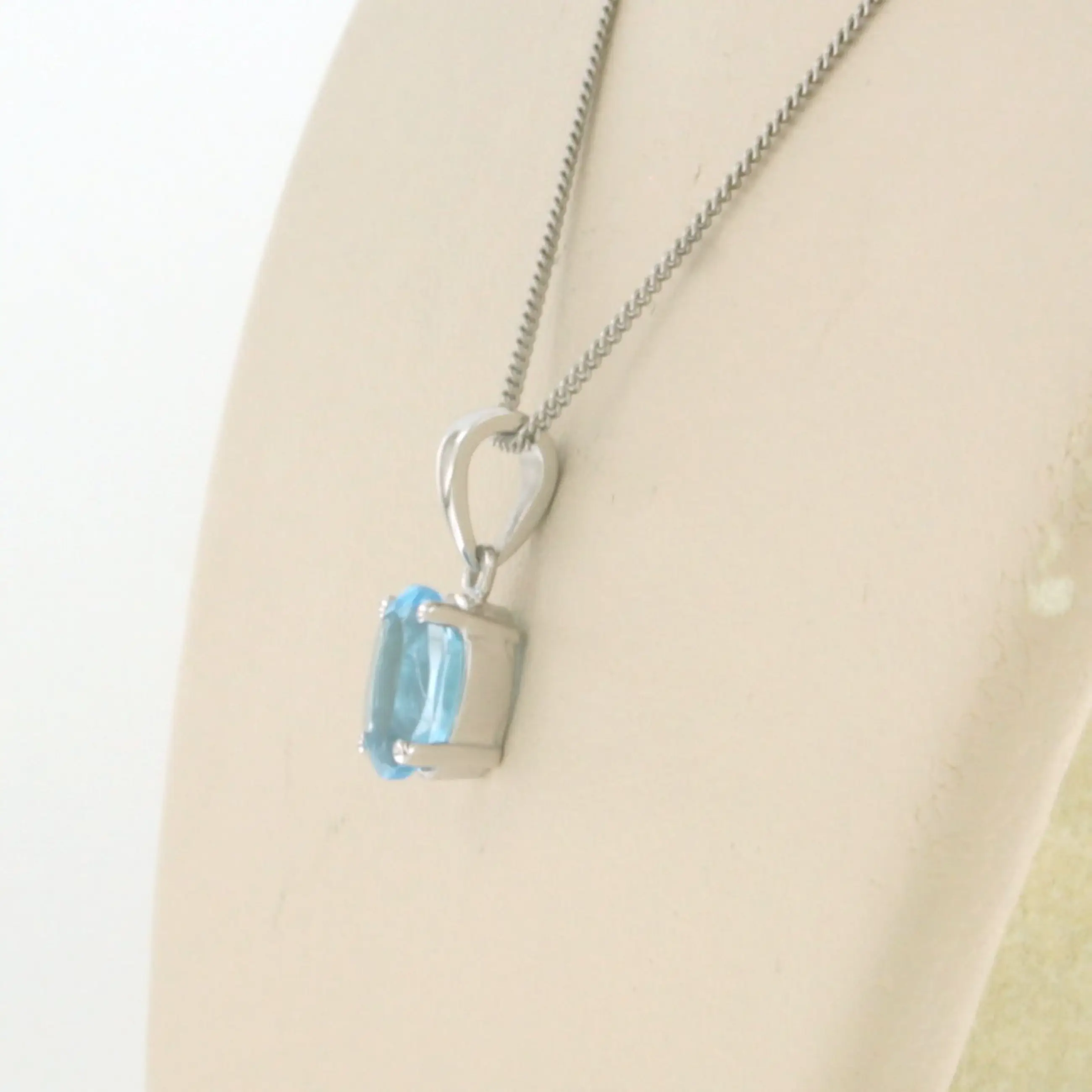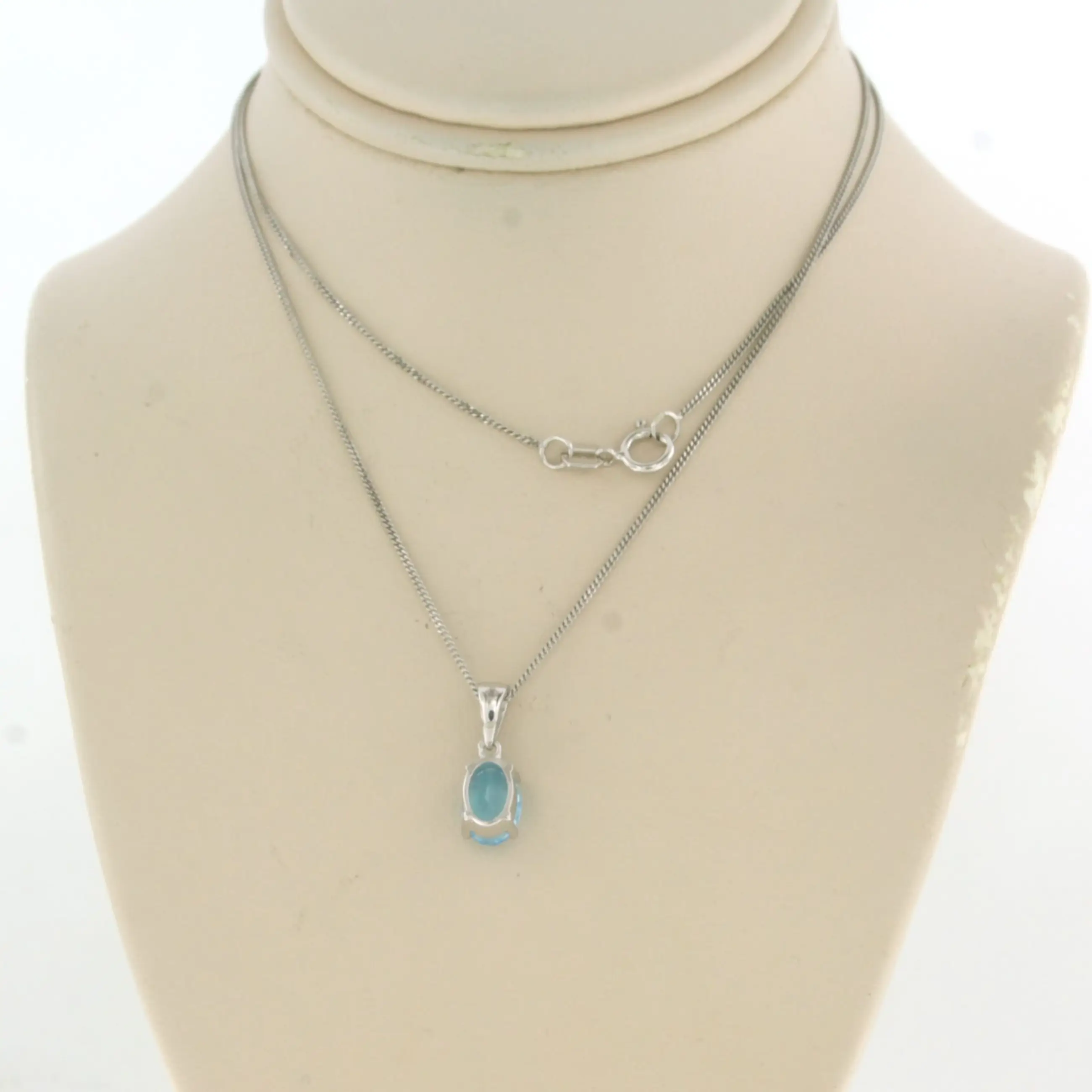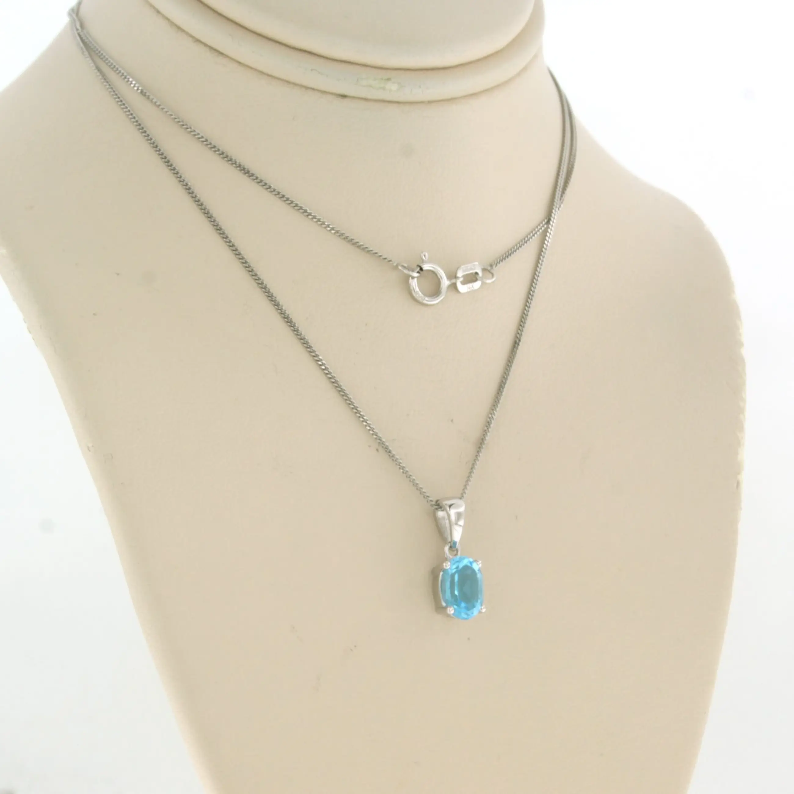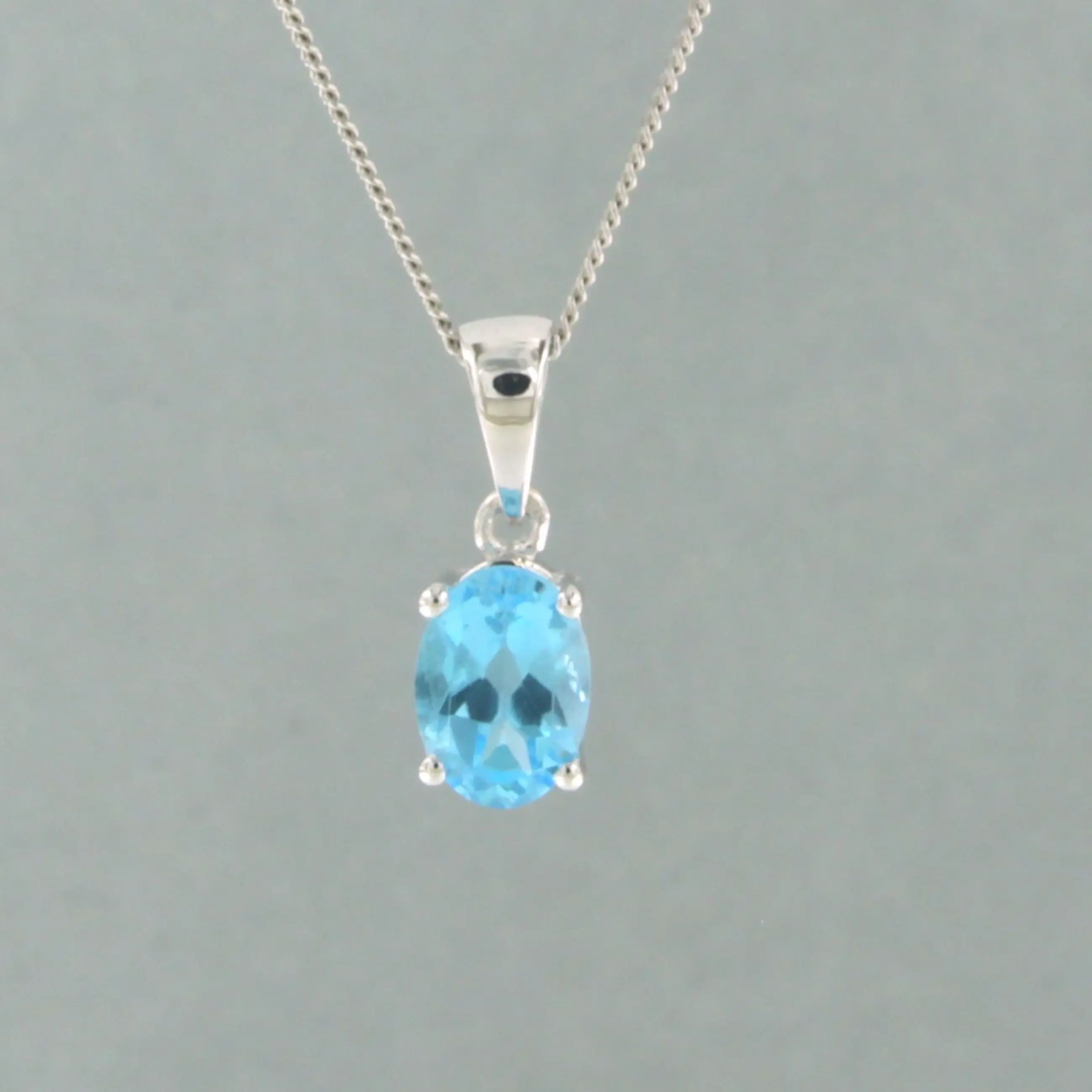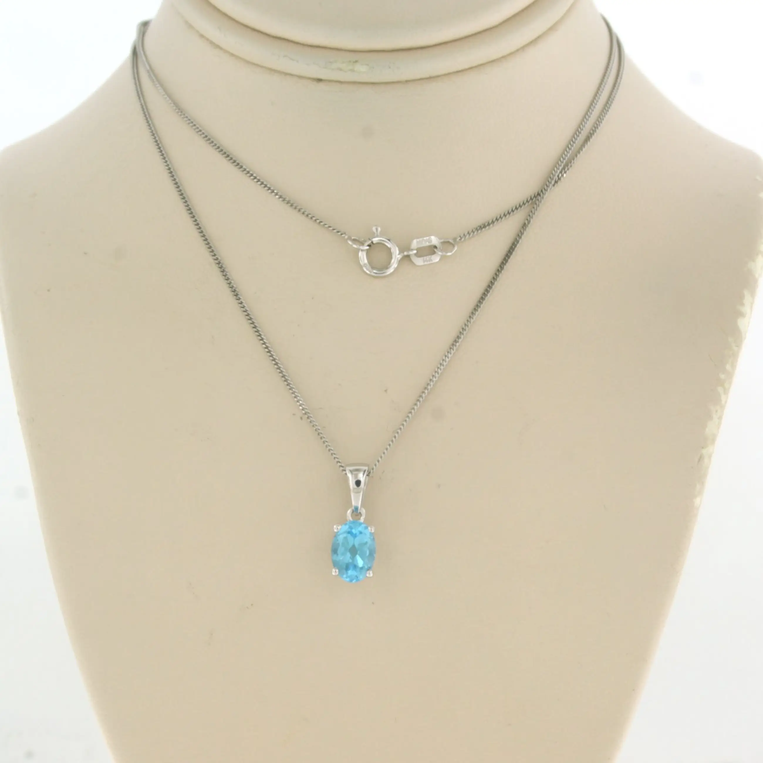 14k wit gouden collier met hanger bezet met blauwe topaas tot. 1,00ct - 45 cm lang