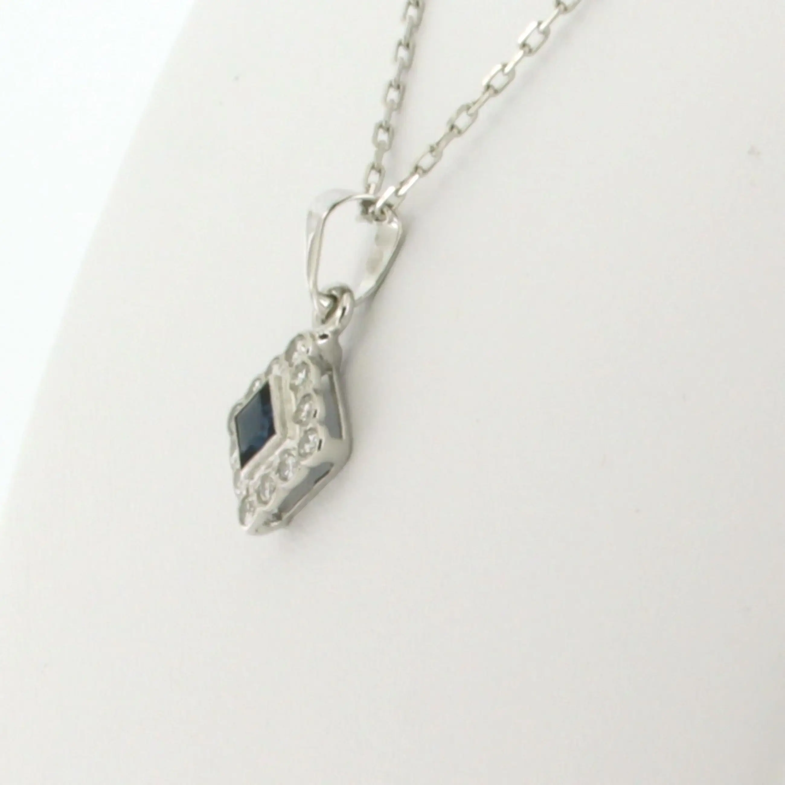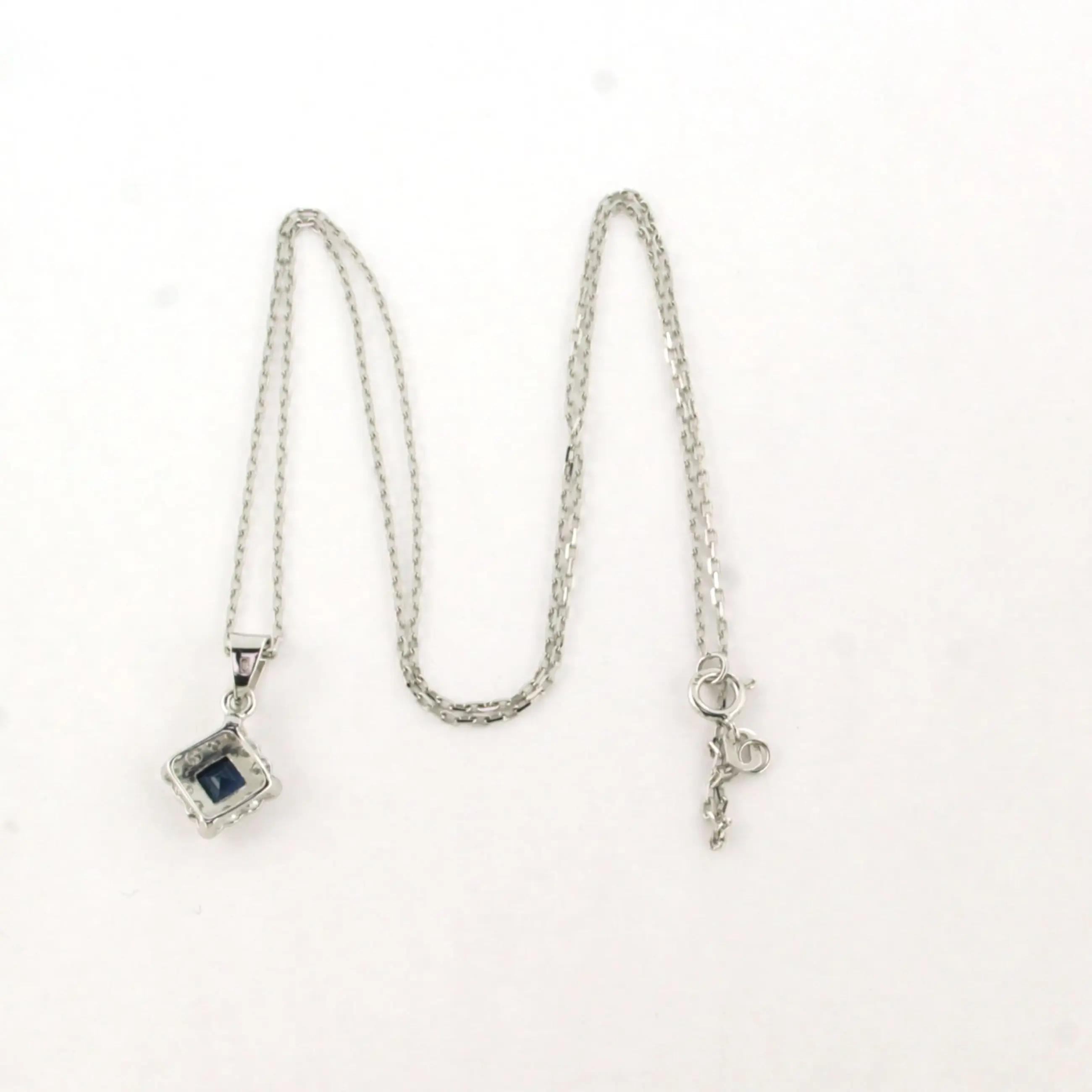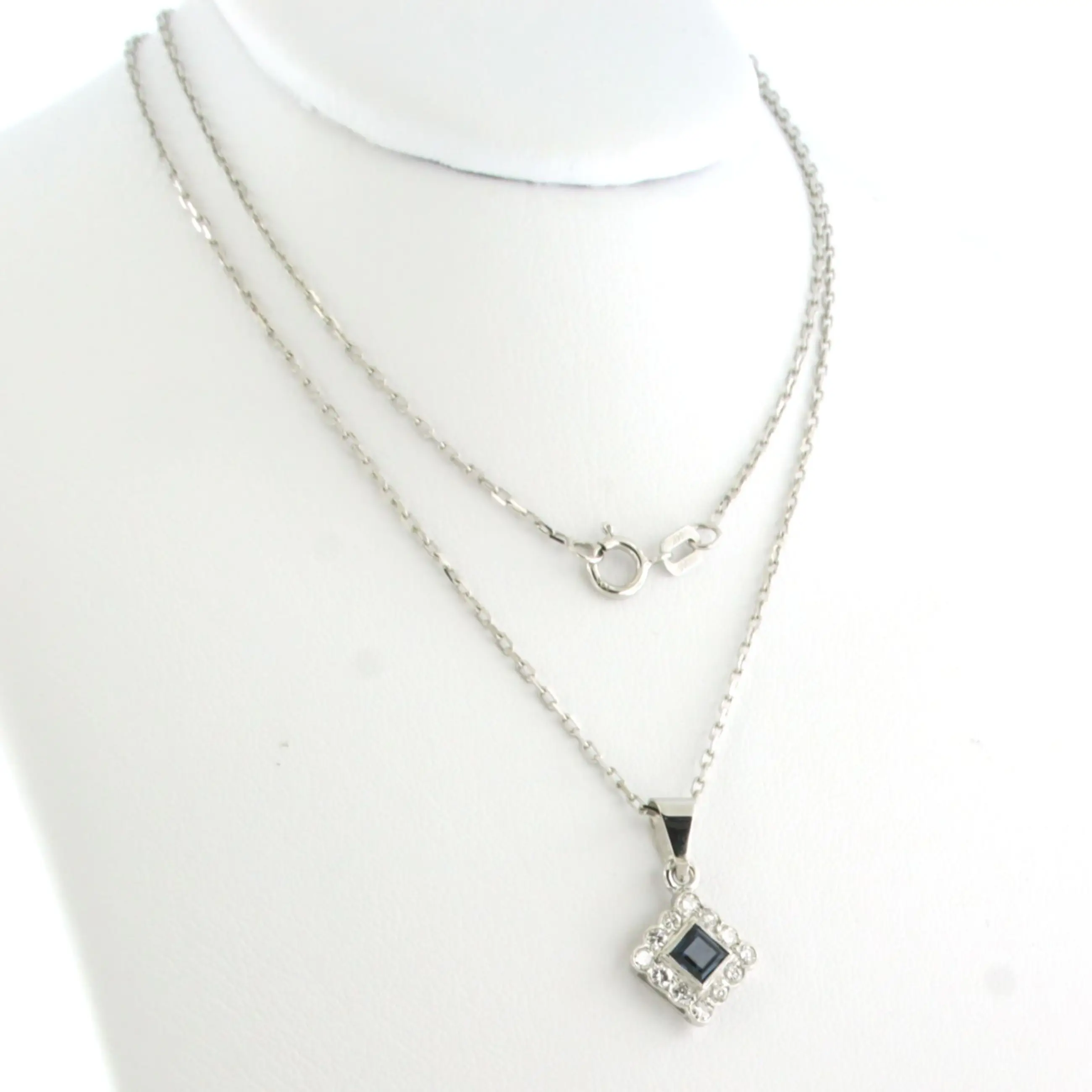 14k wit gouden collier met hanger bezet saffier en briljant geslepen diamanten tot. 0,24ct - F/G - VS/SI - 45 cm lang