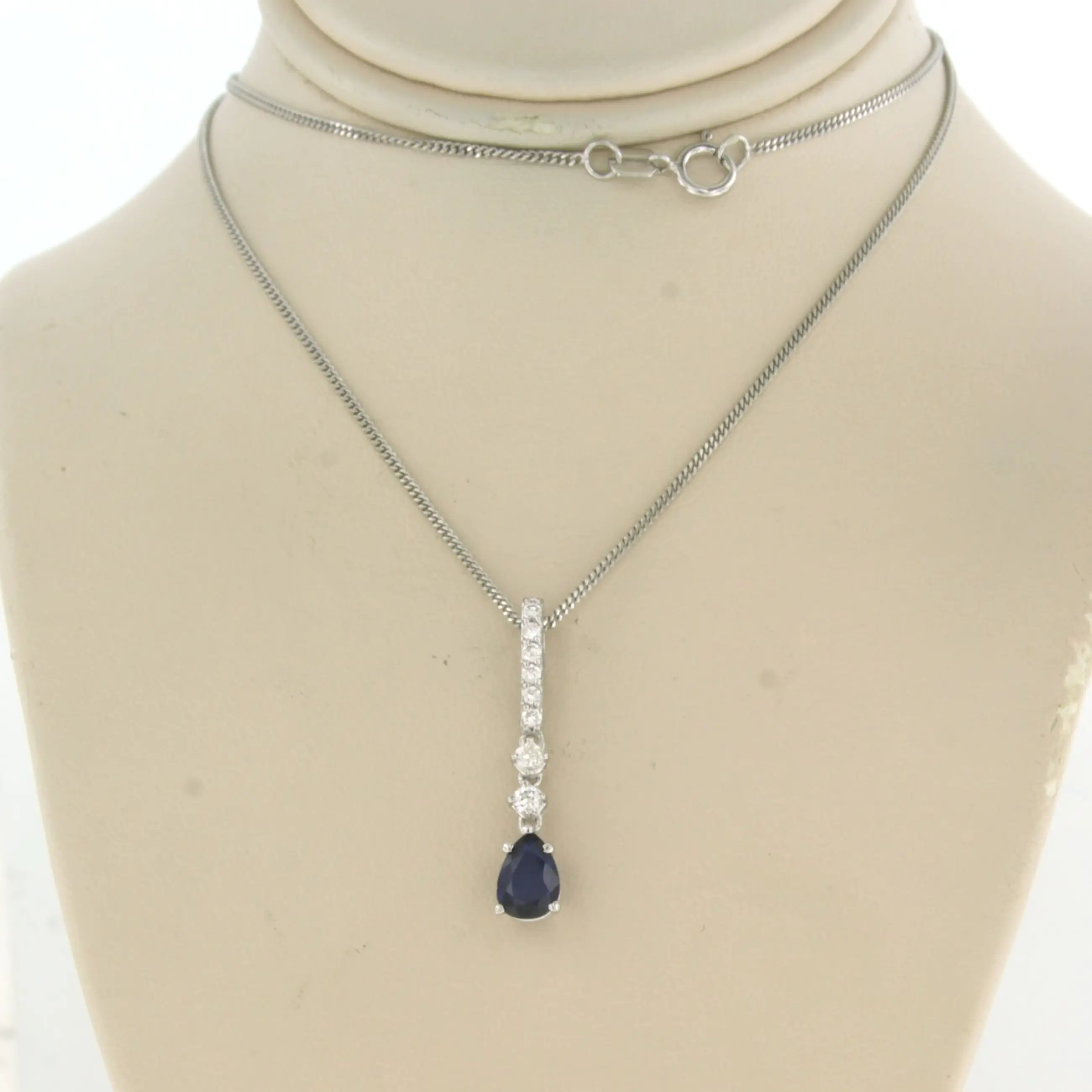 14k wit gouden collier met hanger bezet met saffier 0.60 ct en diamant 0.16 ct - F/G - VS/SI - 45 cm