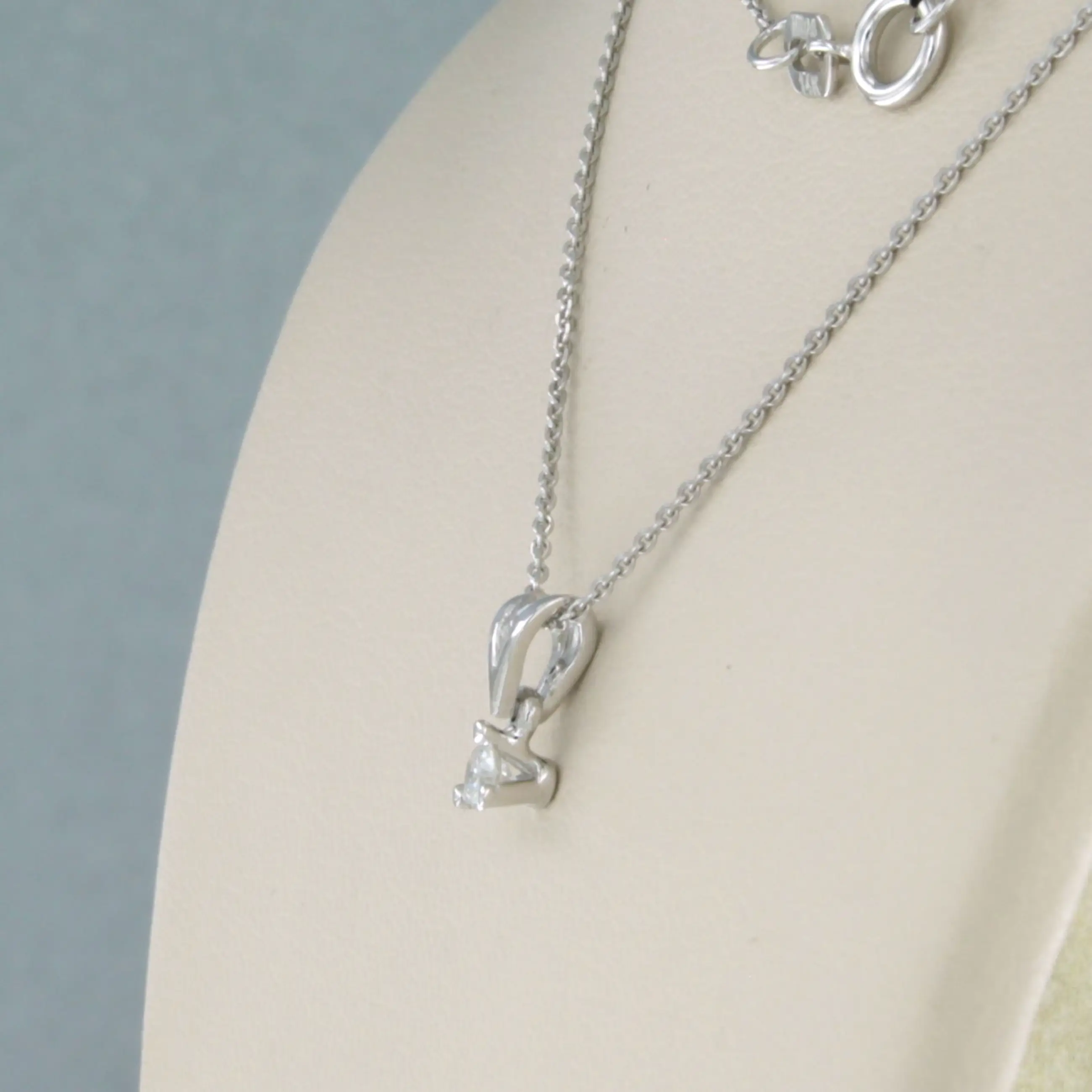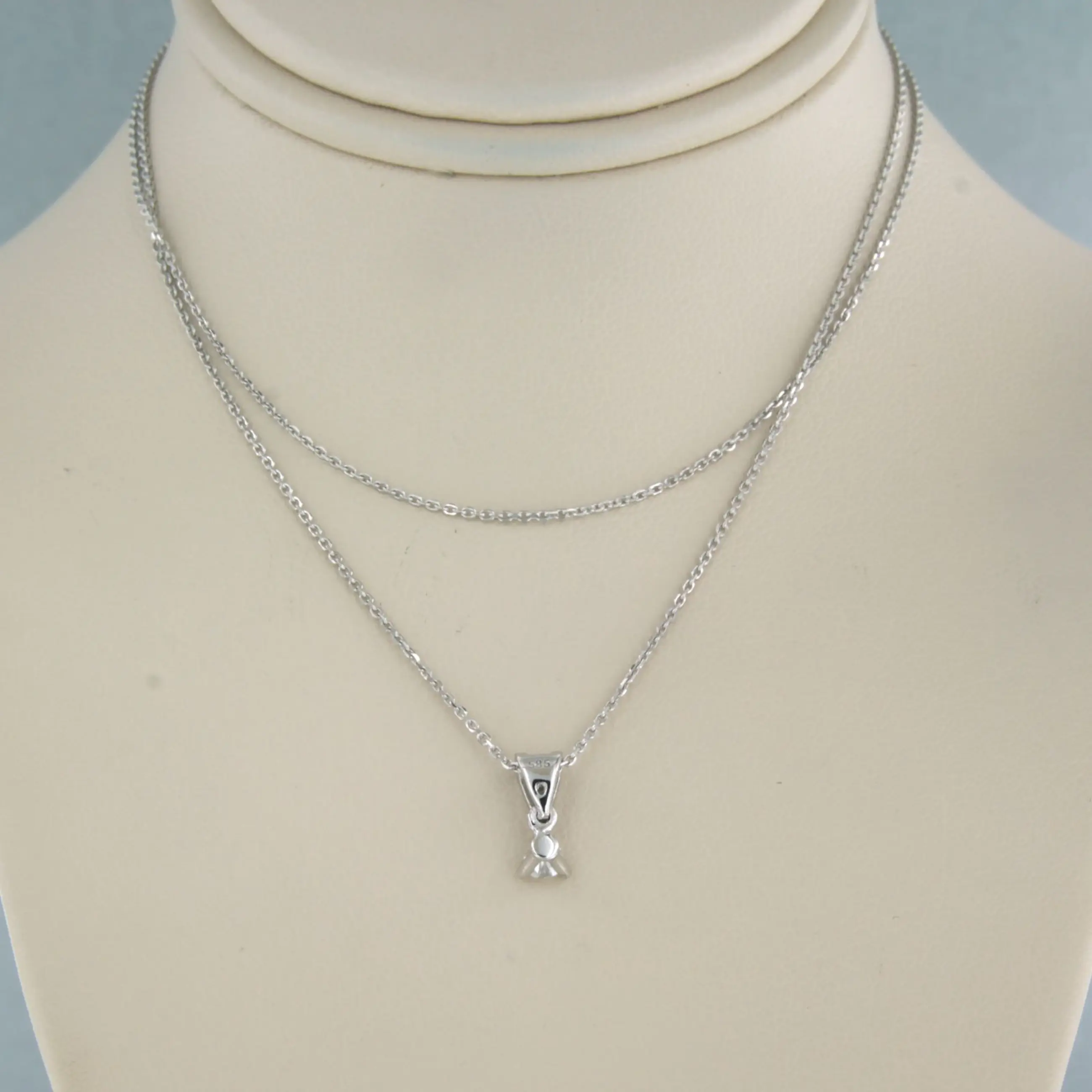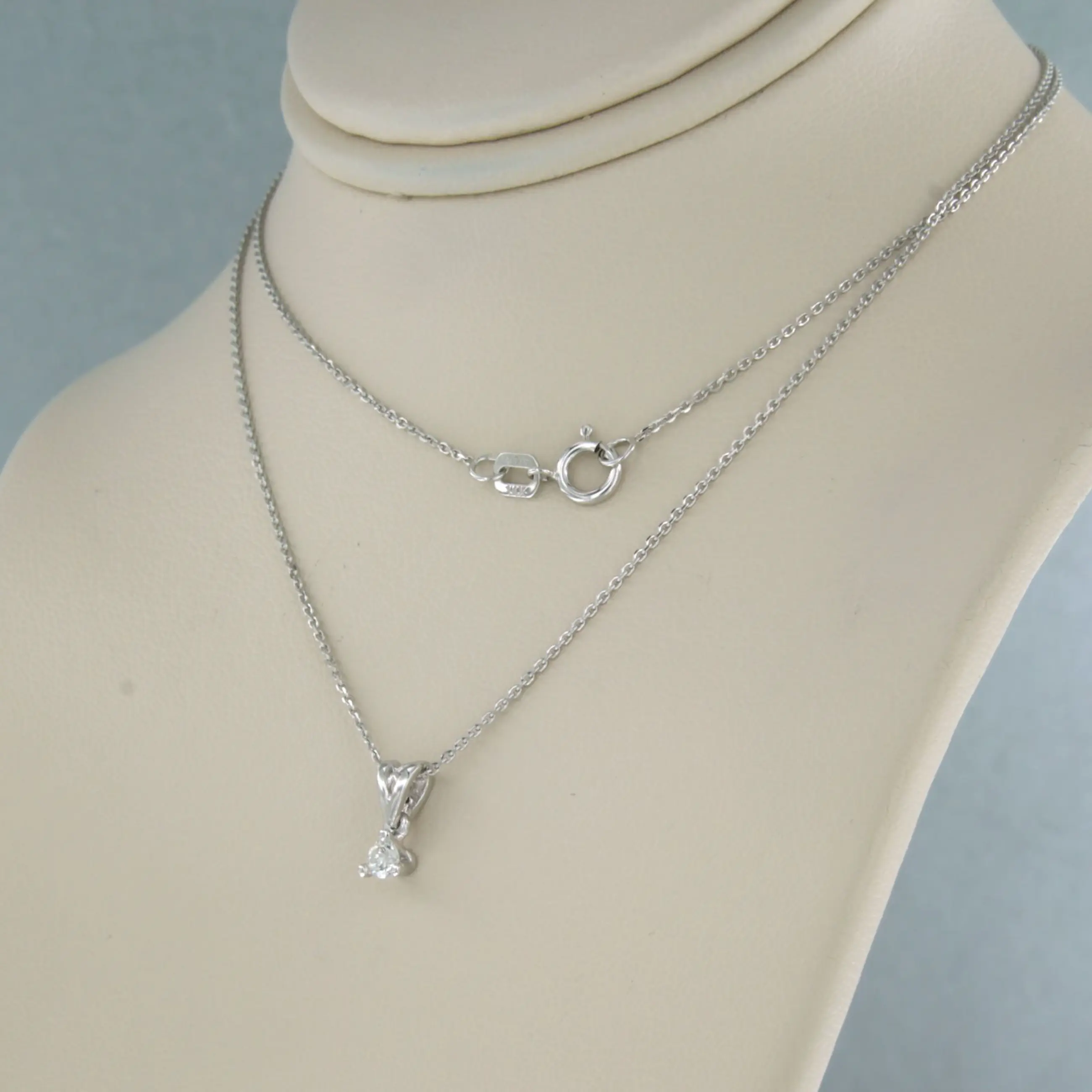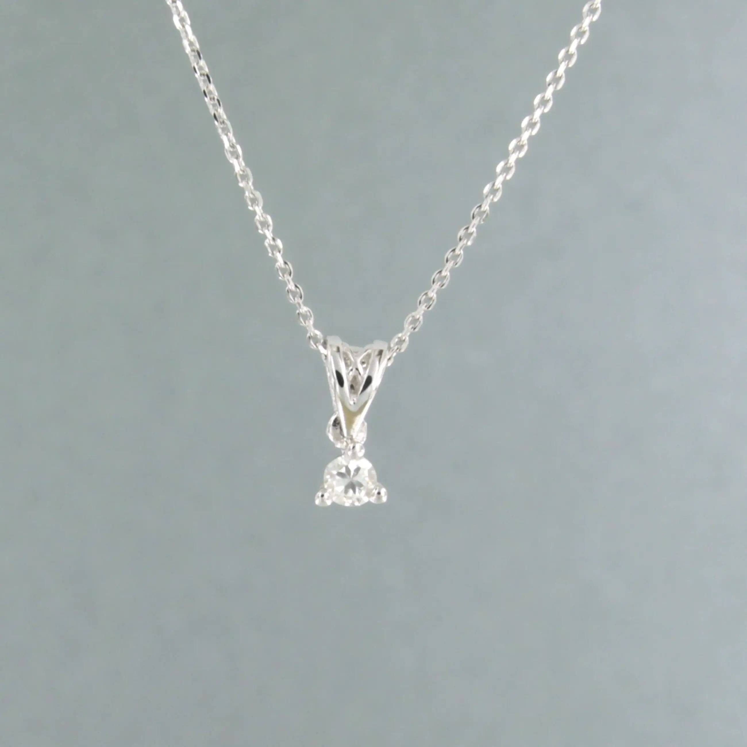 14k wit gouden collier met een solitair hanger bezet met briljant geslepen diamant tot. 0,09ct - F/G - VS/SI - 45cm lang