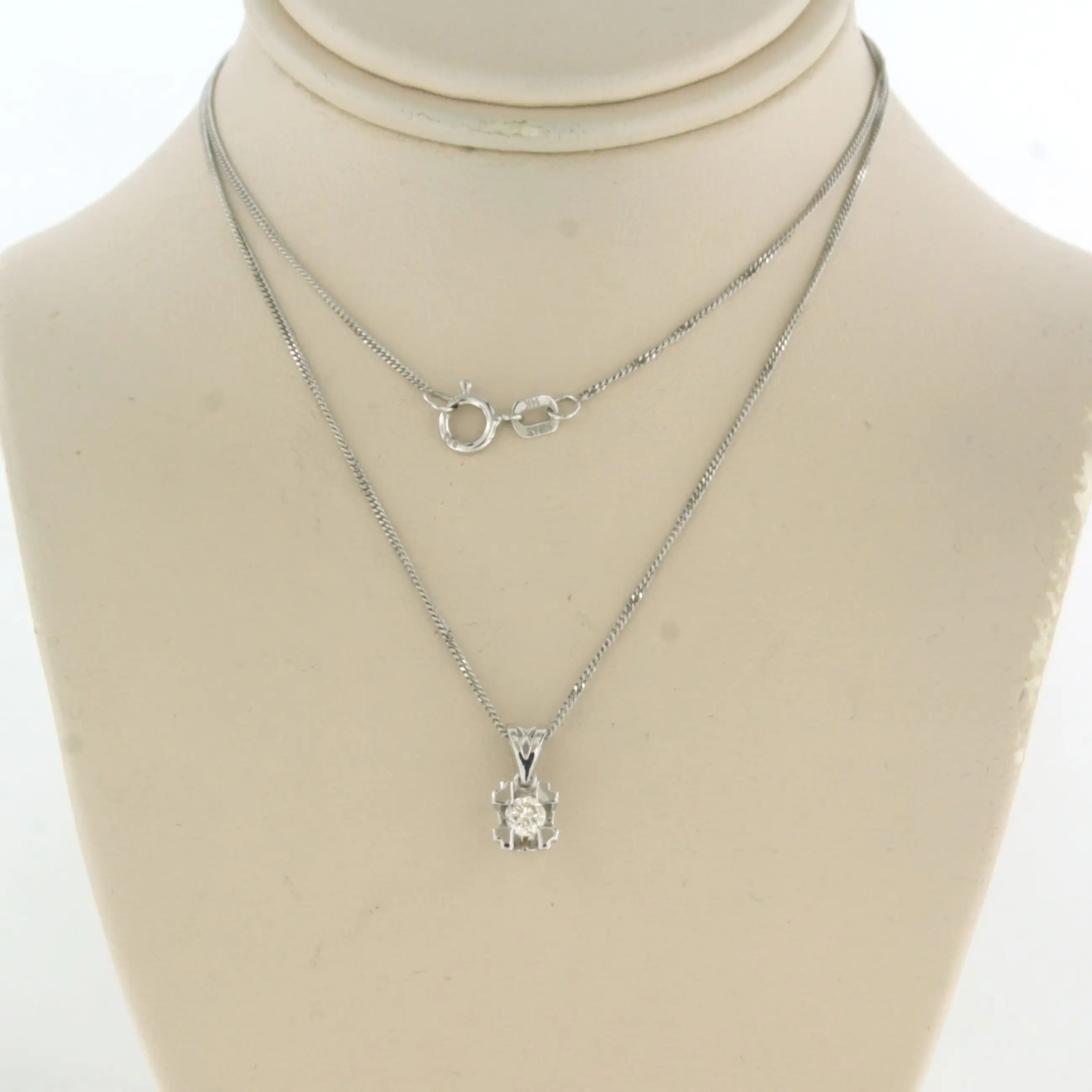 14k wit gouden collier met solitair hanger met briljant geslepen diamant 0.12ct