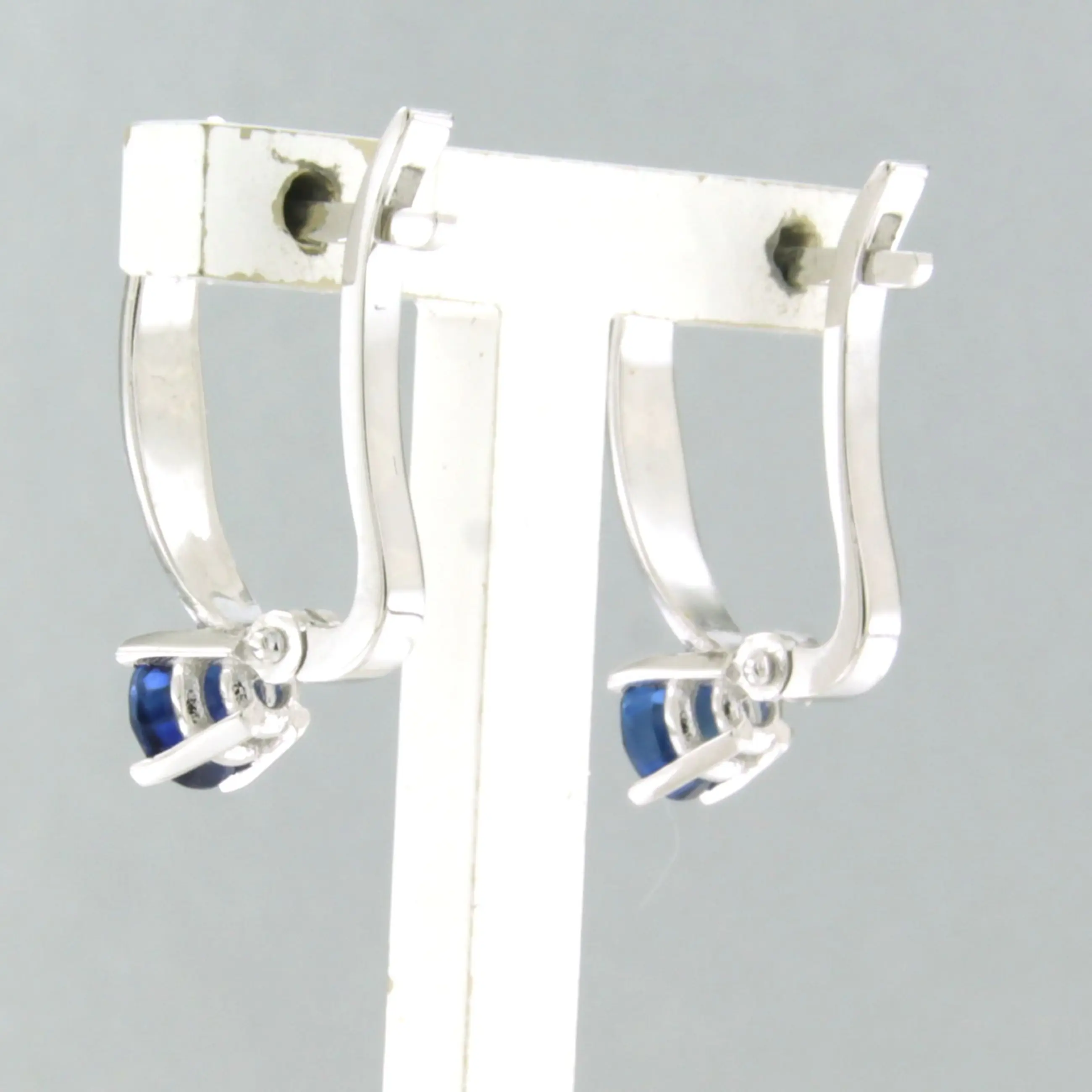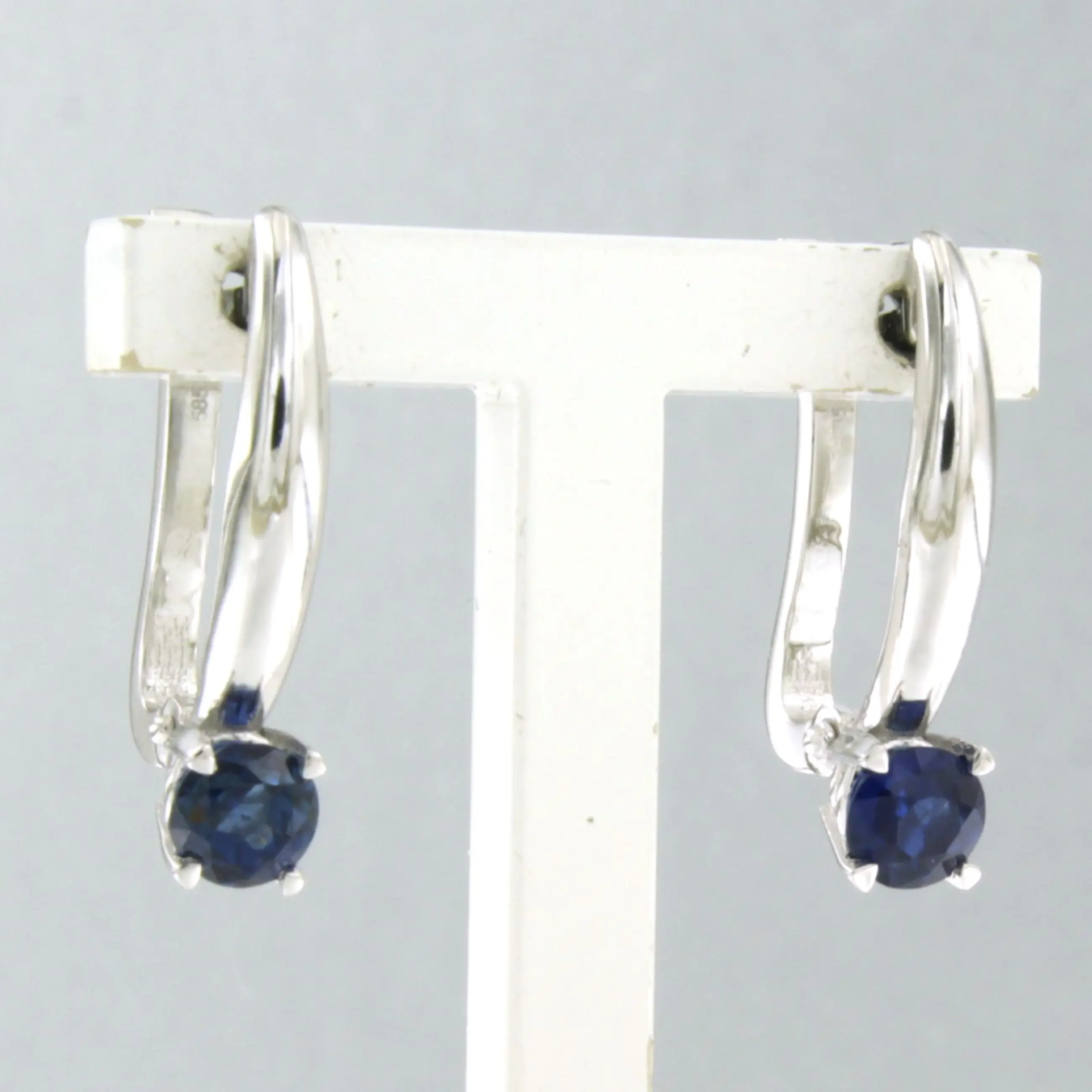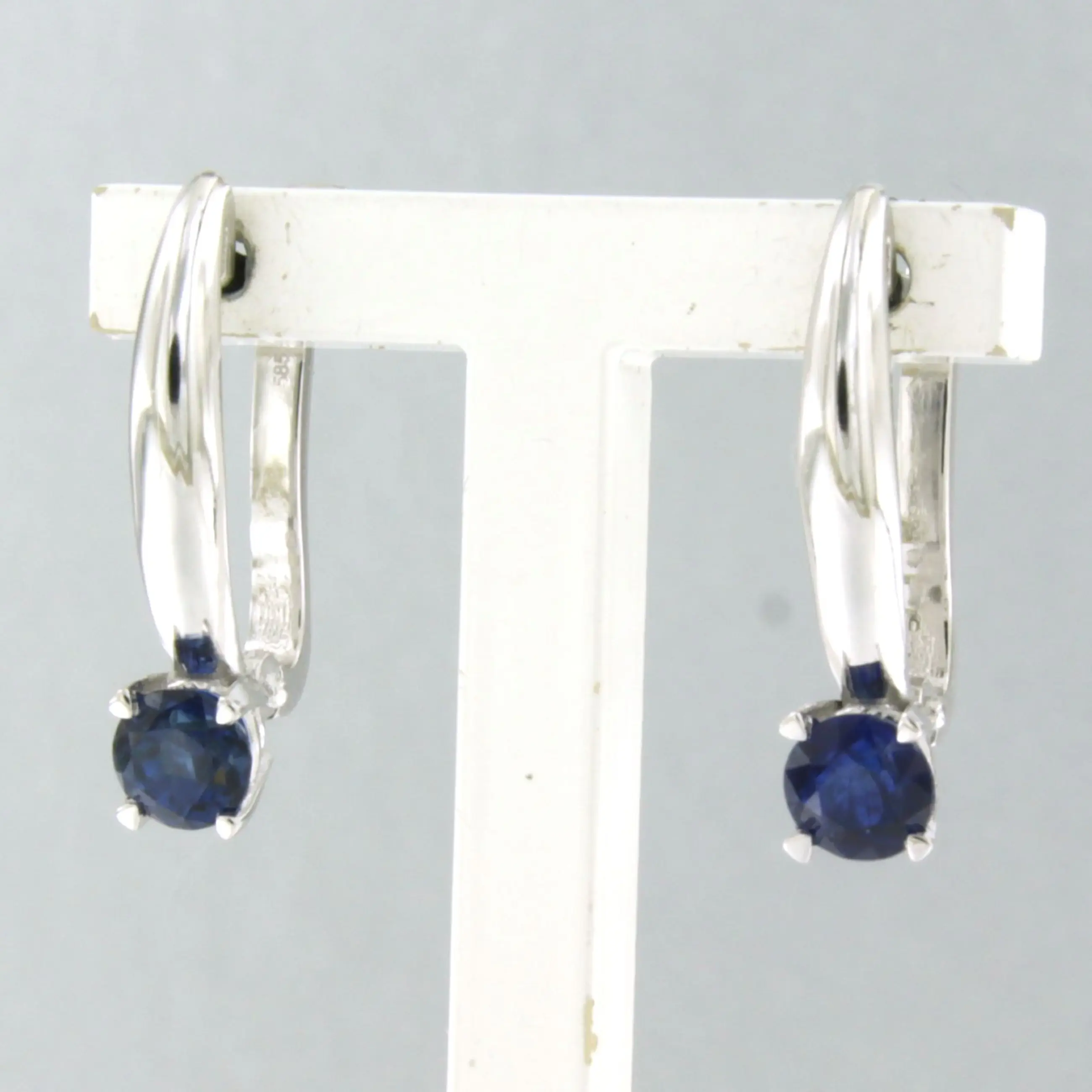14k witgouden oorhangers bezet met saffier tot. 1.22ct