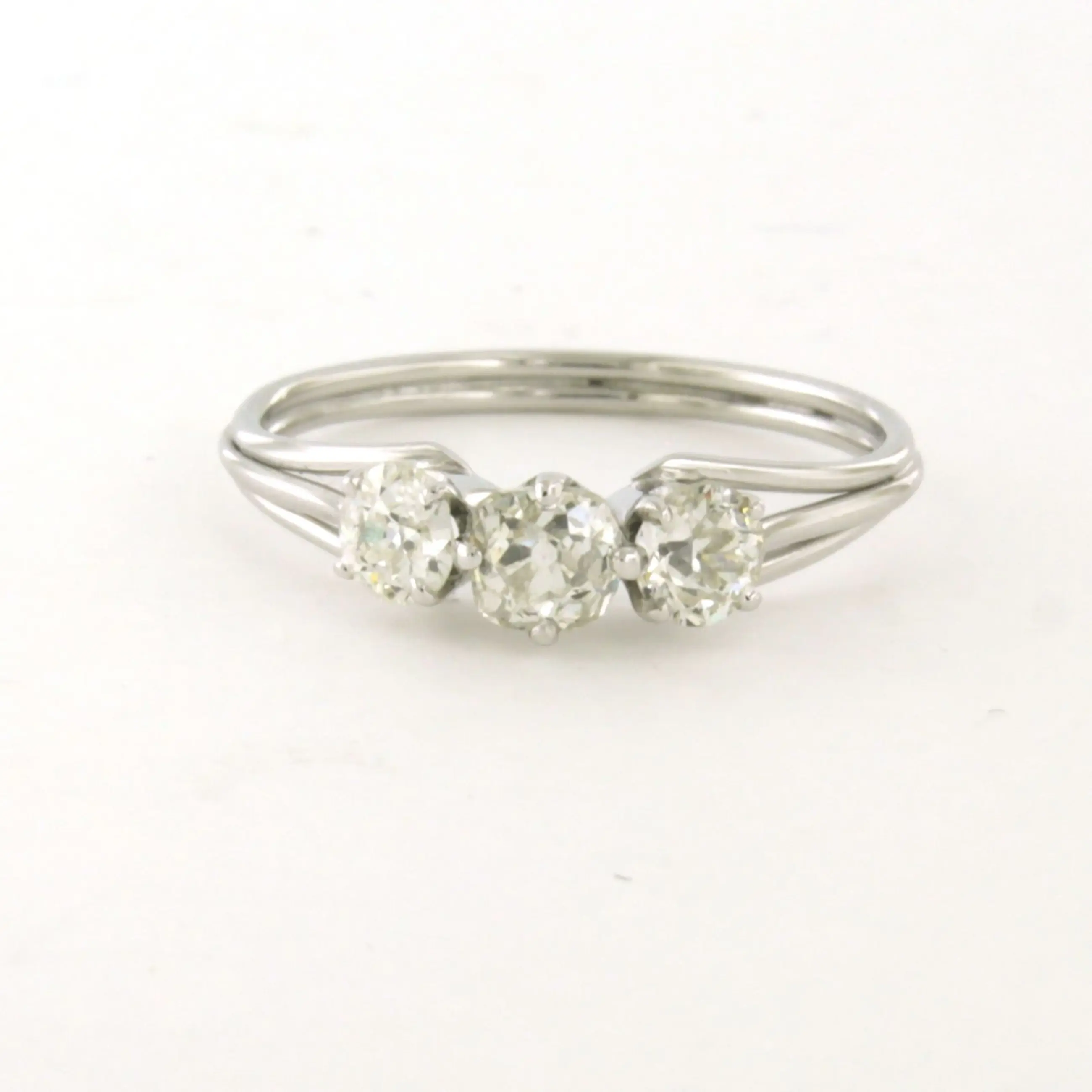 14k witgouden ring bezet met bolsjewiek geslepen diamanten, tot. circa 1.00ct - K/L - P - ringmaat 17(53)