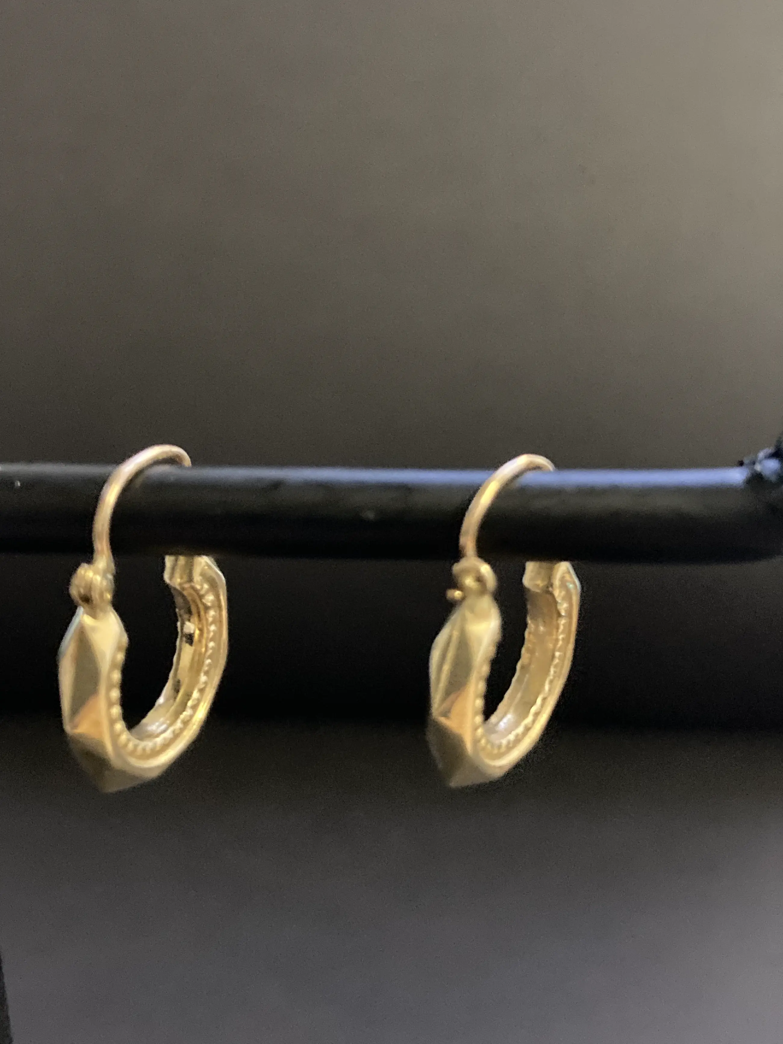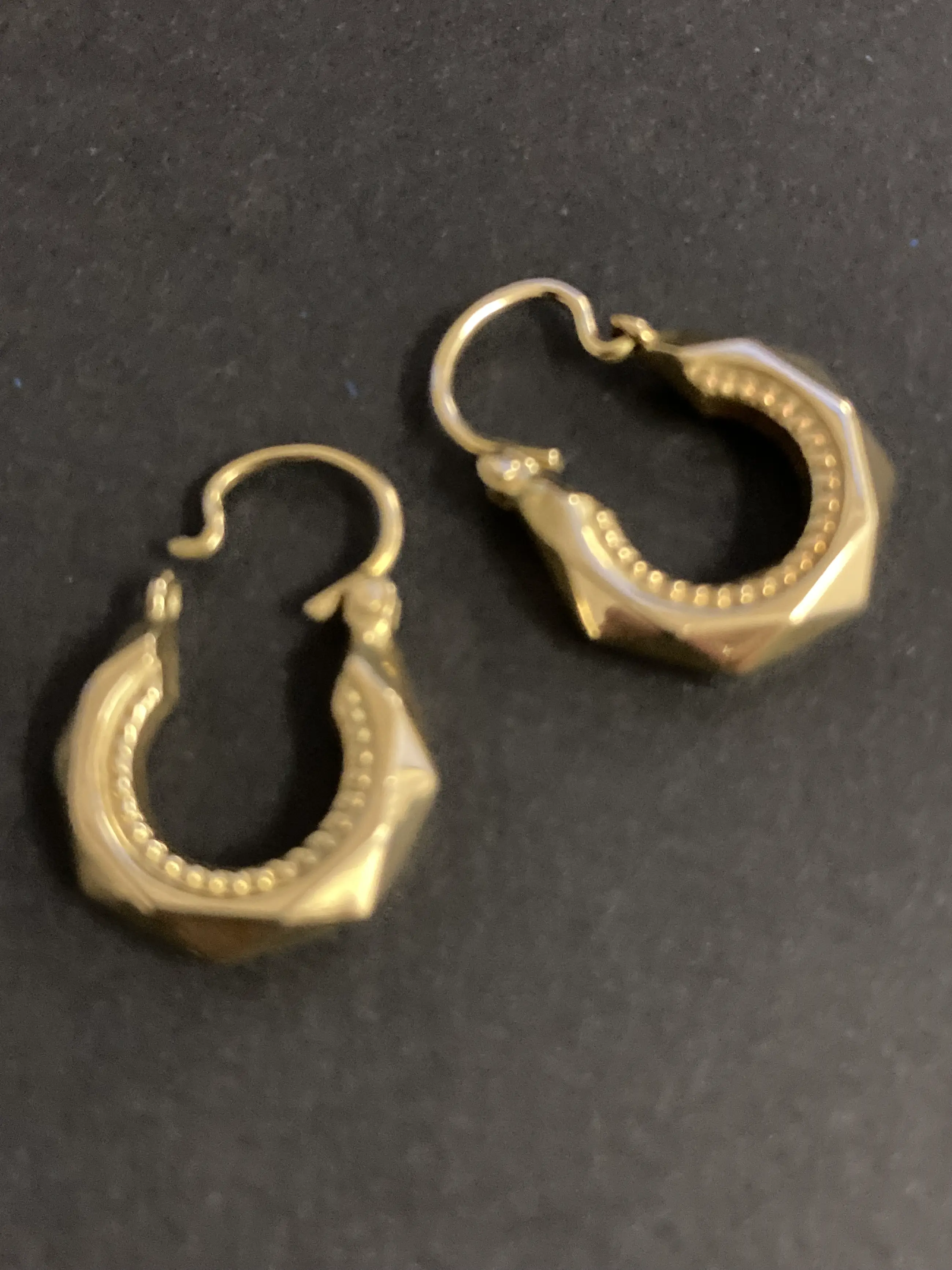 18 karaats geelgouden creolen, gefacetteerd met parelrandje.