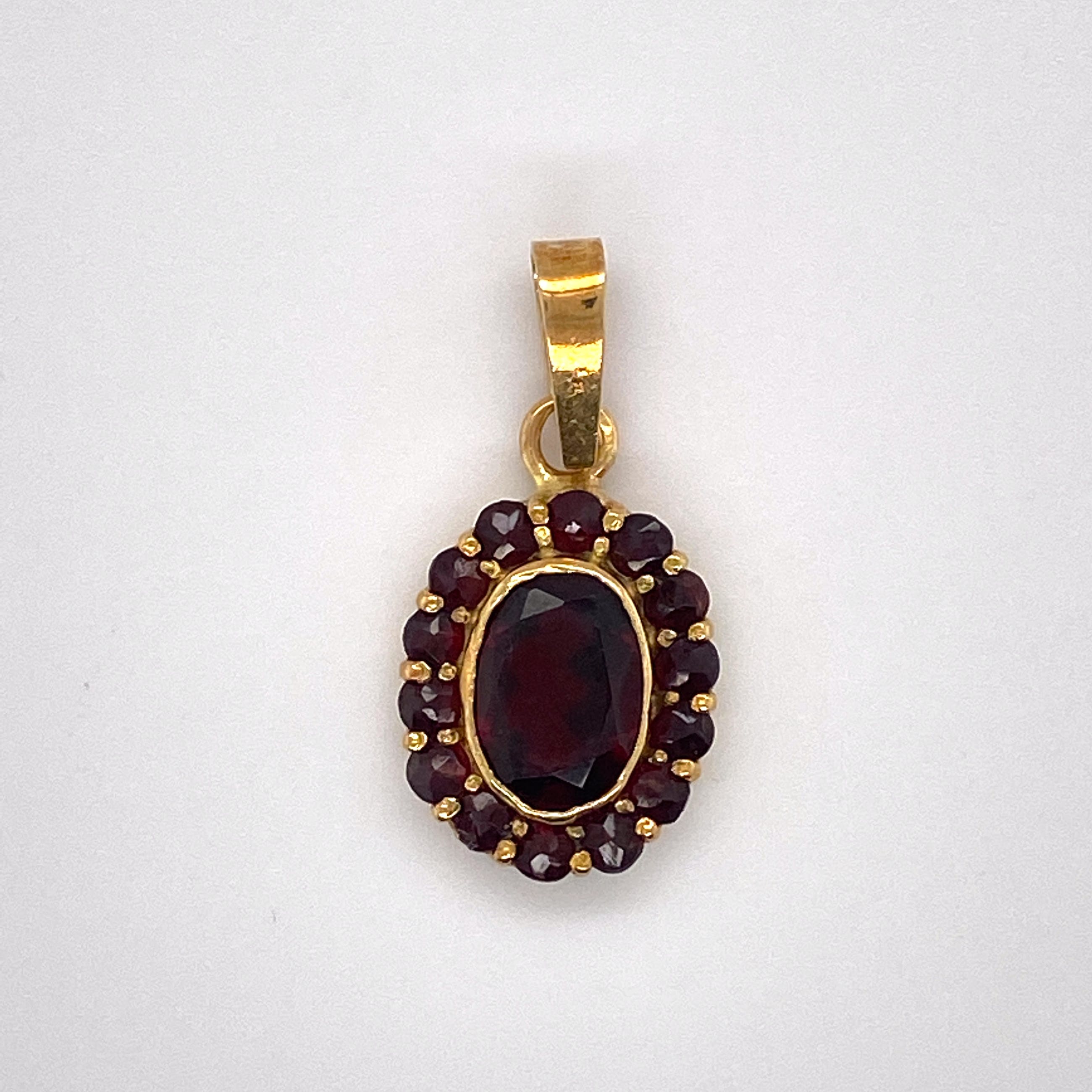 bezet met 14 x 2.5 mm rond geslepen granaat en een ovaal geslepen granaat van 10x7mm