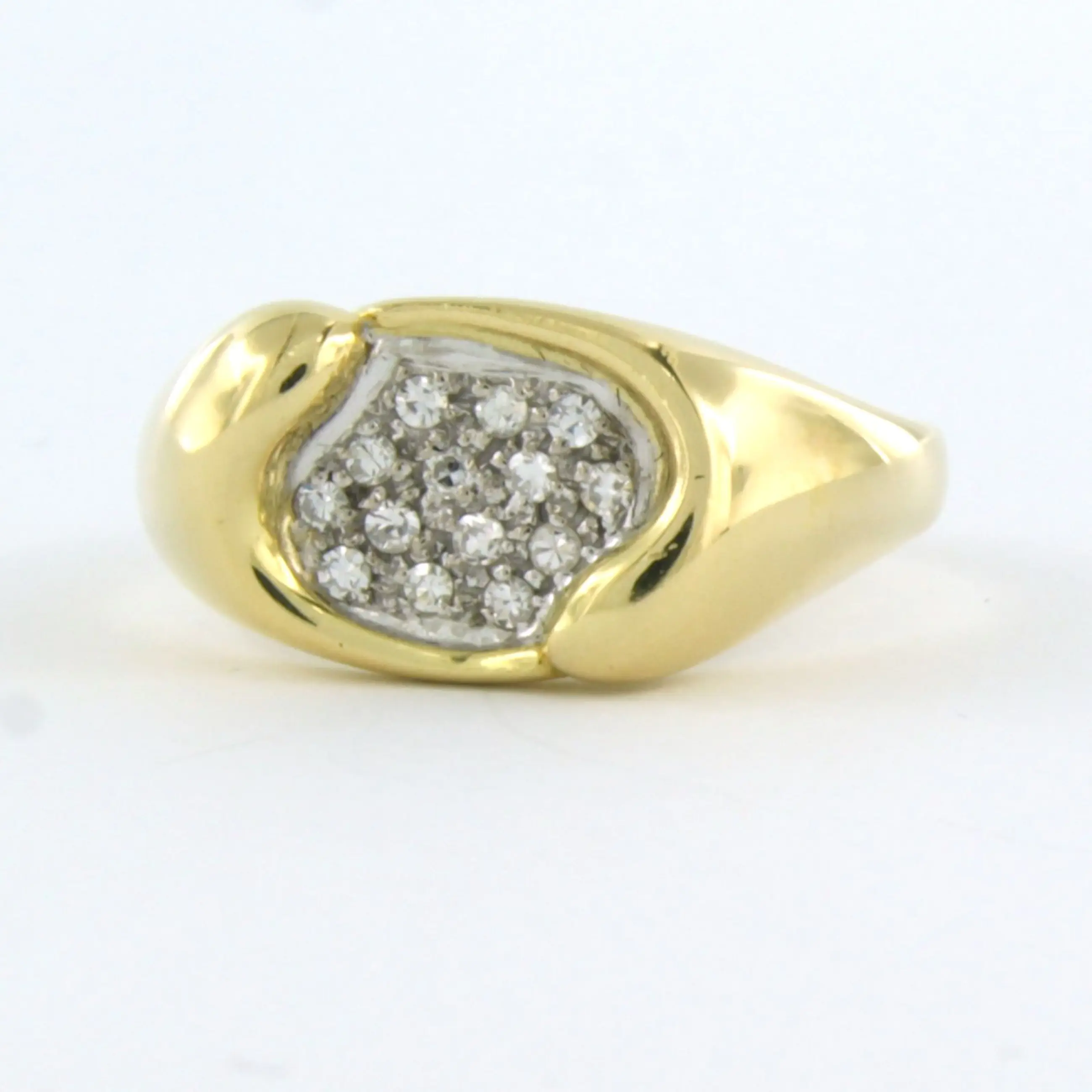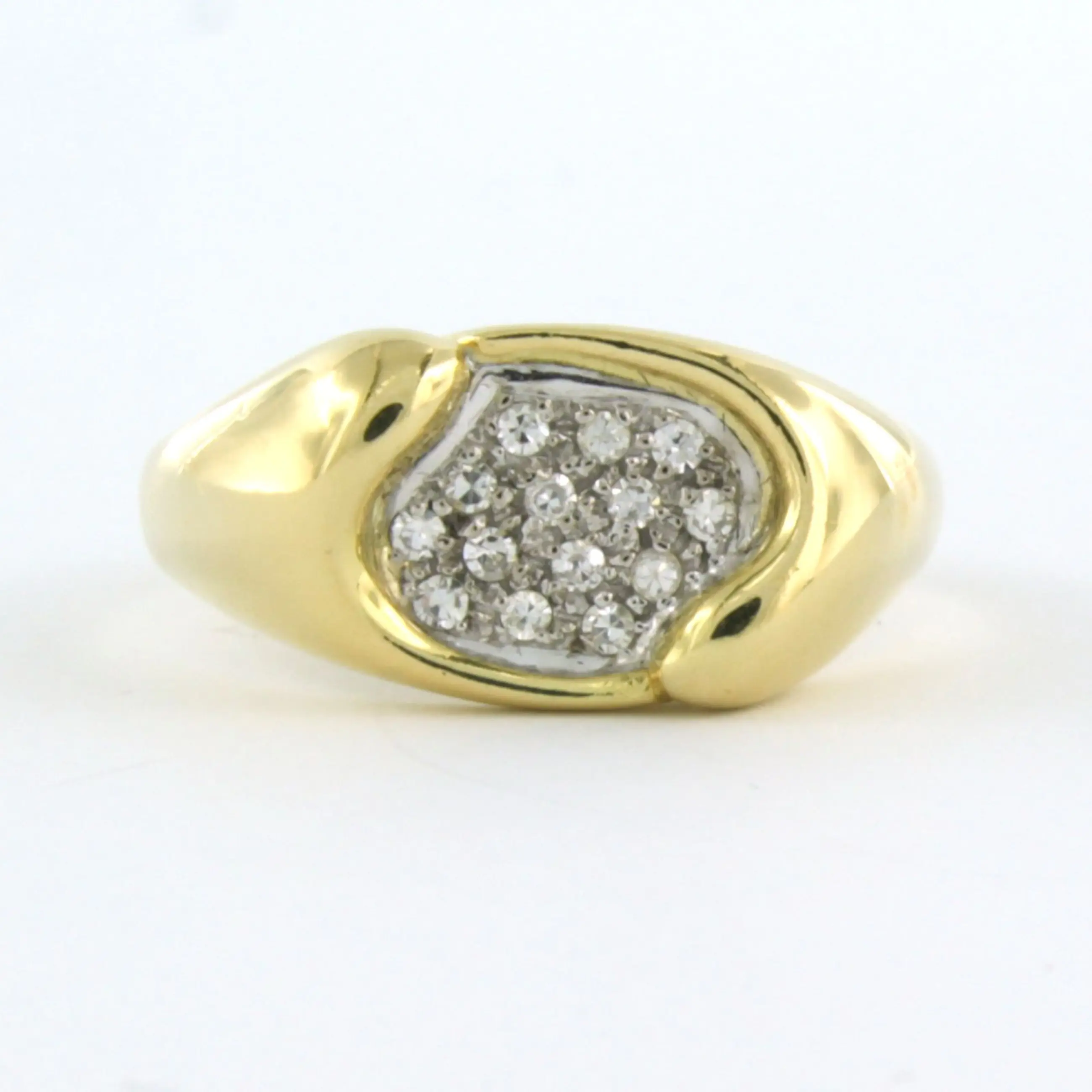 18k bicolor gouden ring bezet met single cut geslepen diamant tot. 0,14ct