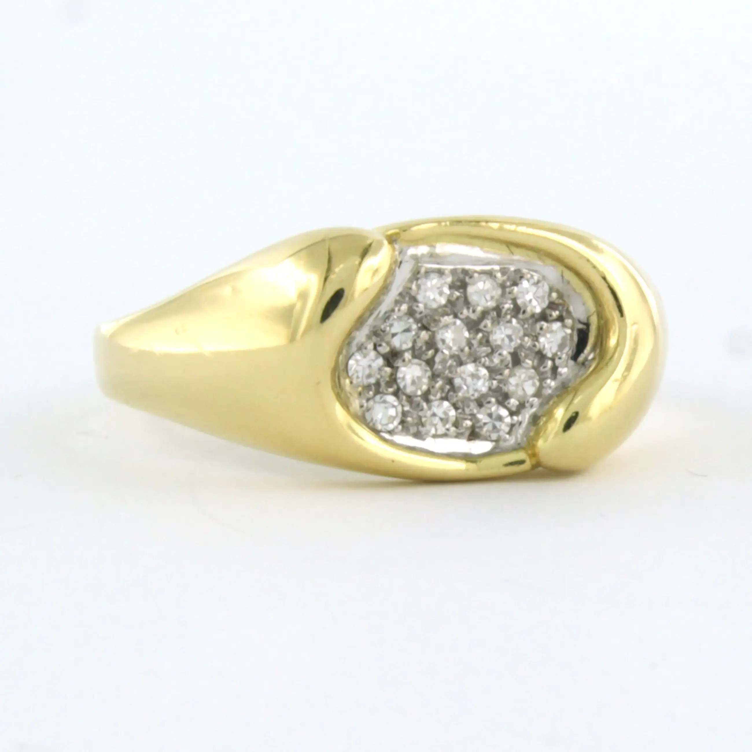 18k bicolor gouden ring bezet met single cut geslepen diamant tot. 0,14ct - F/G - VS/SI - ringmaat 18,25 (57)