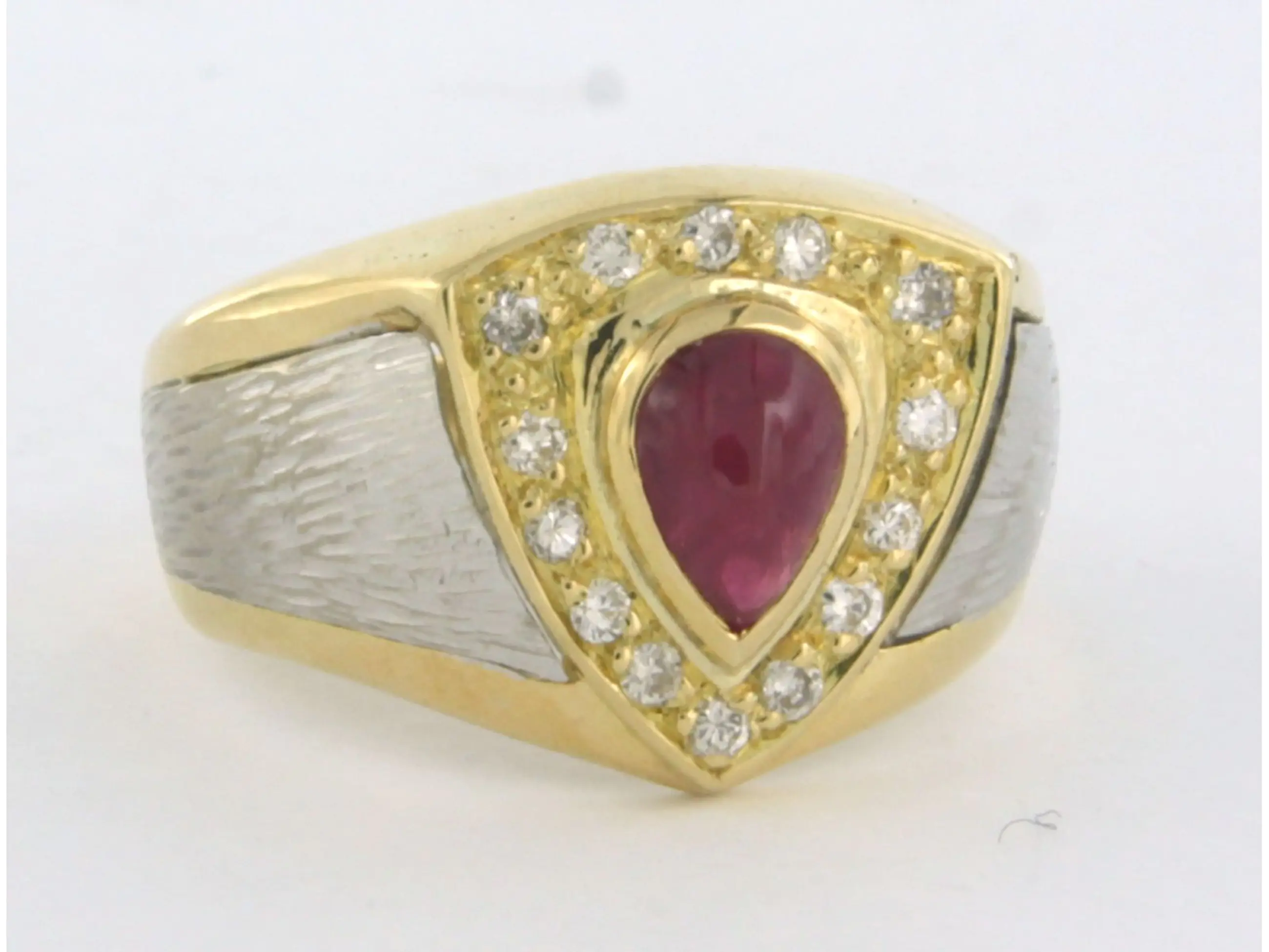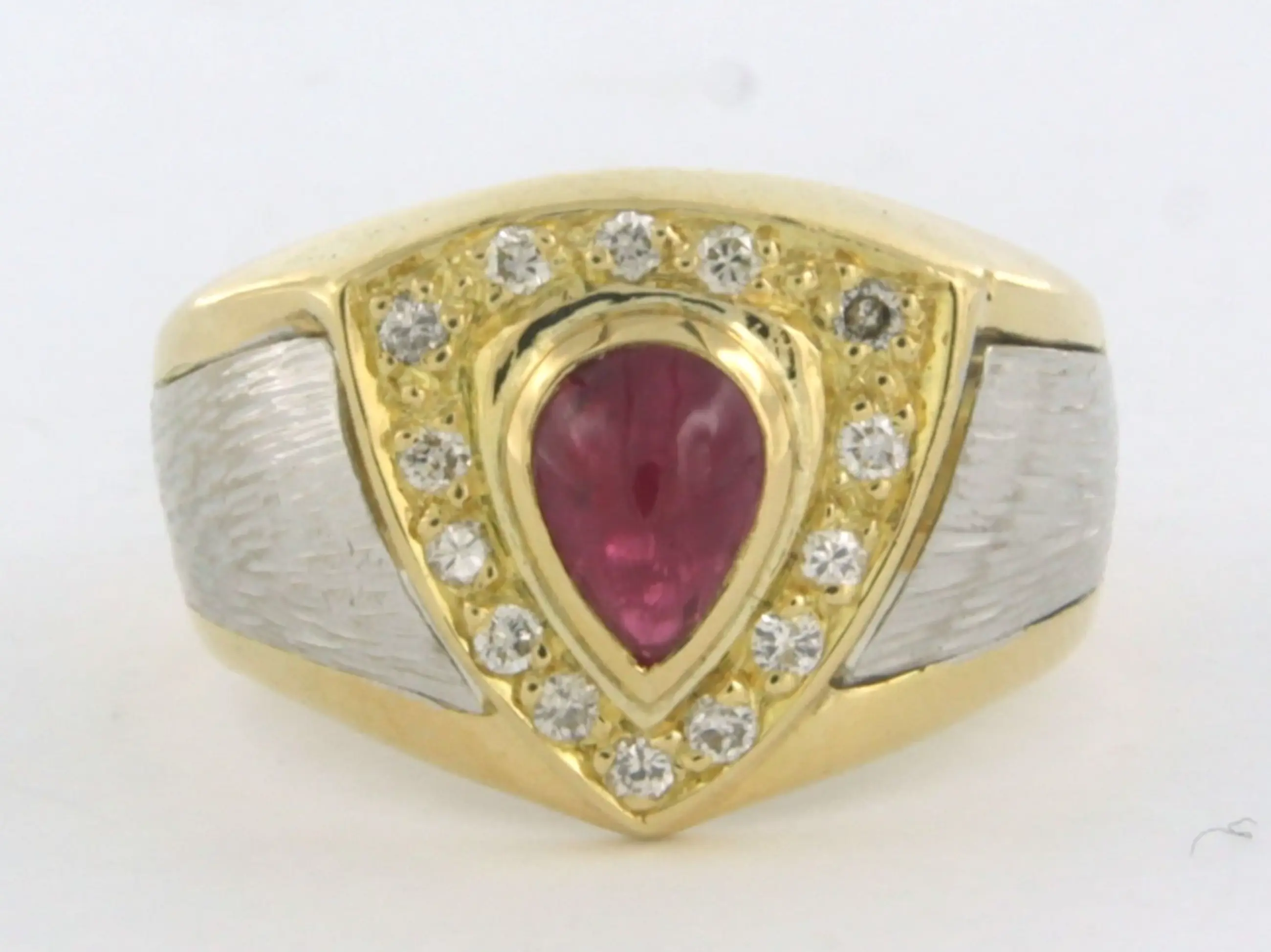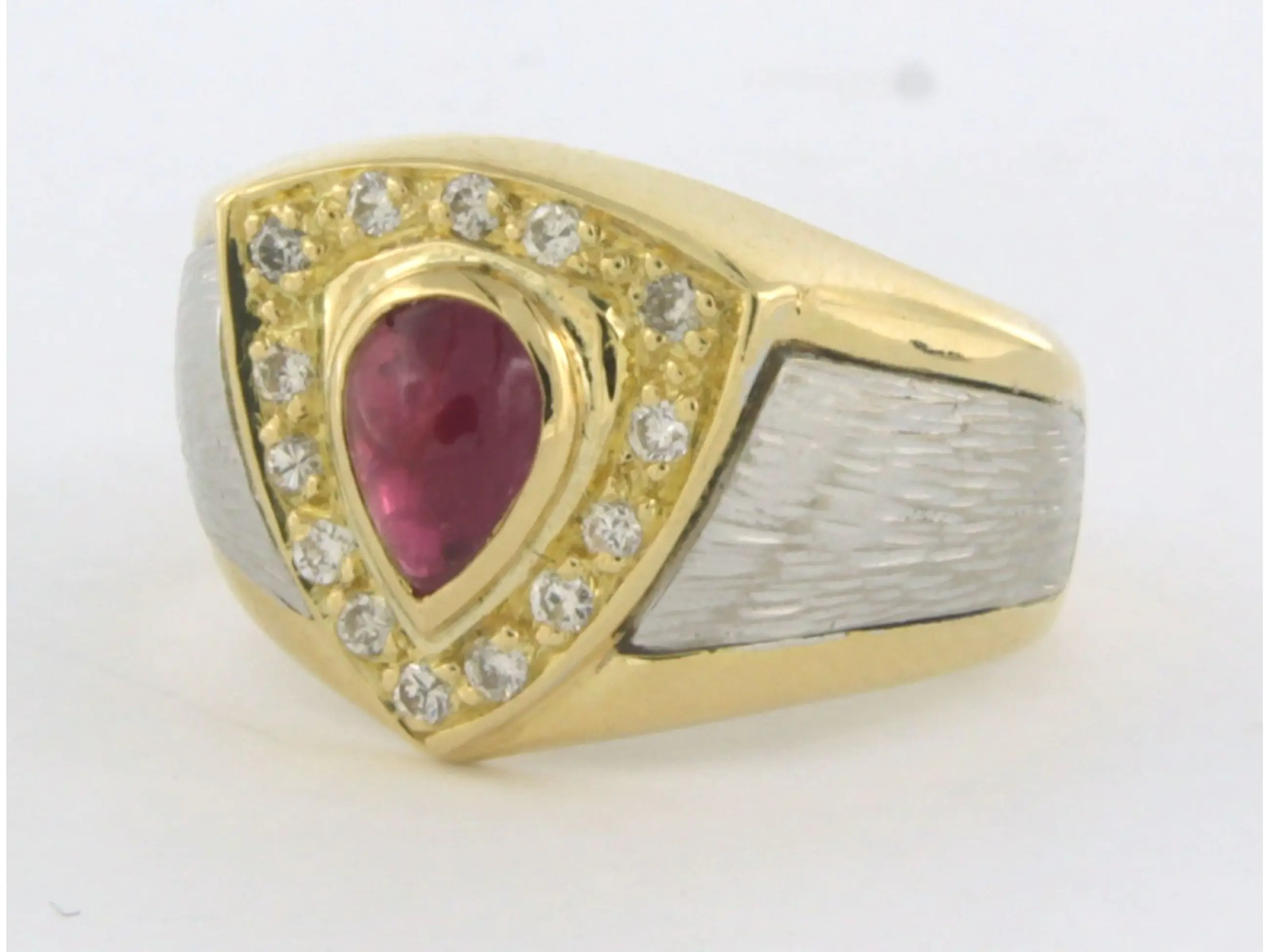 18k bicolour gouden ring bezet met robijn en briljant geslepen diamant 0.21 ct F/G VS/SI - ringmaat 17 (53)