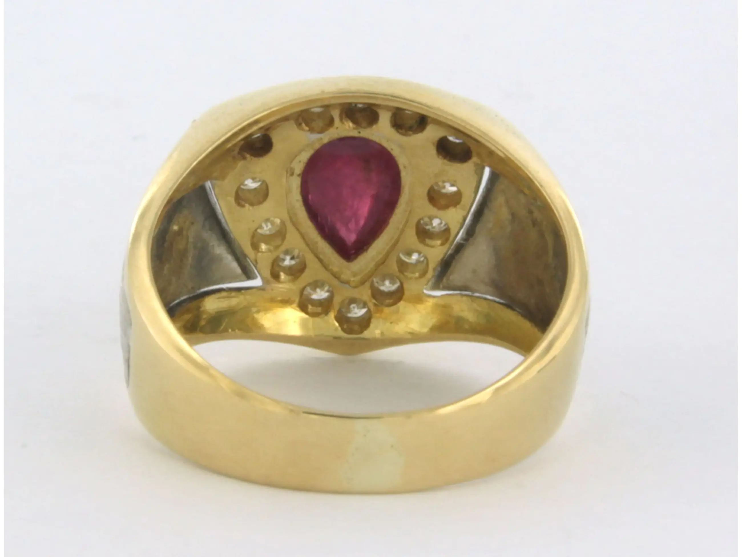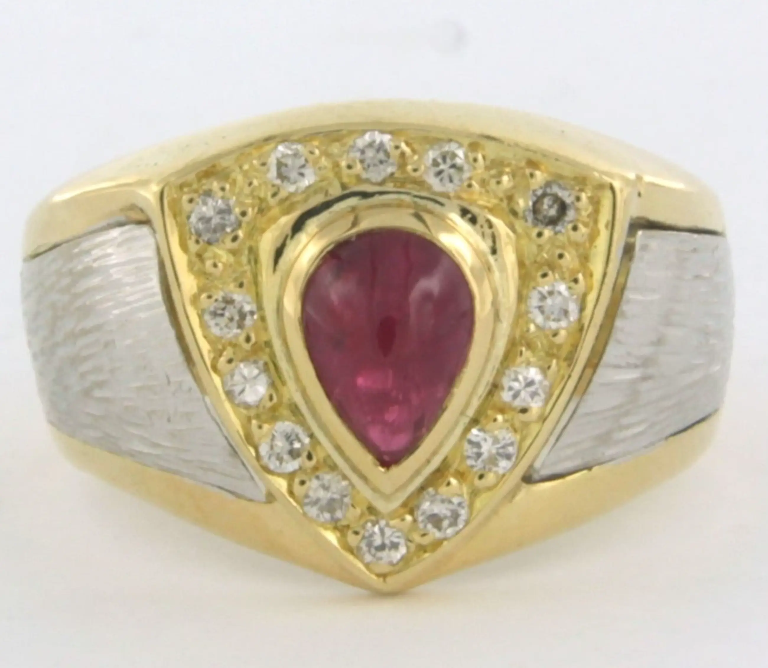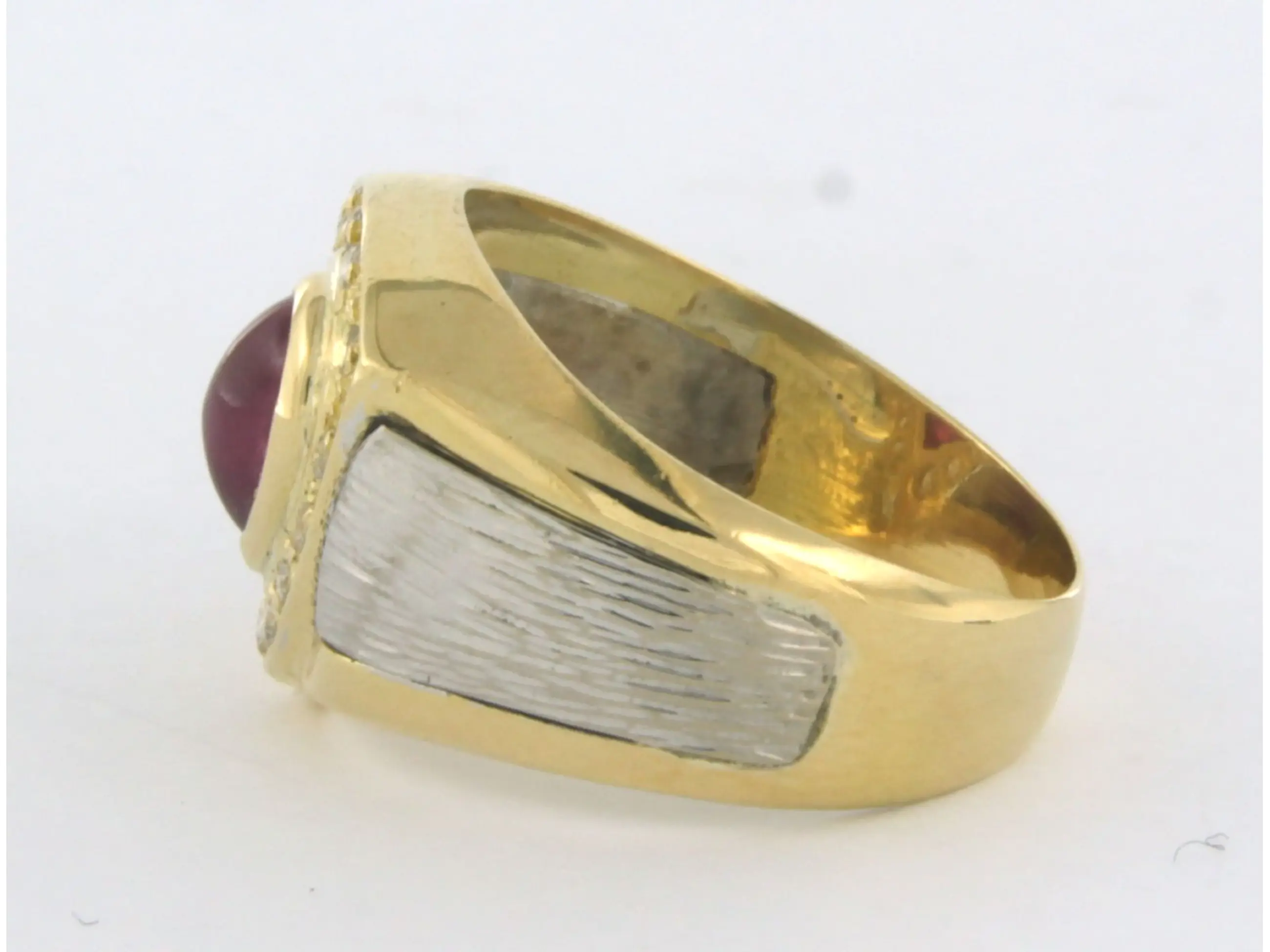 18k bicolour gouden ring bezet met robijn en briljant geslepen diamant 0.21 ct F/G VS/SI - ringmaat 17 (53)