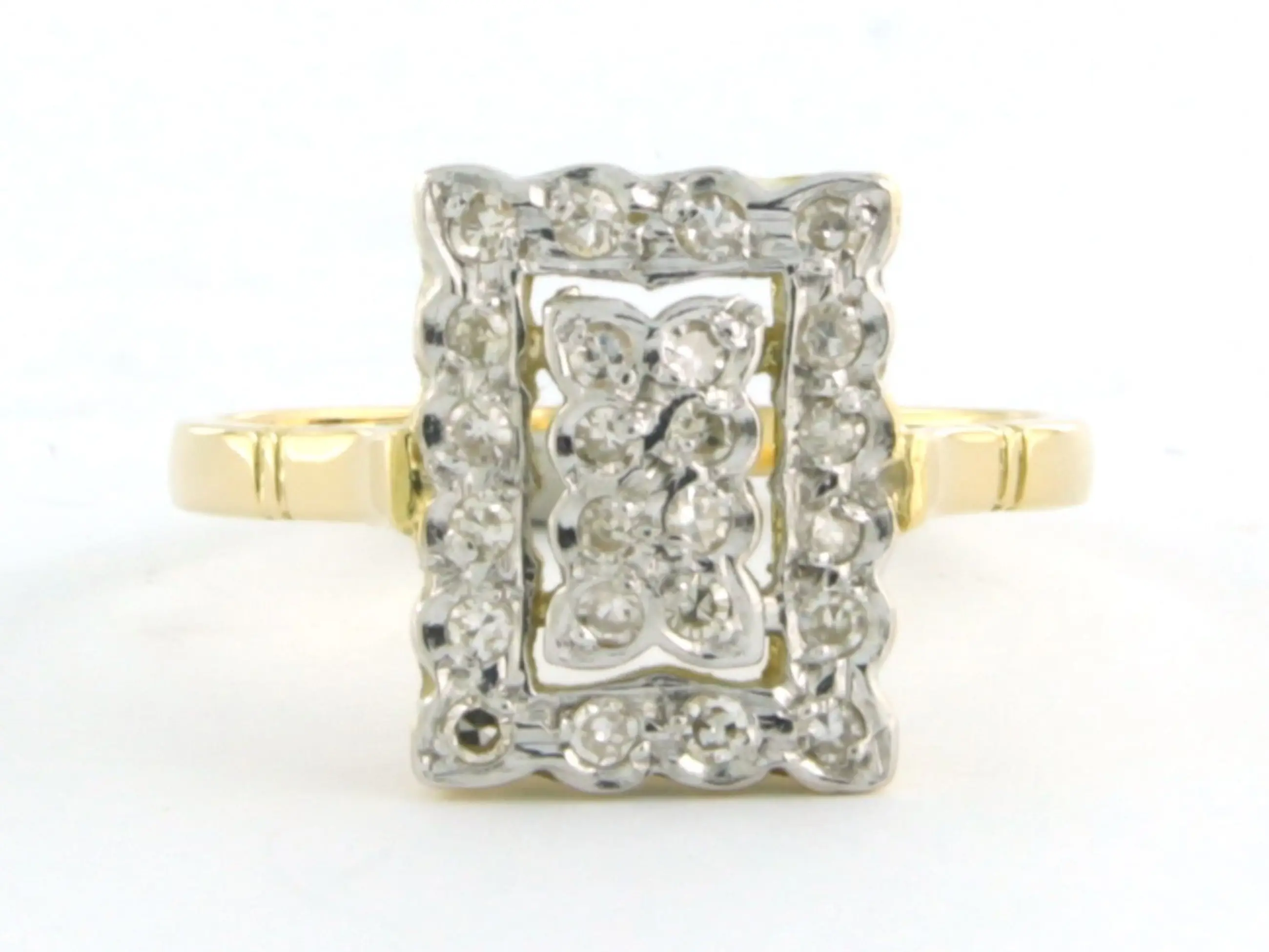 18k bicolour gouden ring bezet met single cut geslepen diamant tot. 0.30ct