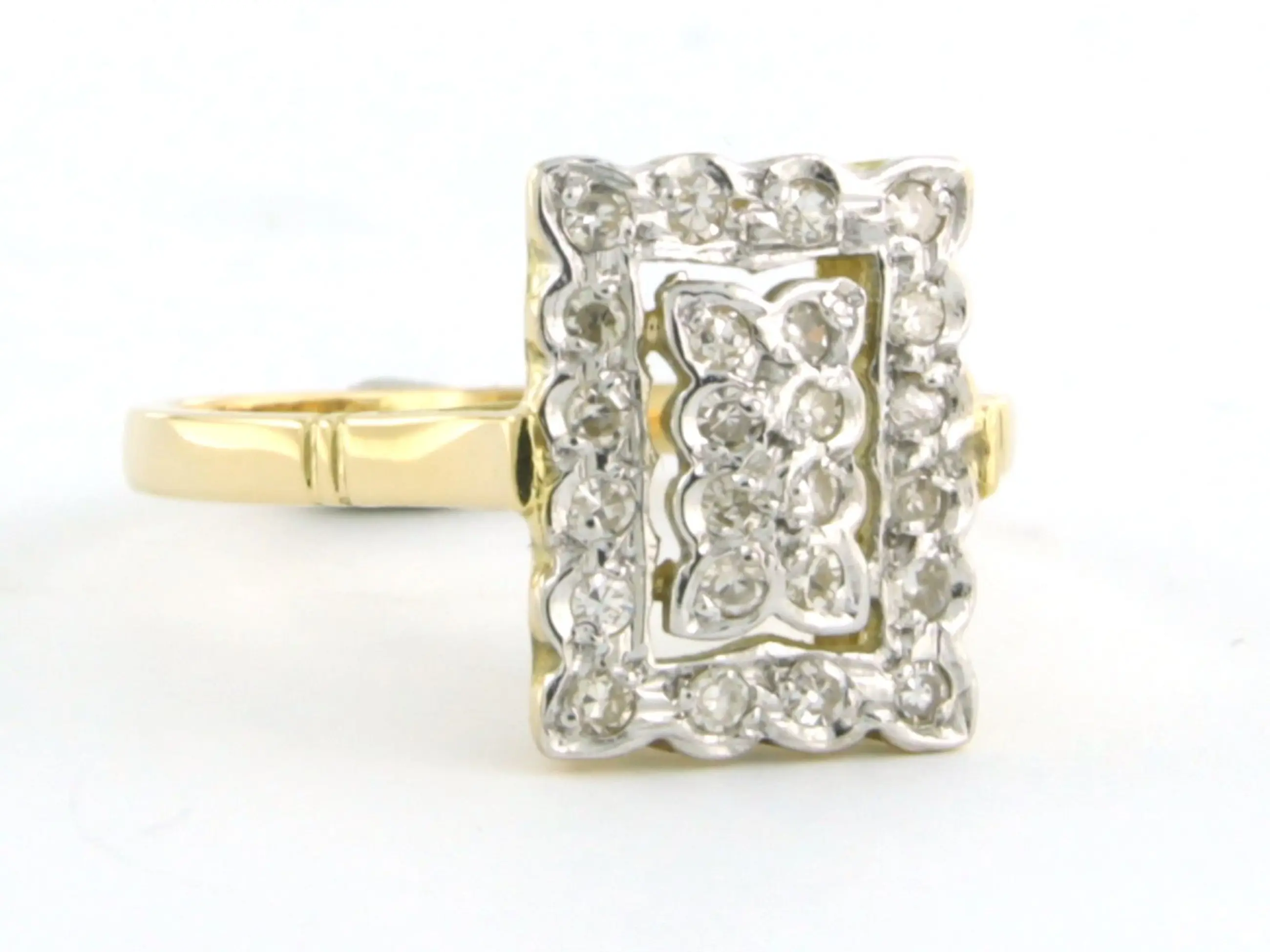 18k bicolour gouden ring bezet met single cut geslepen diamant tot. 0.30ct – F/G - VS/SI - ringmaat 17(53)