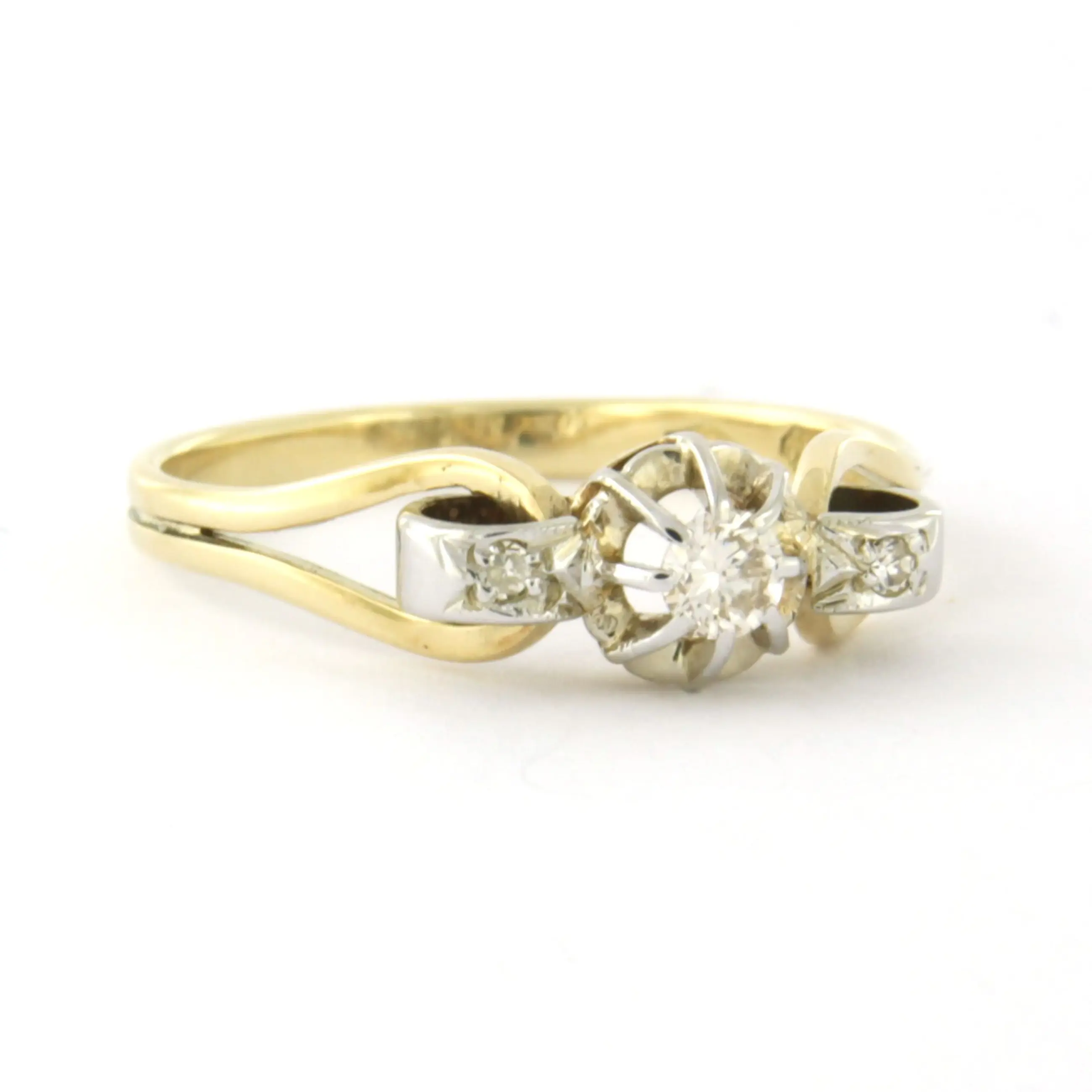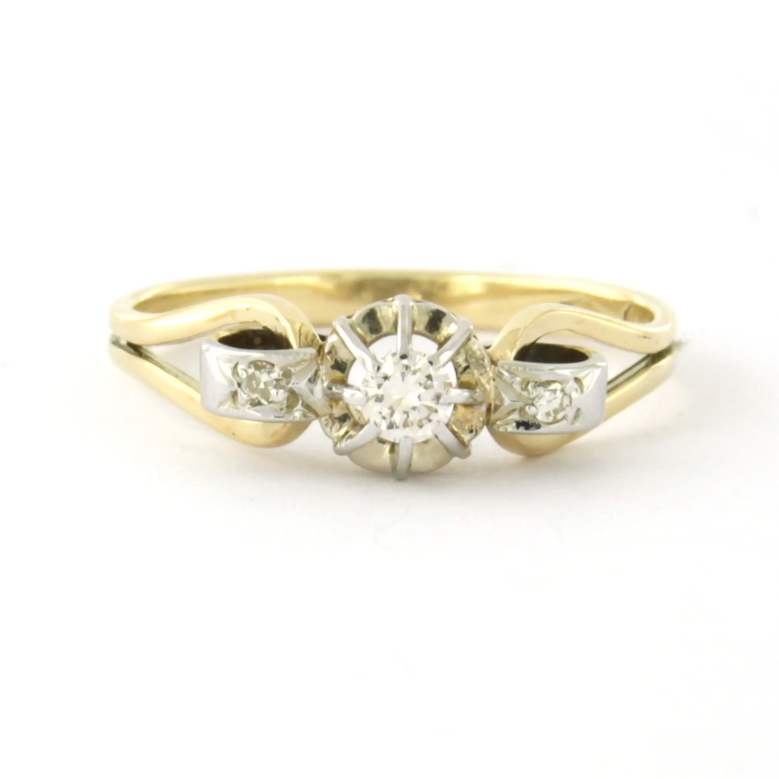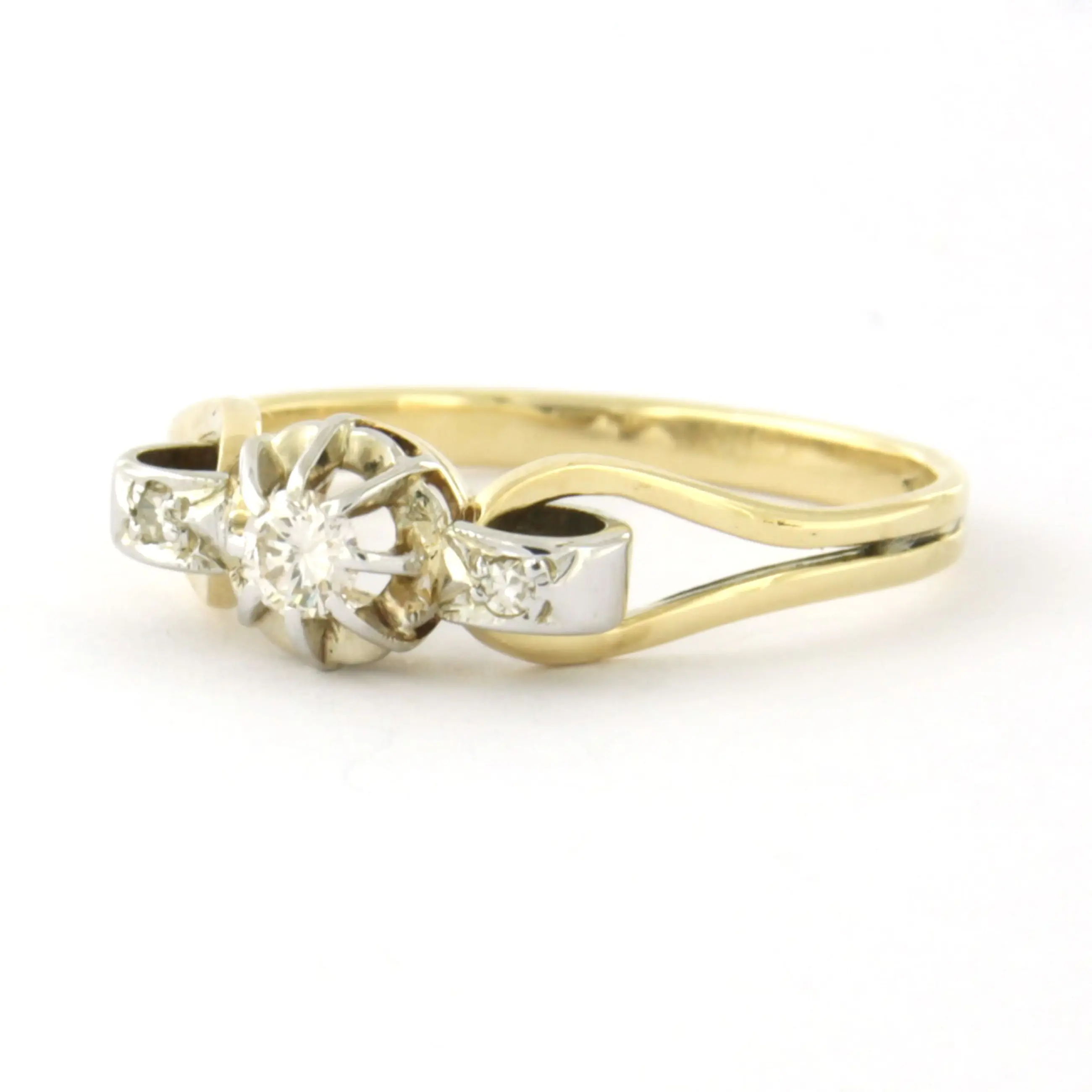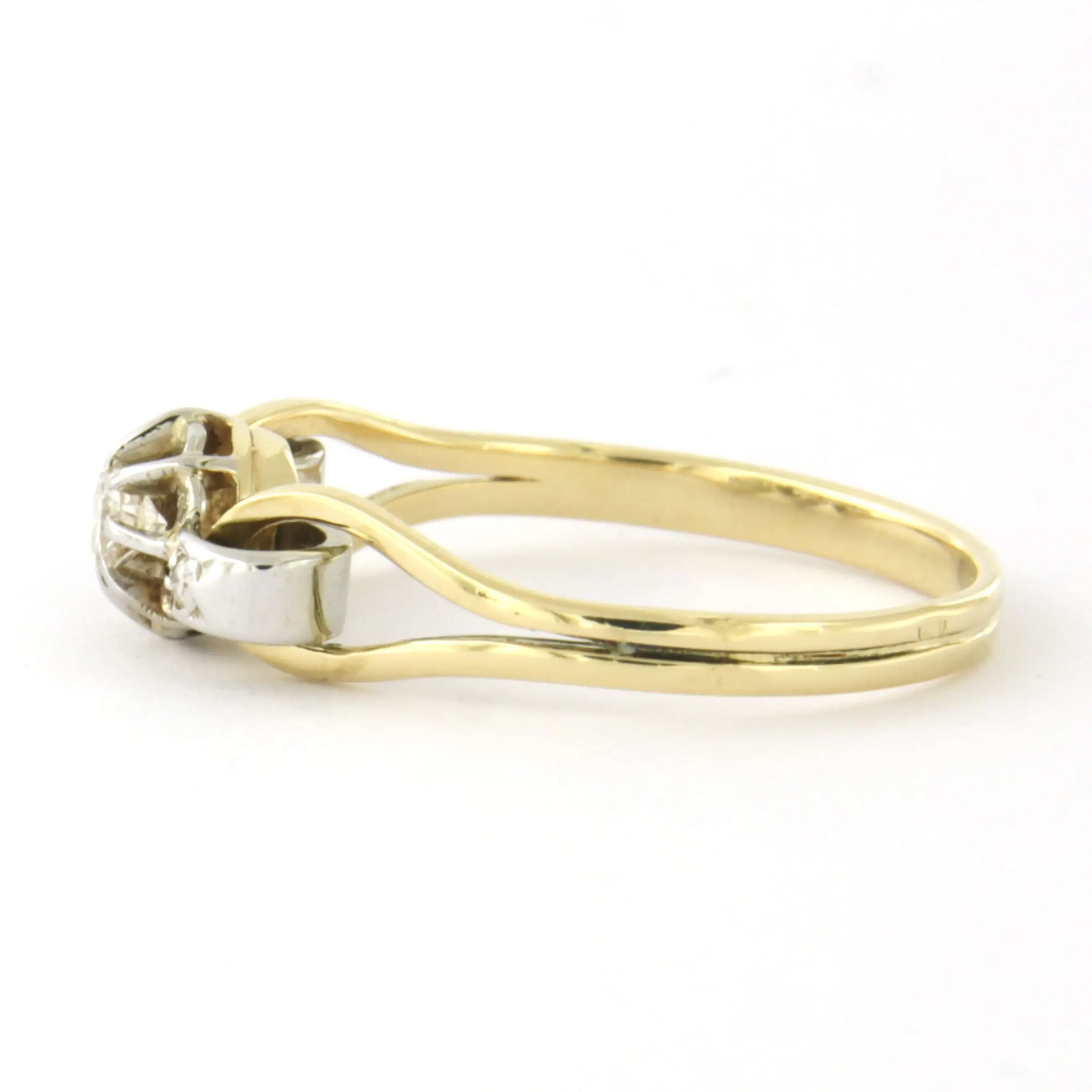 18k bicolour gouden ring met briljant en single cut geslepen diamant tot. 0.10ct