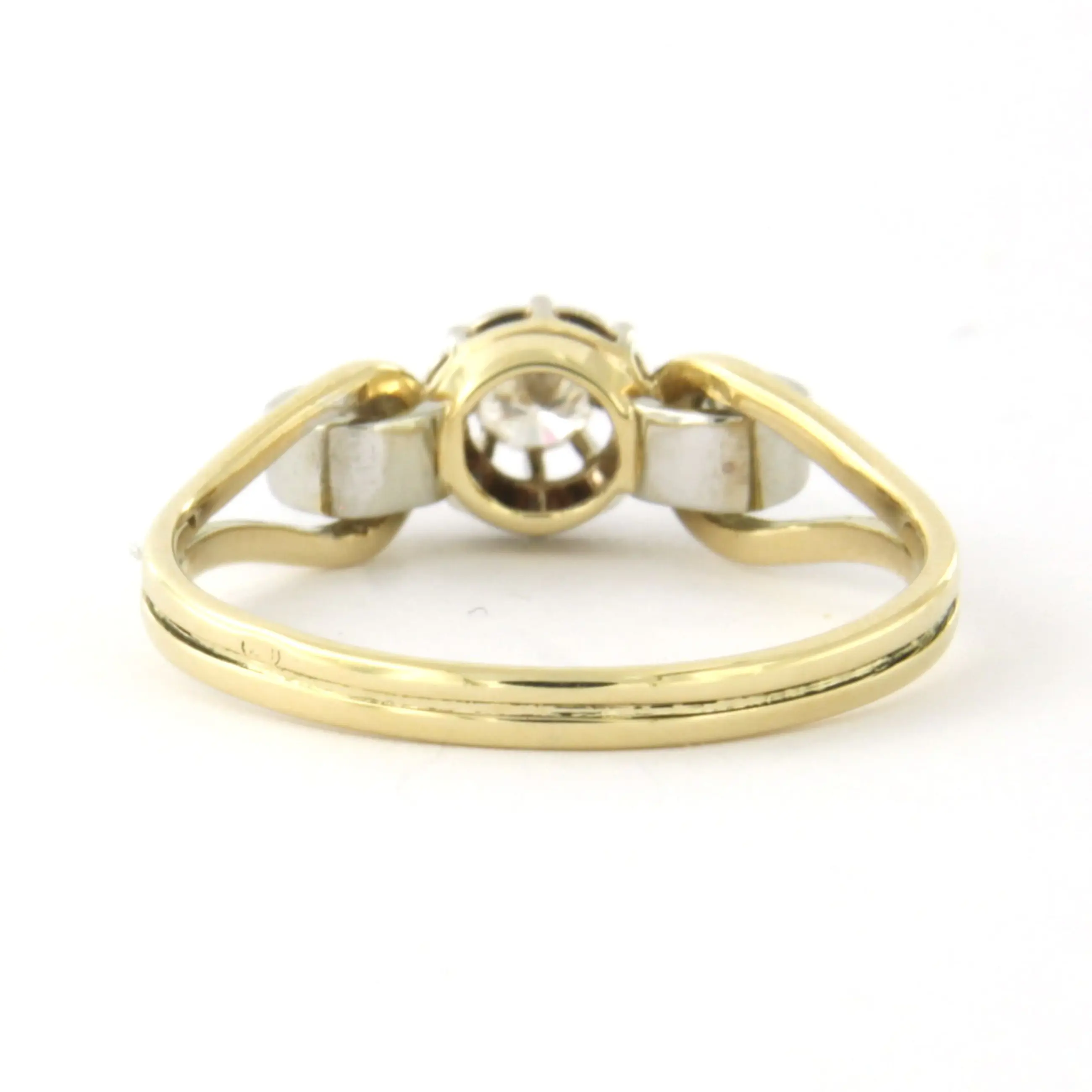 18k bicolour gouden ring met briljant en single cut geslepen diamant tot. 0.10ct – F/G - VS/SI - ringmaat 17(53)