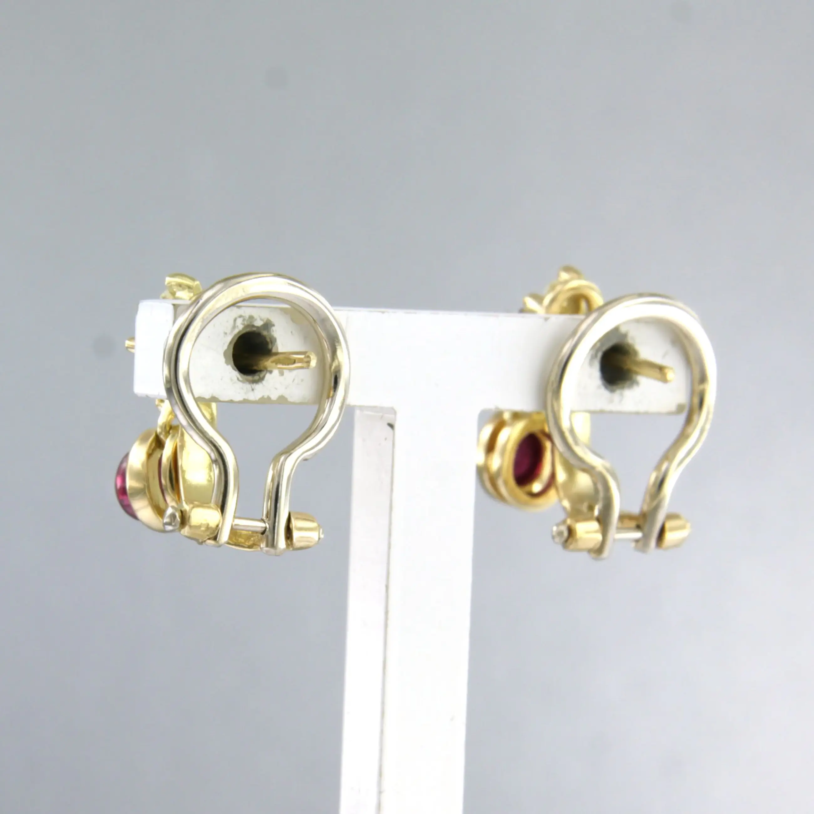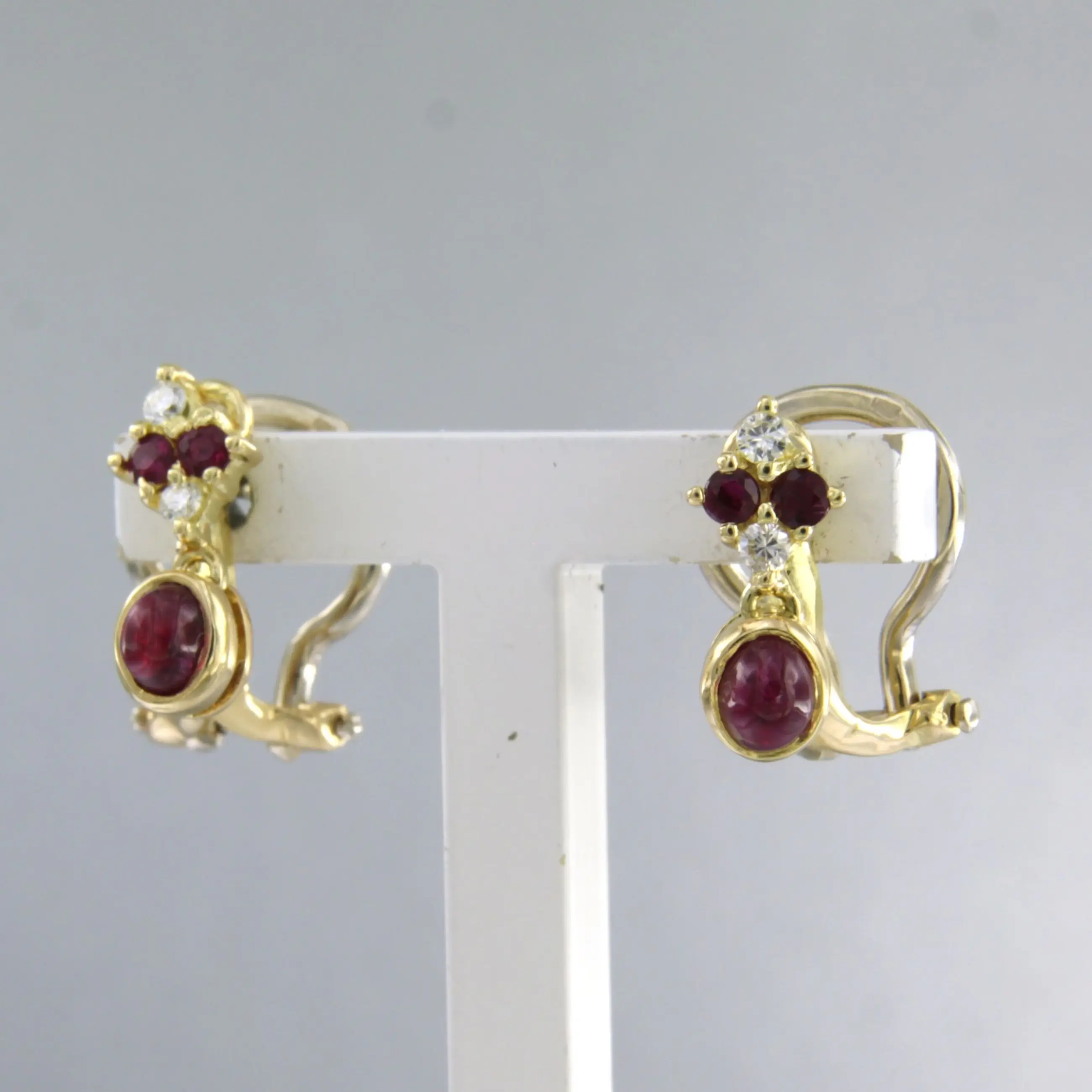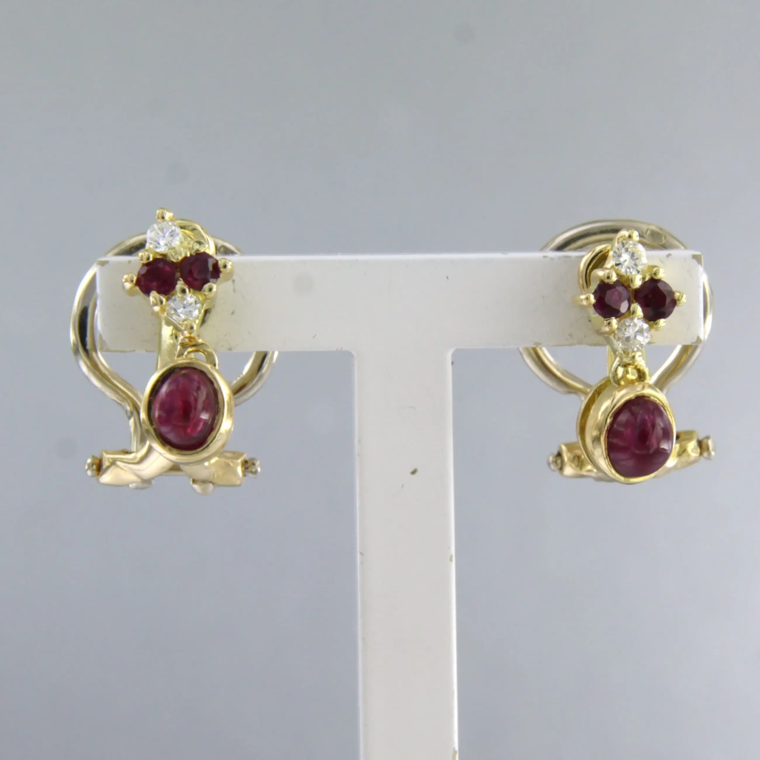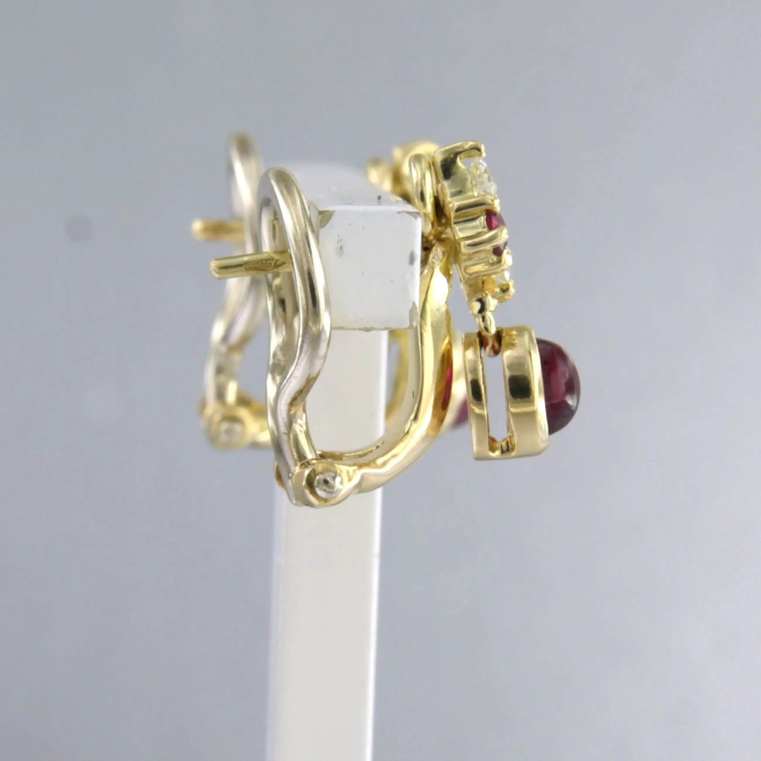 18k geel gouden oorhangers bezet met robijn en briljant geslepen diamant tot.0.08ct – F/G – VS/SI