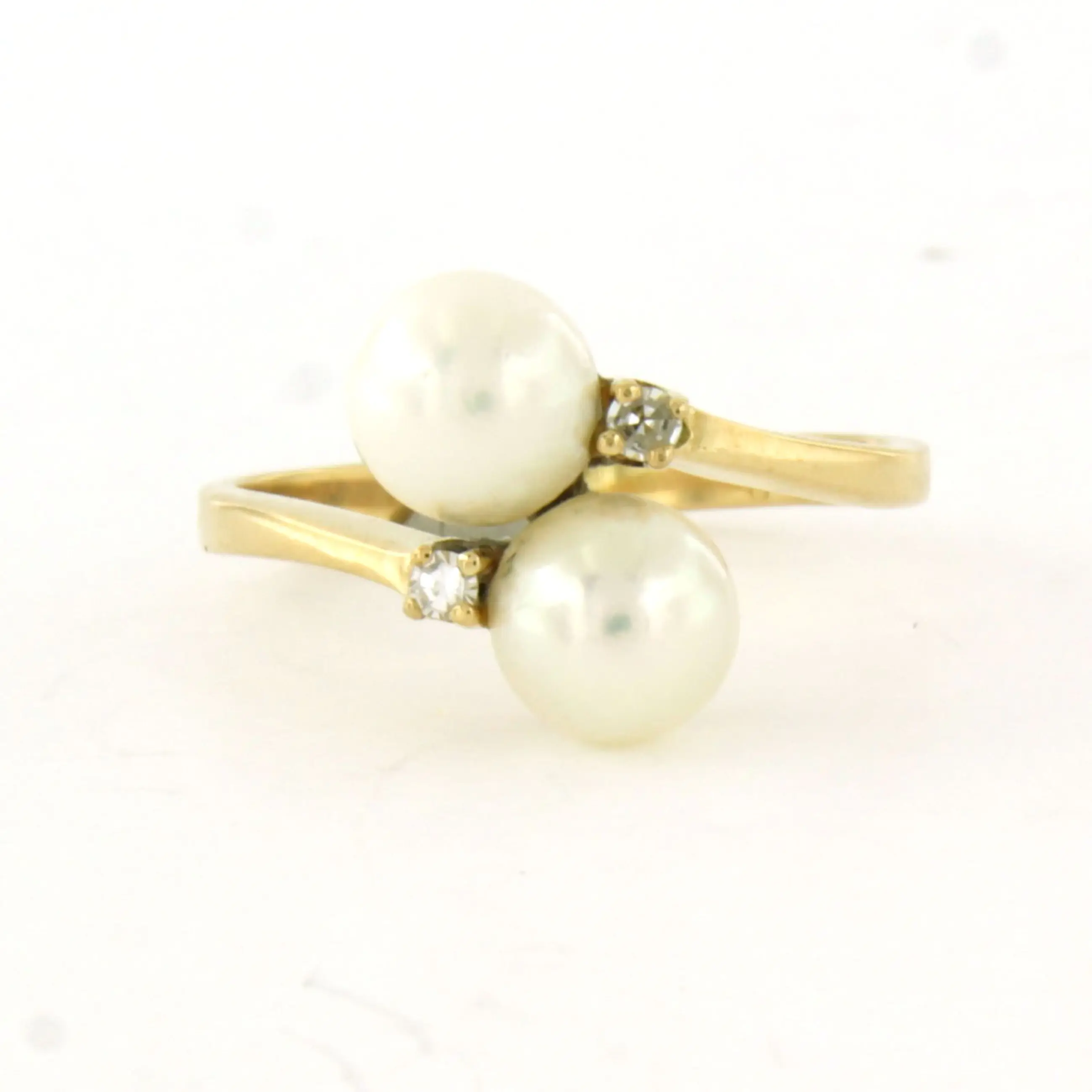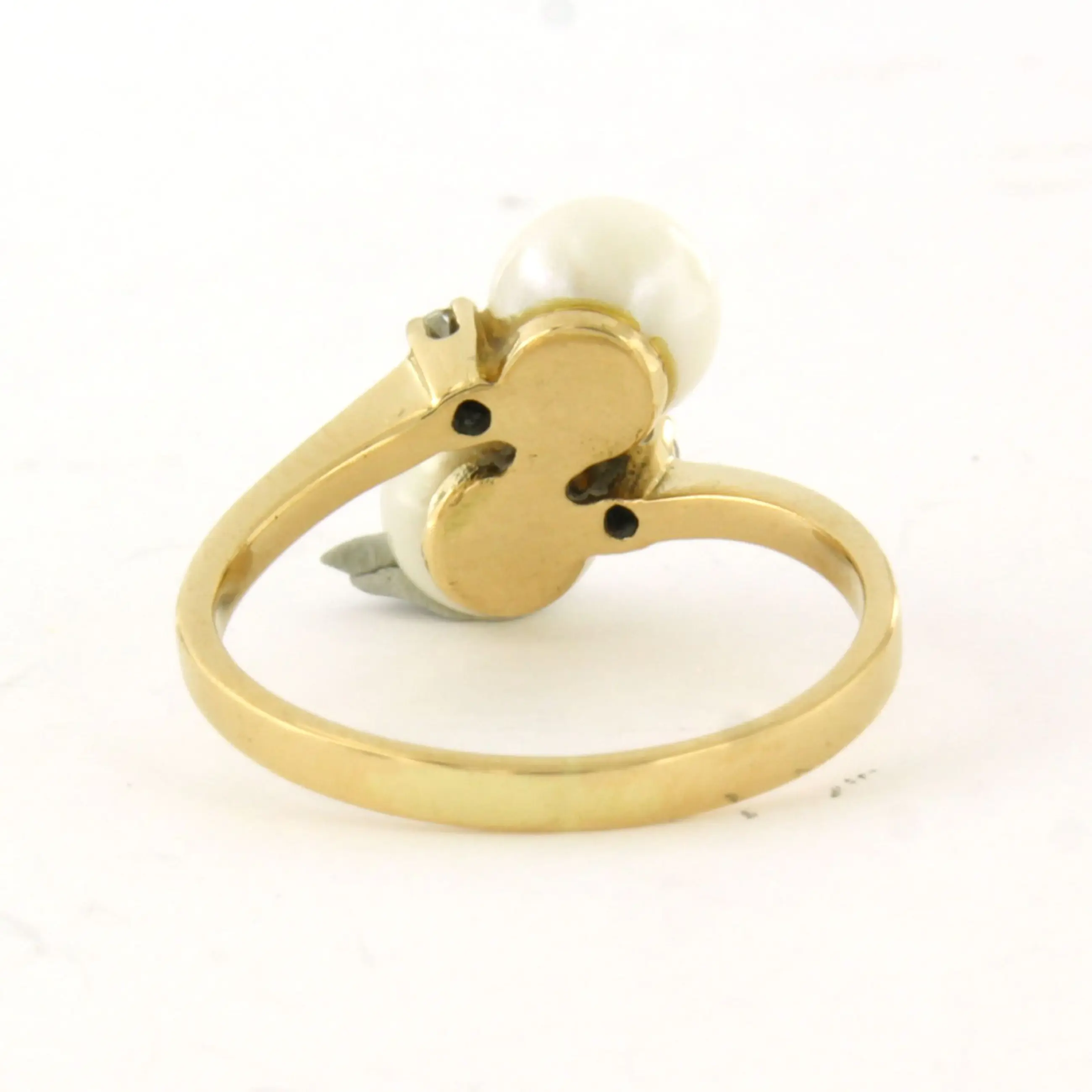 18k geel gouden ring bezet met parel en single cut geslepen diamant tot. 0.03ct - F/G - VS/SI - ringmaat 17.25(54)