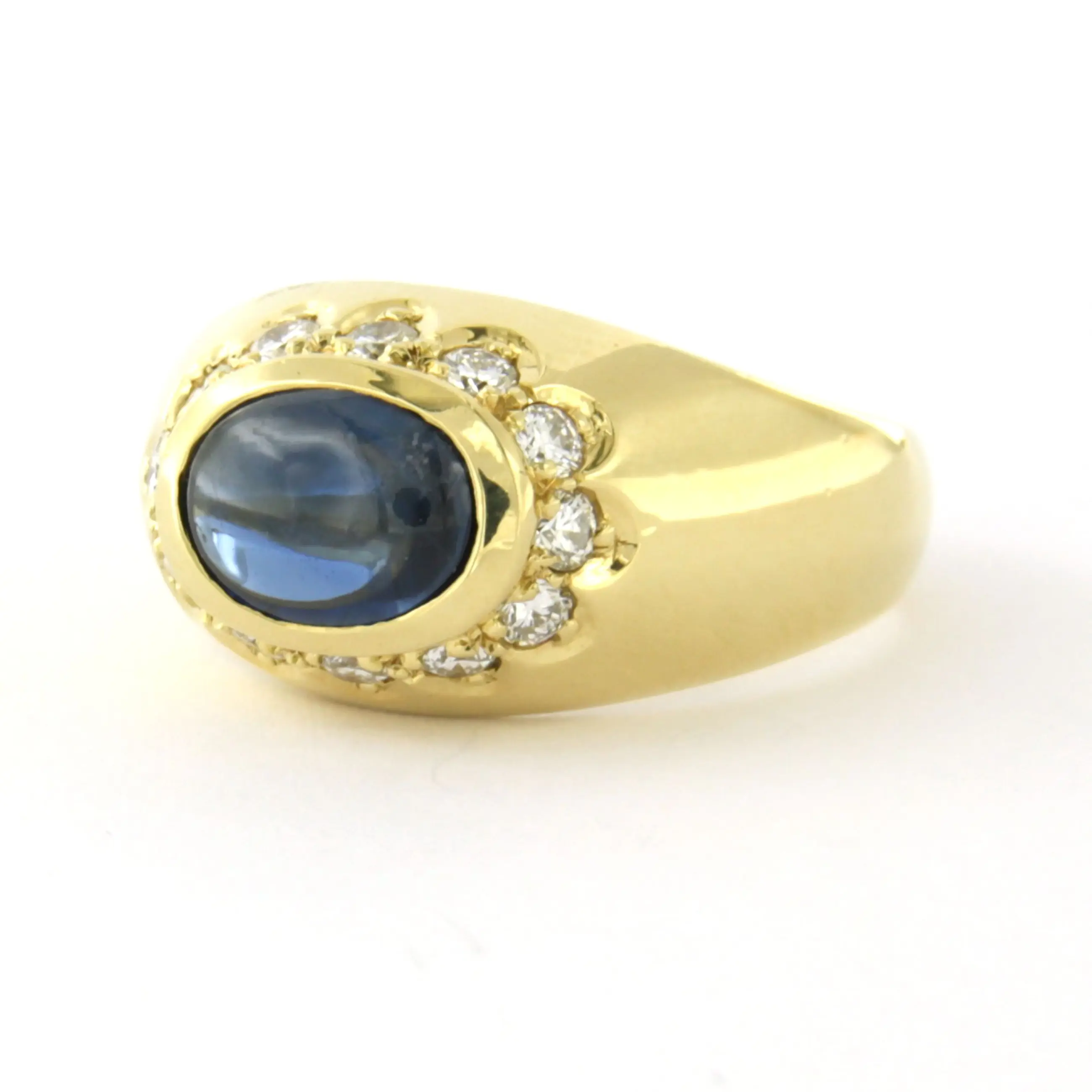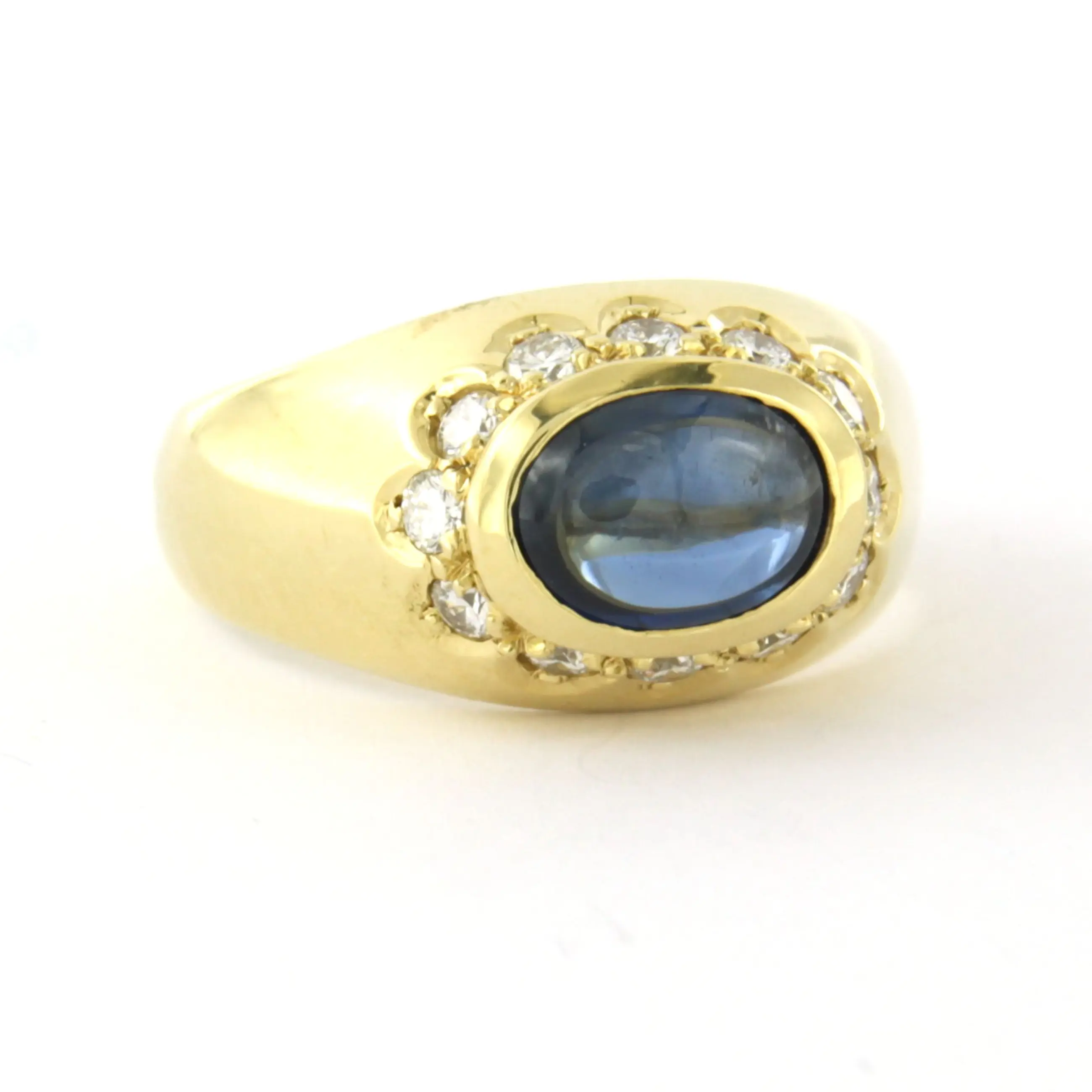 18k geel gouden ring bezet met saffier en briljant geslepen diamant tot. 0.50ct