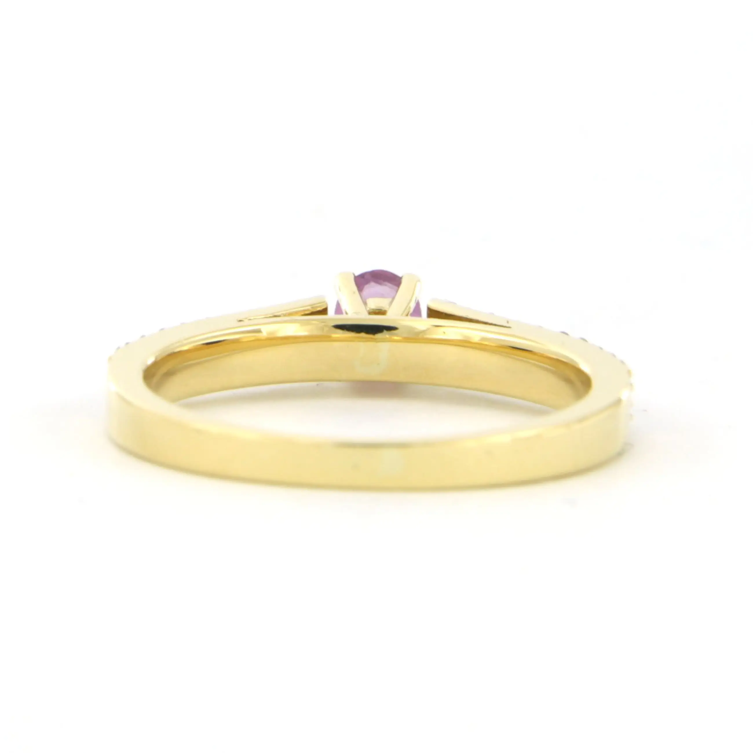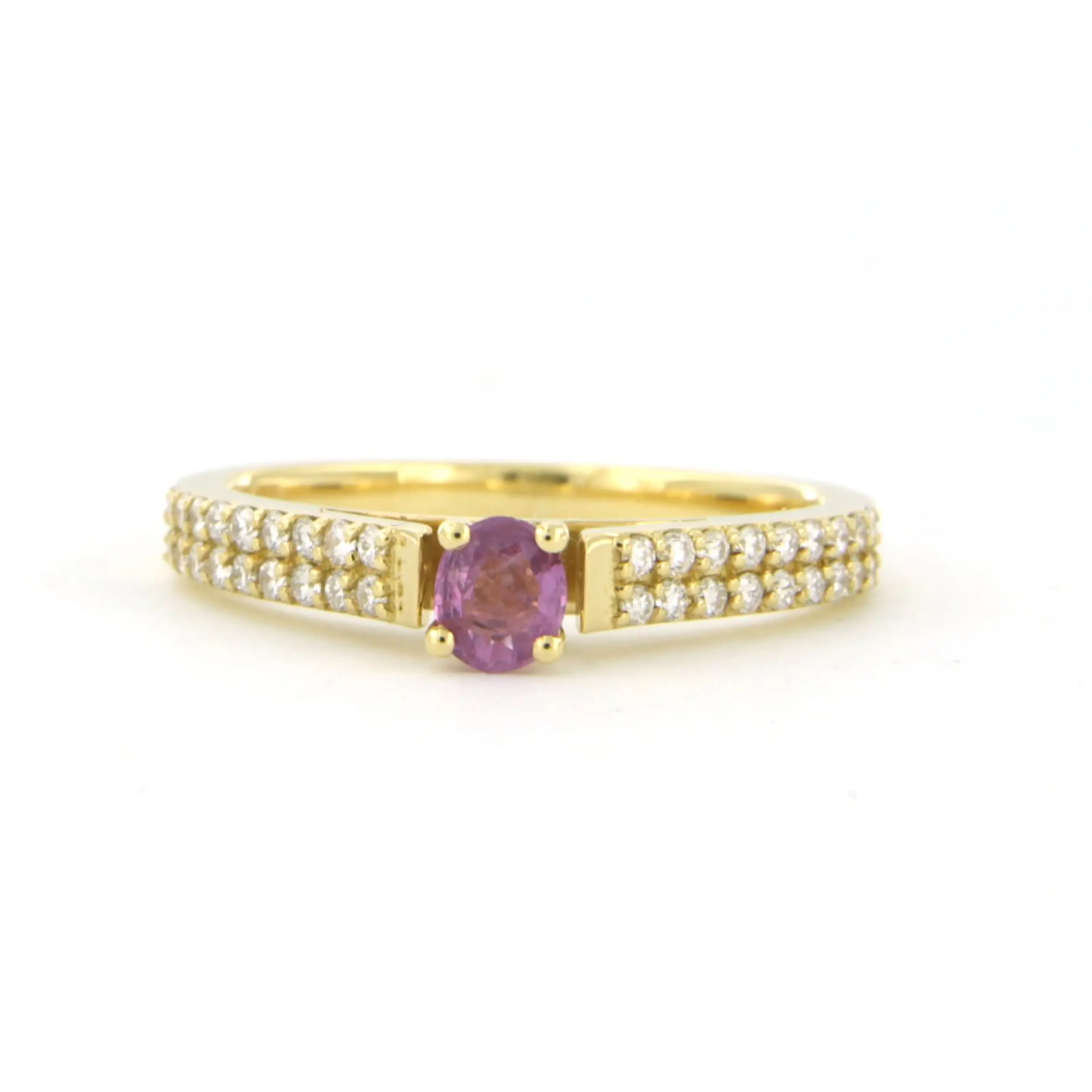 18k geel gouden ring bezet met roze saffier 0.25ct en briljant geslepen diamanten tot. 0.26ct - F/G - VS/SI - ringmaat 17.5(55)