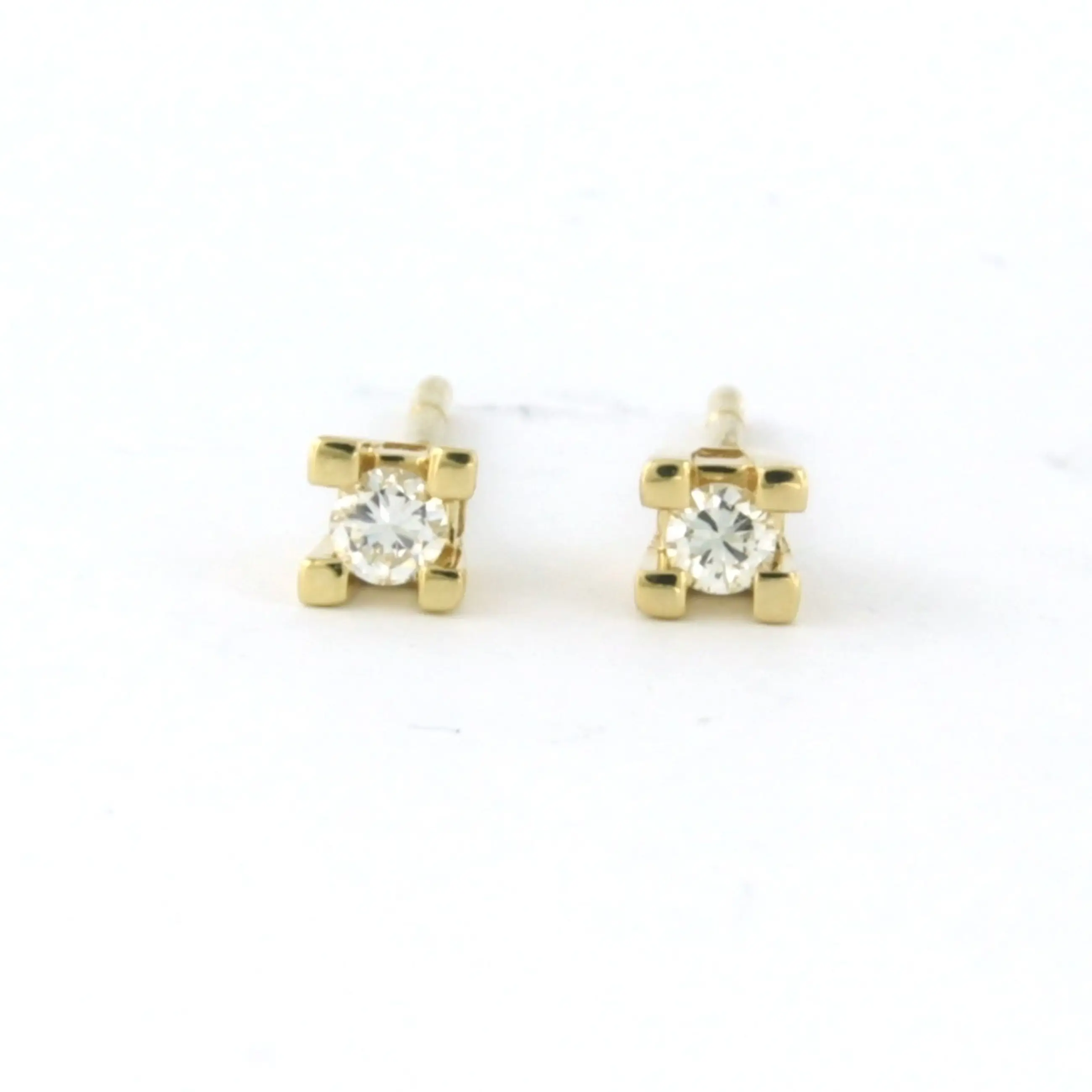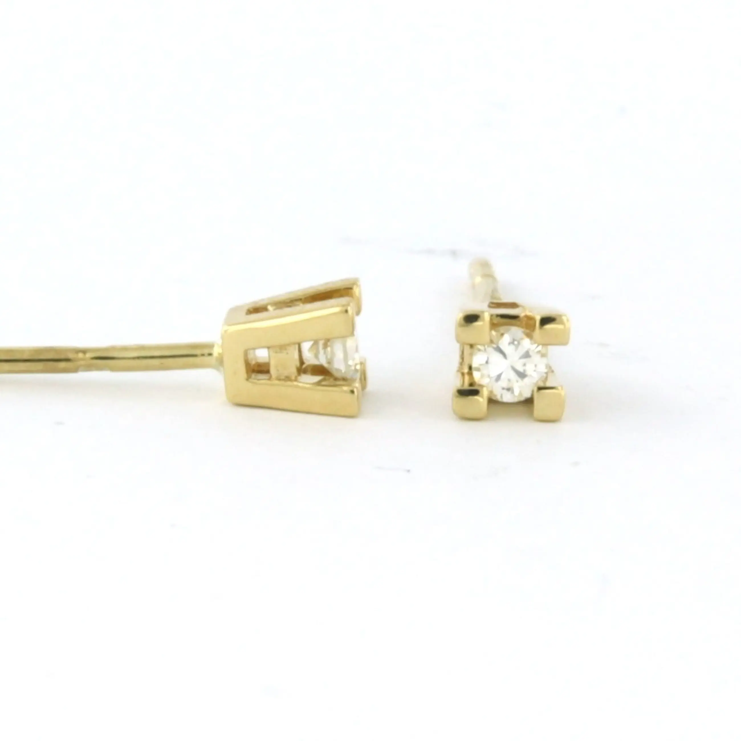 18k geel gouden solitair oorknoppen bezet met briljant geslepen diamant tot. 0,18ct - F/G - VS/SI