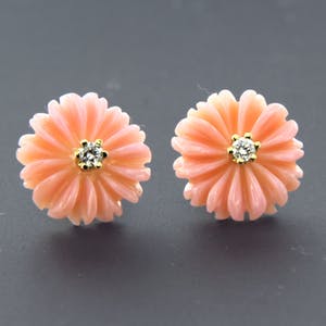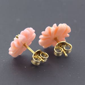 - 2 x 1.2 cm x 1.2 cm bloem vorm geslepen roze kwarts