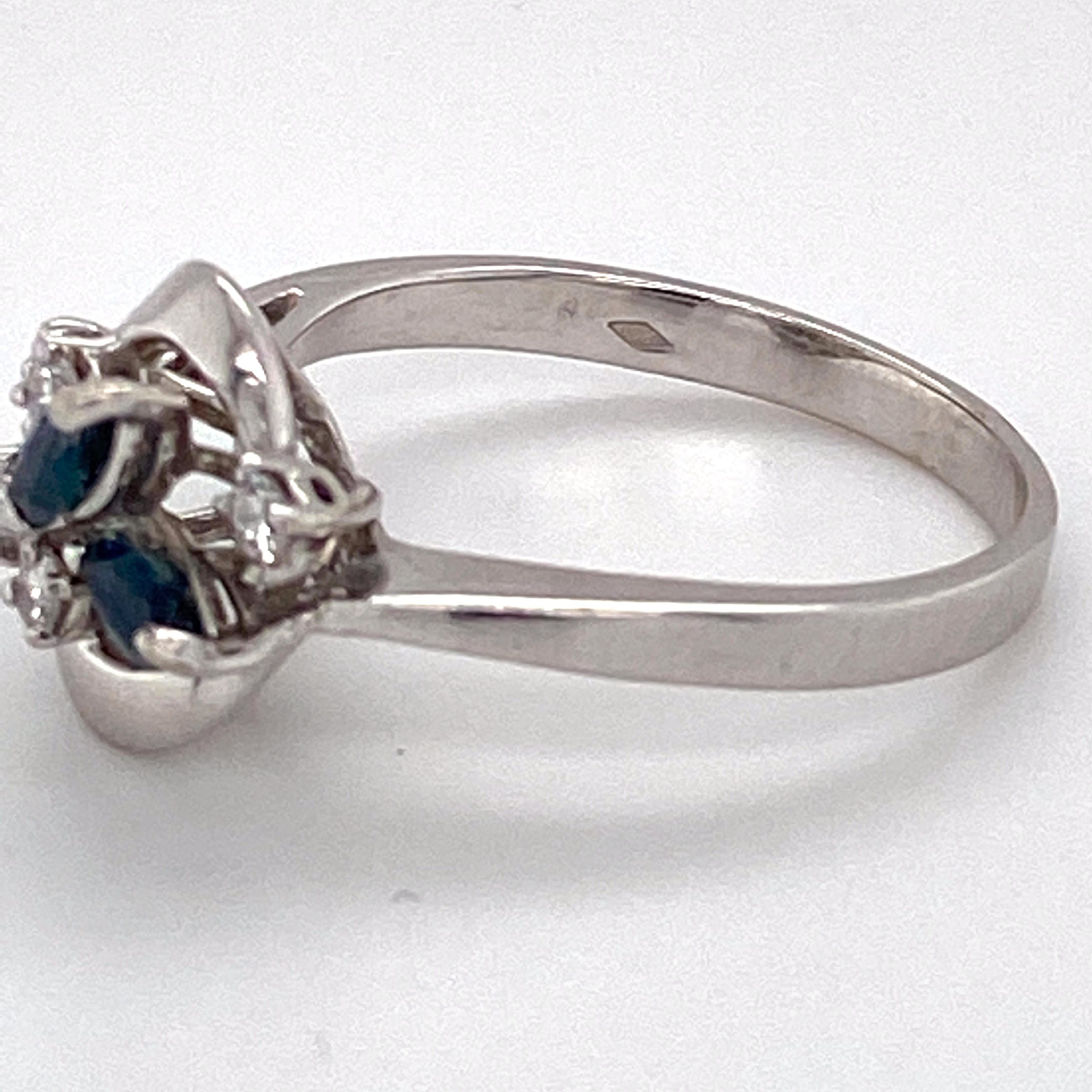 bezet met 5 x 1,7 mm briljant geslepen diamant met een totaal van circa 0,10 caraat en 2x markies geslepen saffier 5x2,5mm.