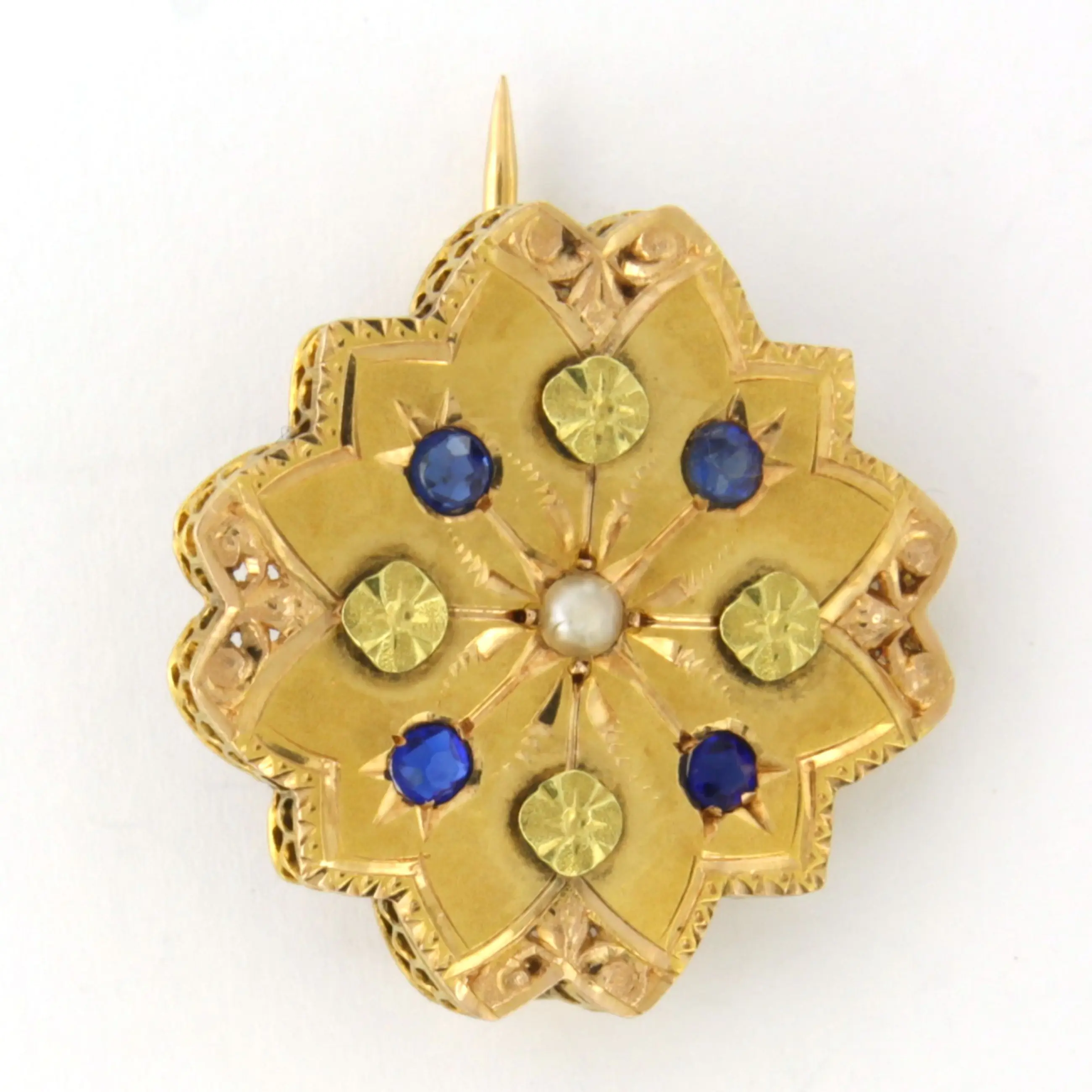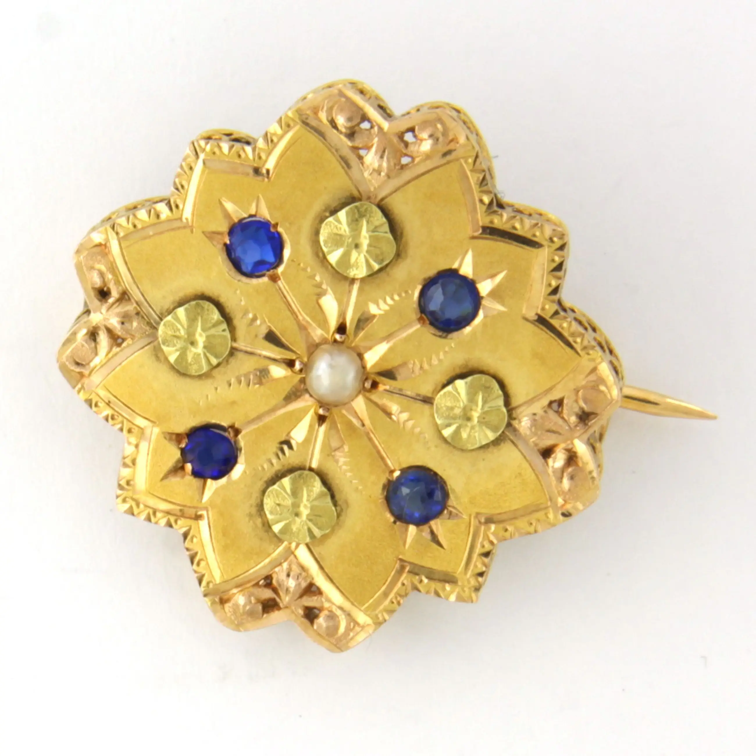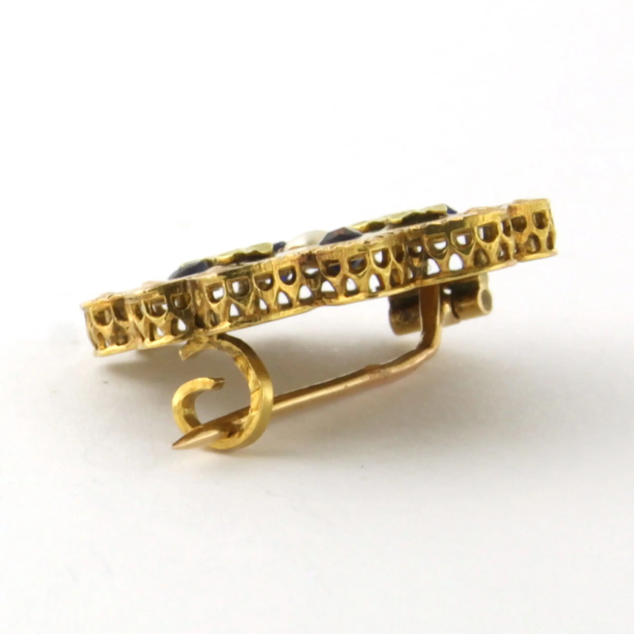 18k gouden broche bezet met saffier en parel - 2.7 gram