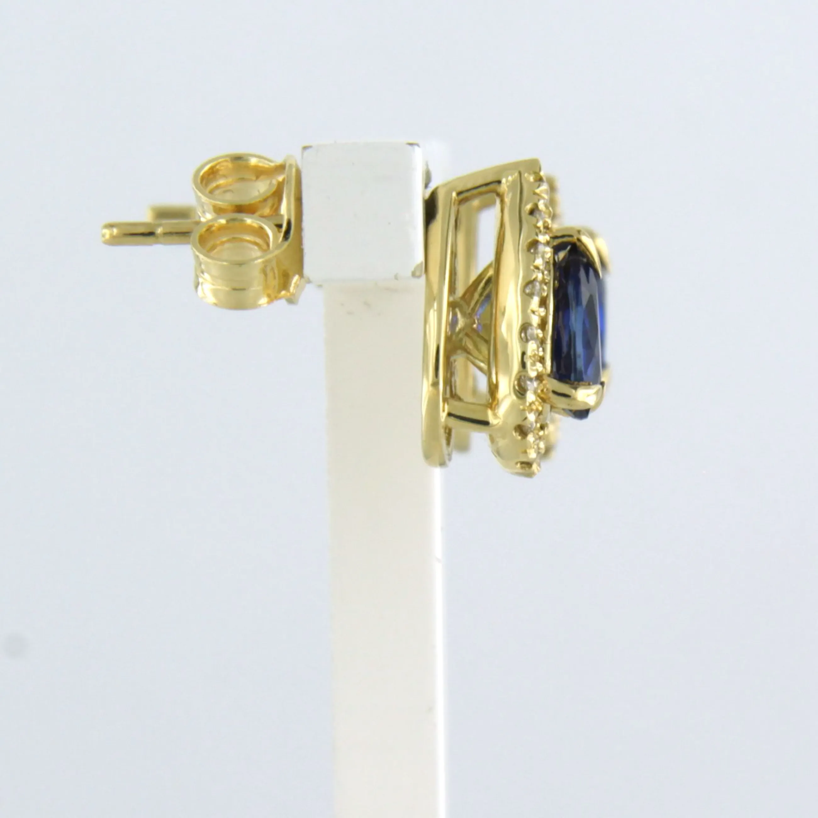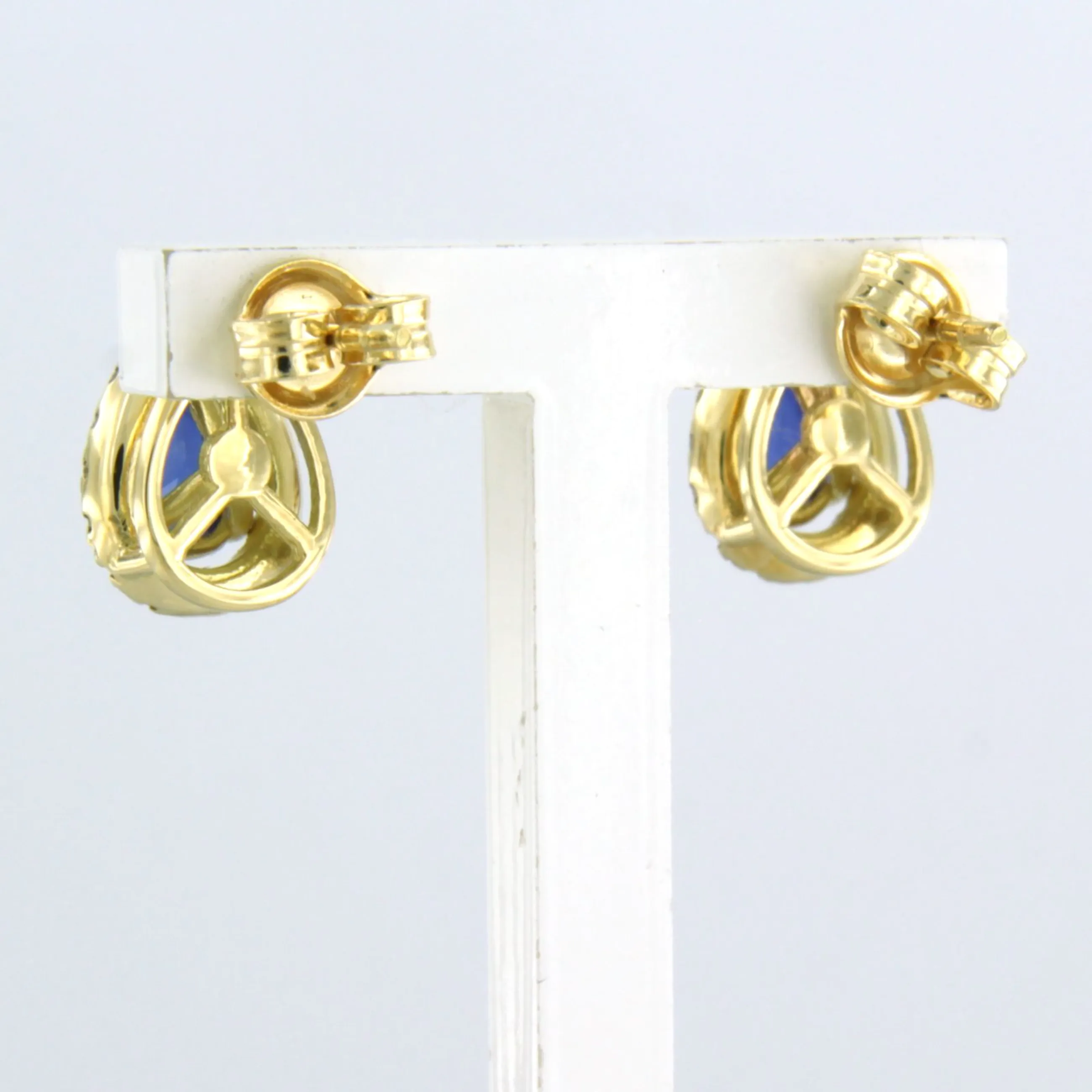18k geel gouden entourage oorknoppen bezet met saffier tot. 1,00ct en aan entourage briljant geslepen diamant tot 0,18ct - F/G - VS/SI