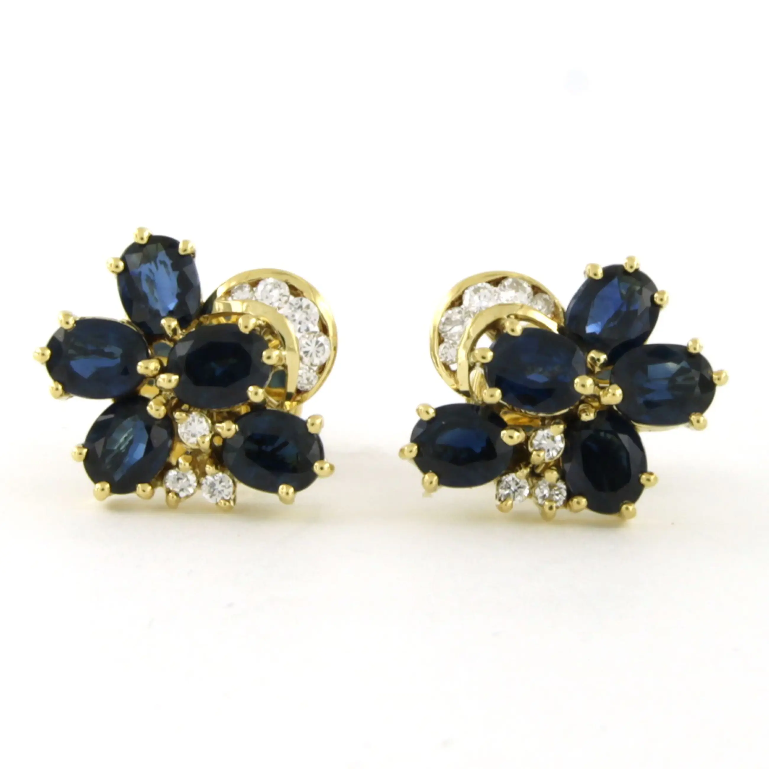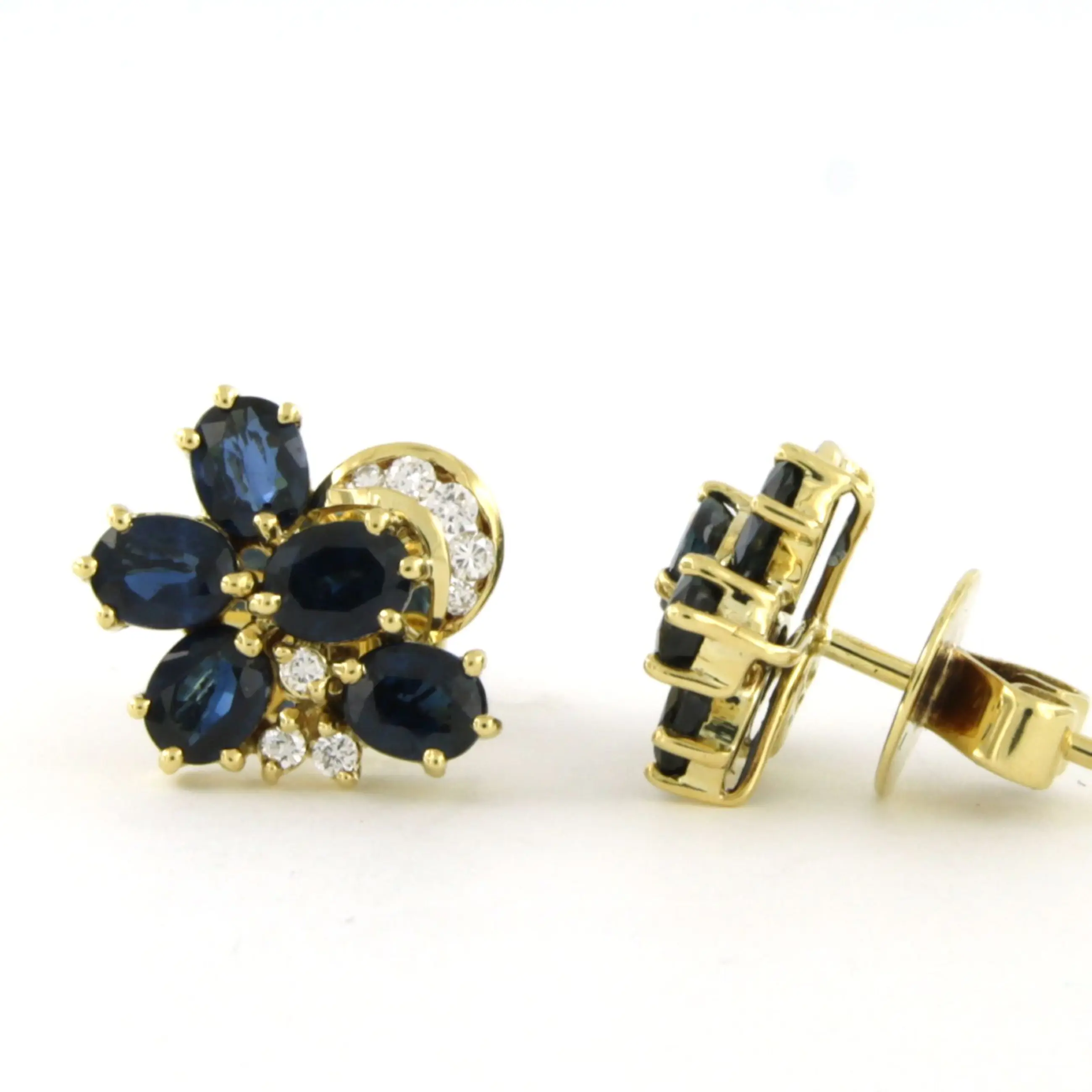 18k geel gouden oorknoppen bezet met saffier tot. 3.72ct en briljant geslepen diamant tot. 0.19ct – F/G – VS/SI