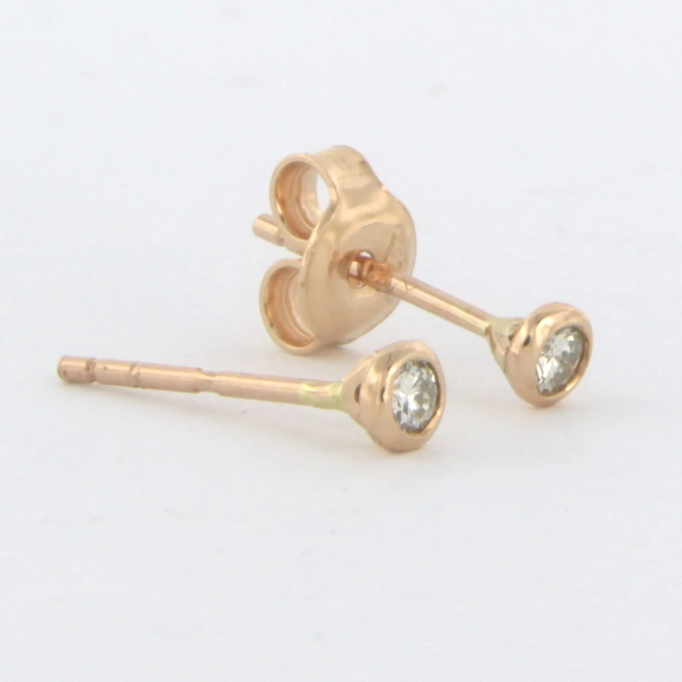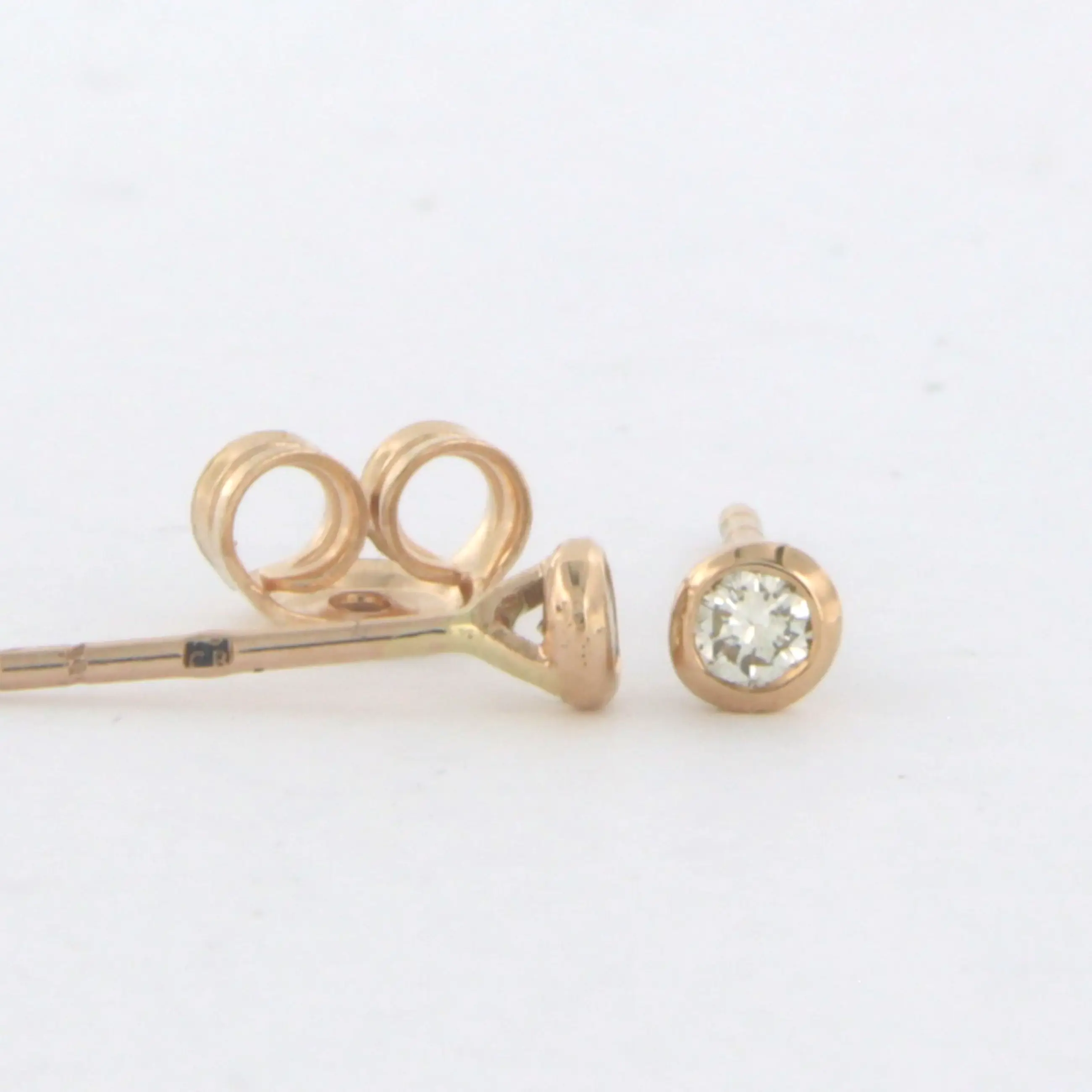 18k rood gouden oorknoppen bezet met briljant geslepen diamant 0.12ct G/H - VS/SI