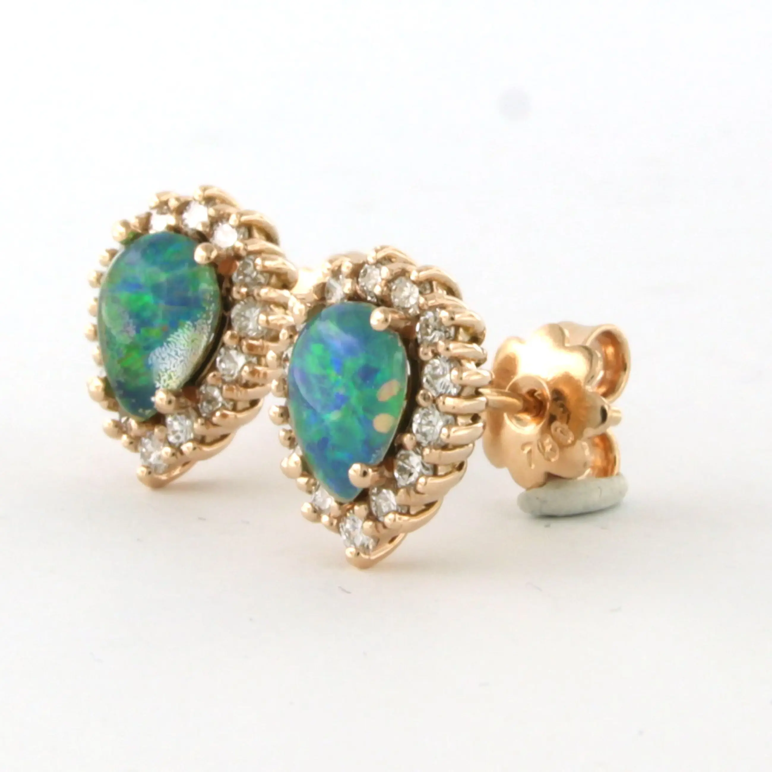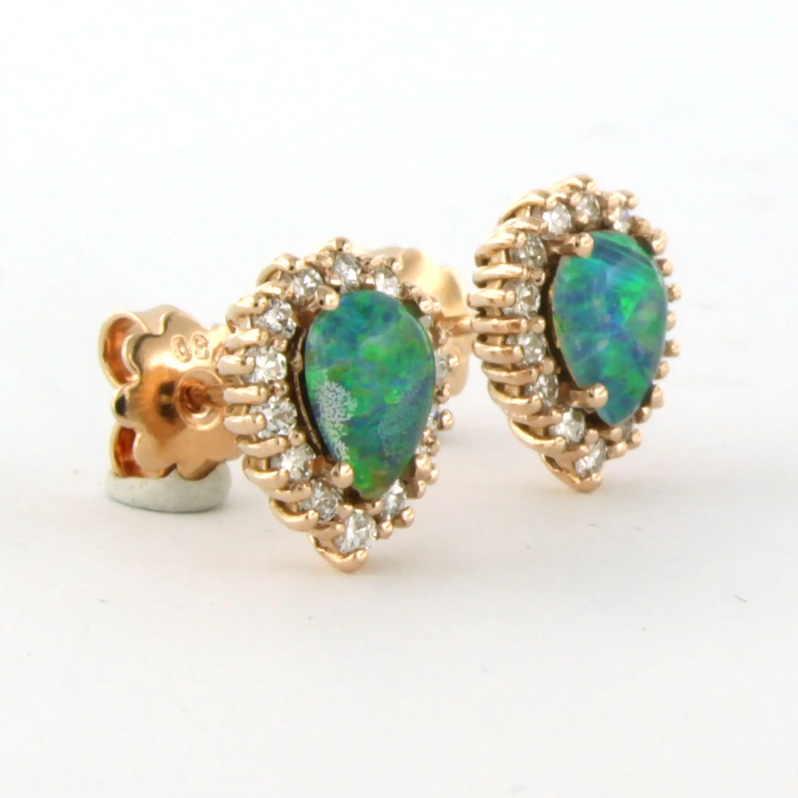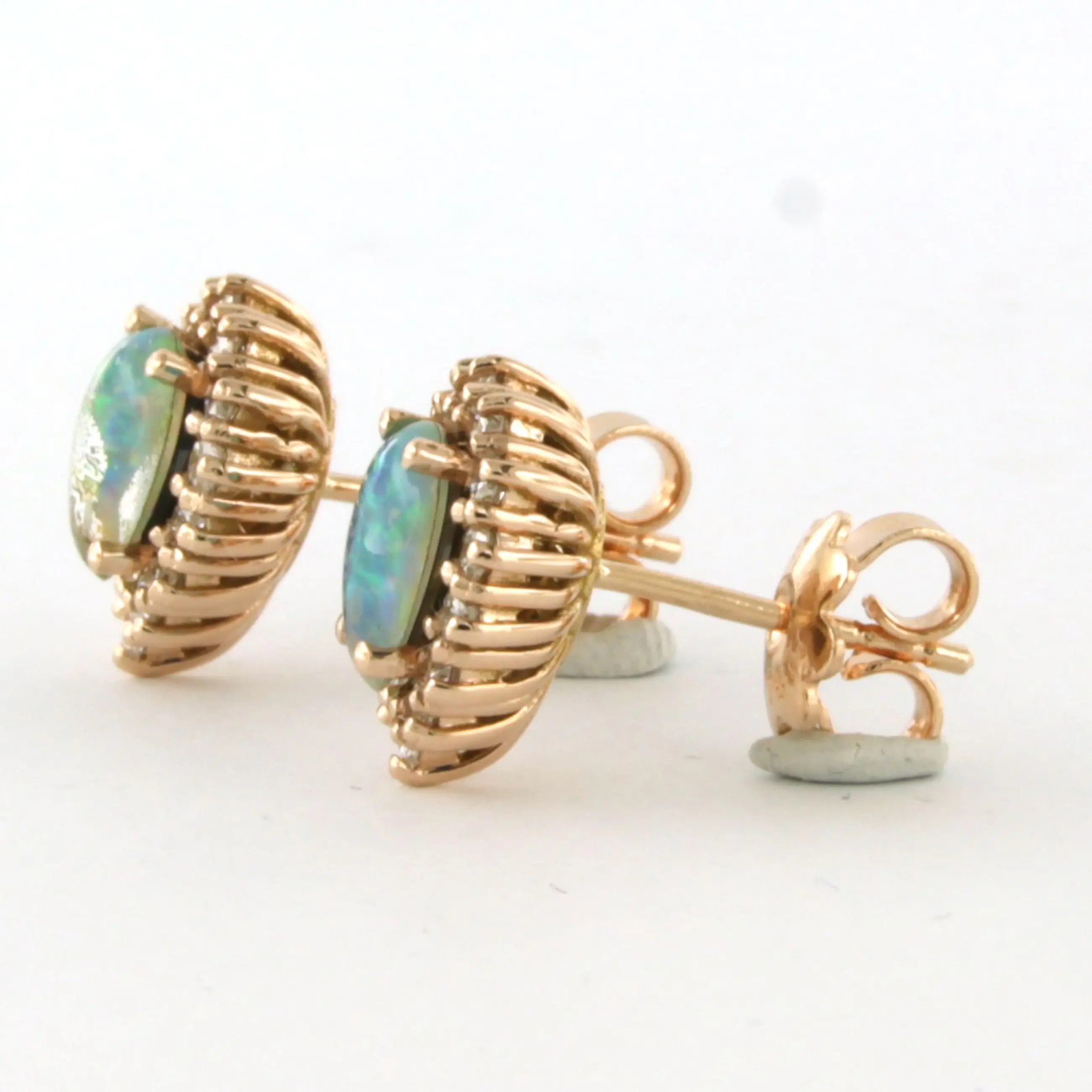 18k rosé gouden oorknoppen met opaal en briljant geslepen diamant tot. 0.52ct