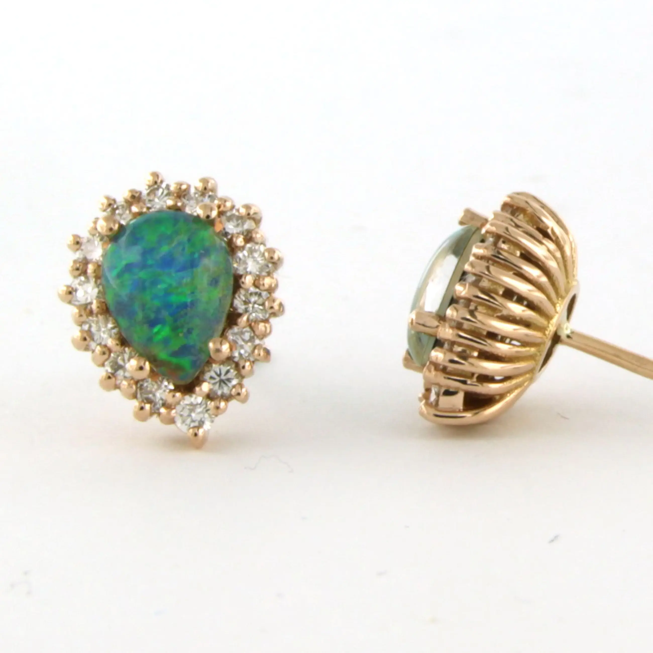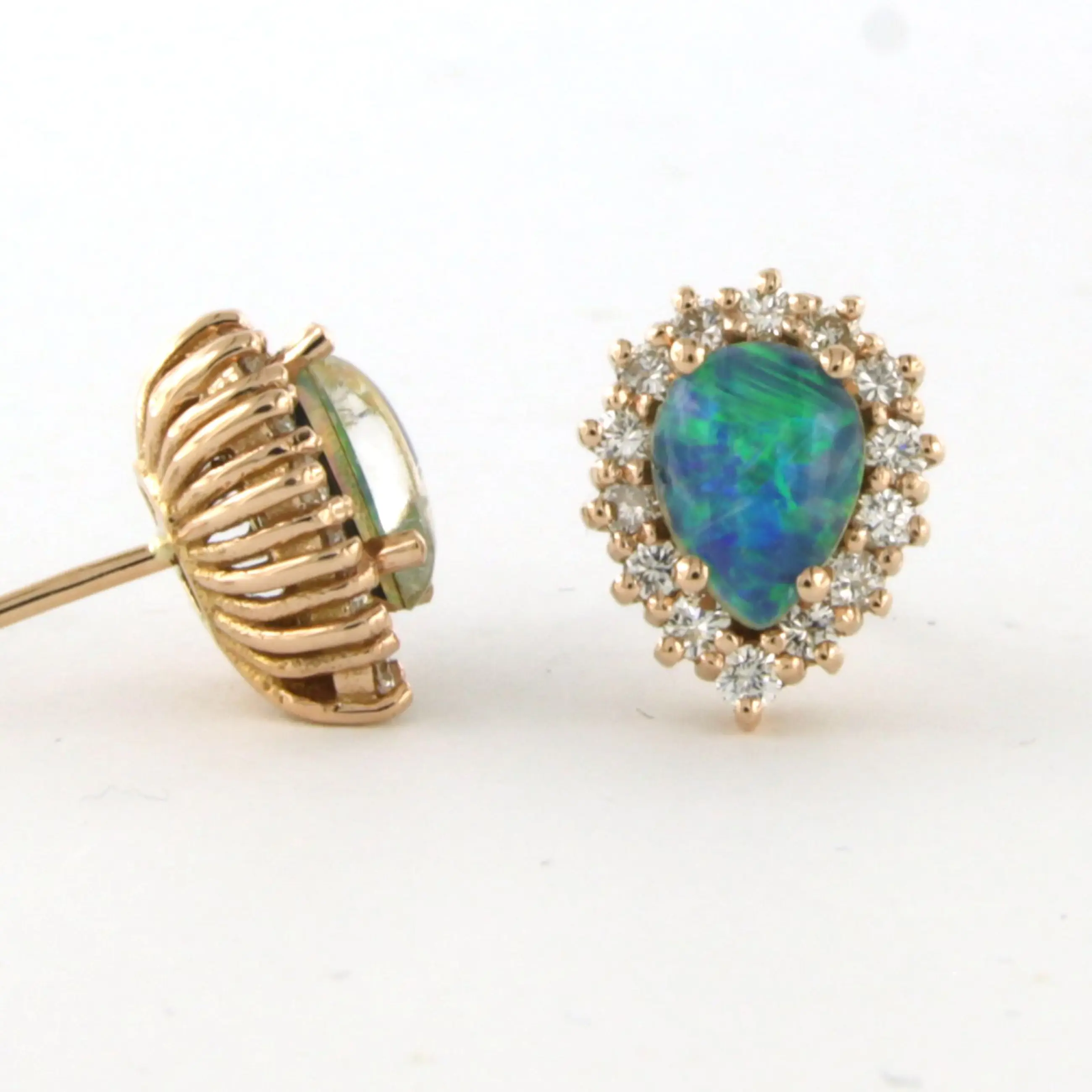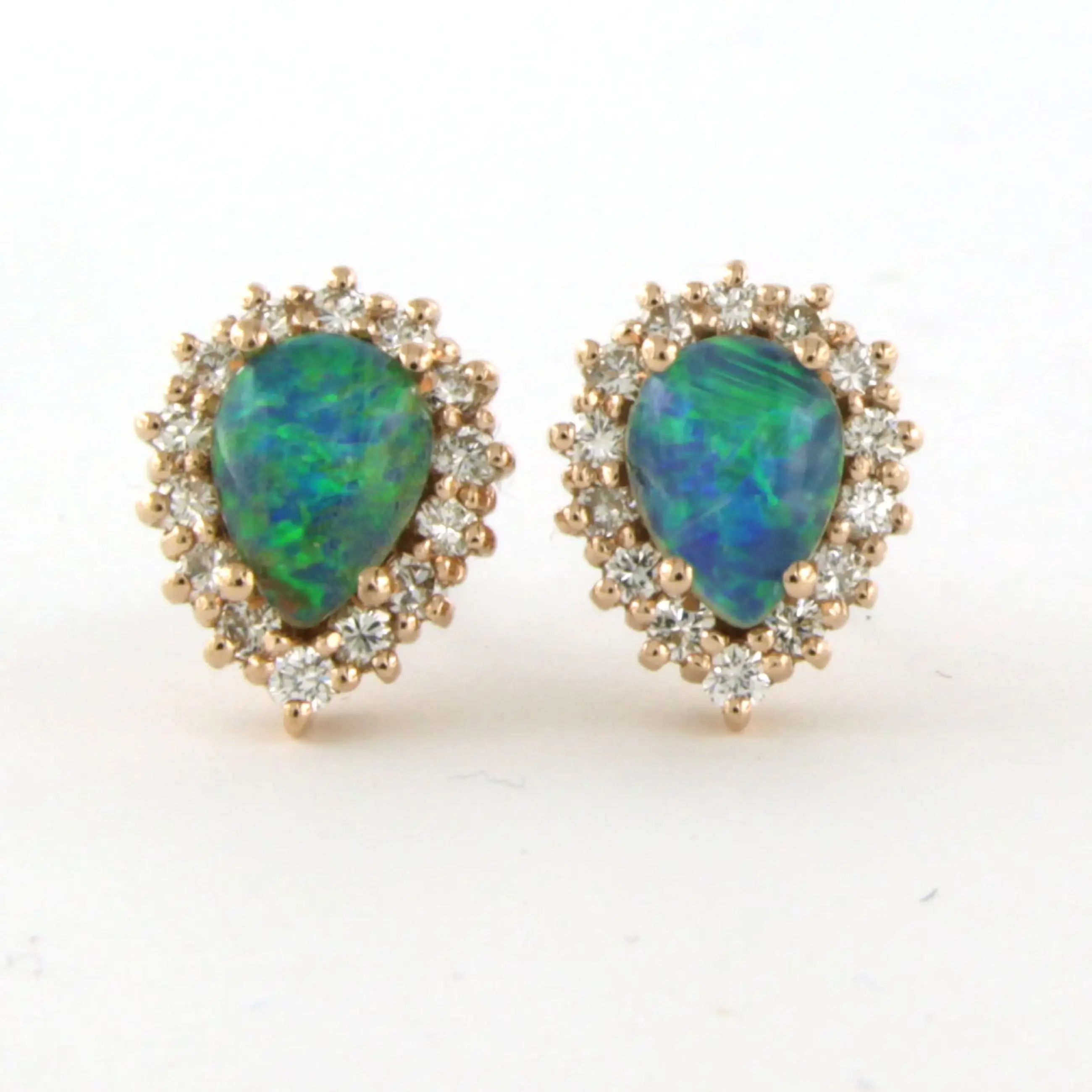 18k rosé gouden oorknoppen bezet met opaal en briljant geslepen diamant tot. 0.52ct – F/G – VS/SI