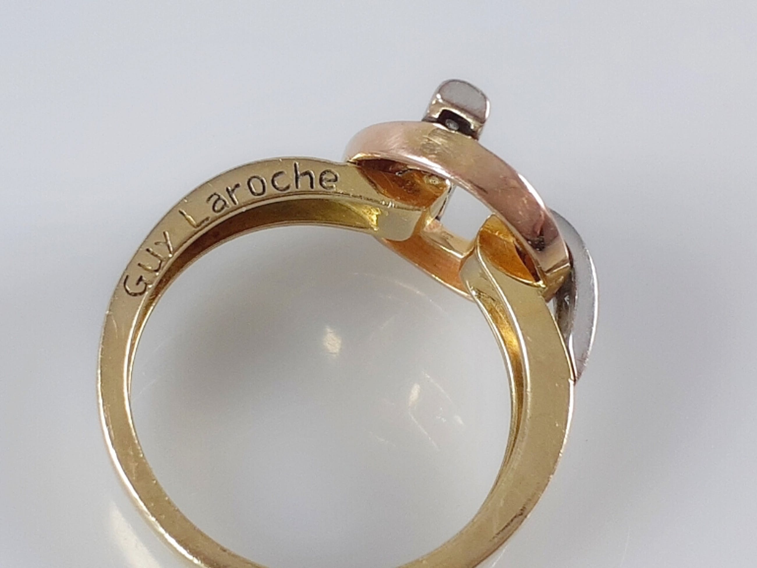 Een tijdloze en in prima staat verkerende Guy Laroche ring. Deze ring is geheel van 18 karaat goud en gestempeld met het Franse waarmerk.
