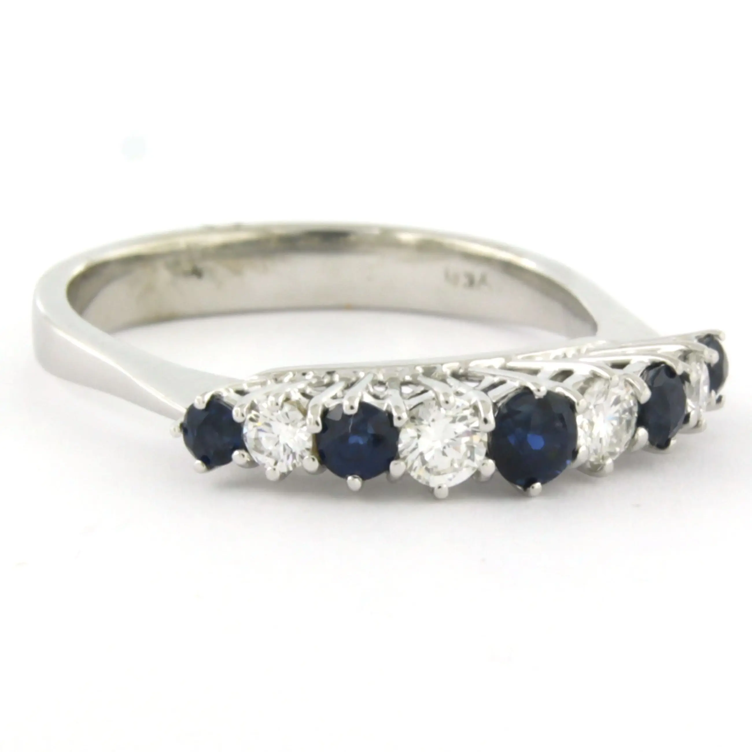 18k wit gouden ring bezet met saffier en briljant geslepen diamant tot. 0.30ct
