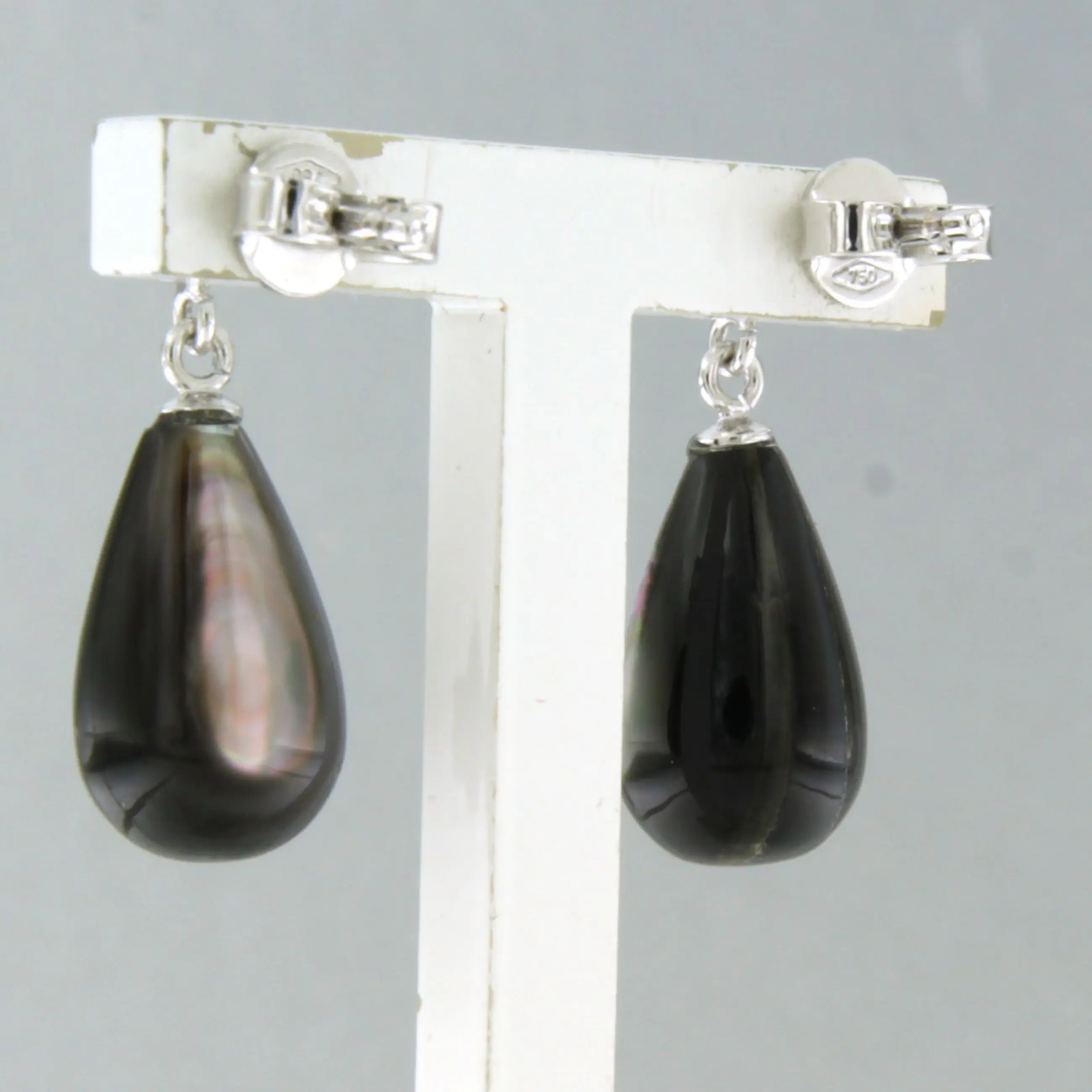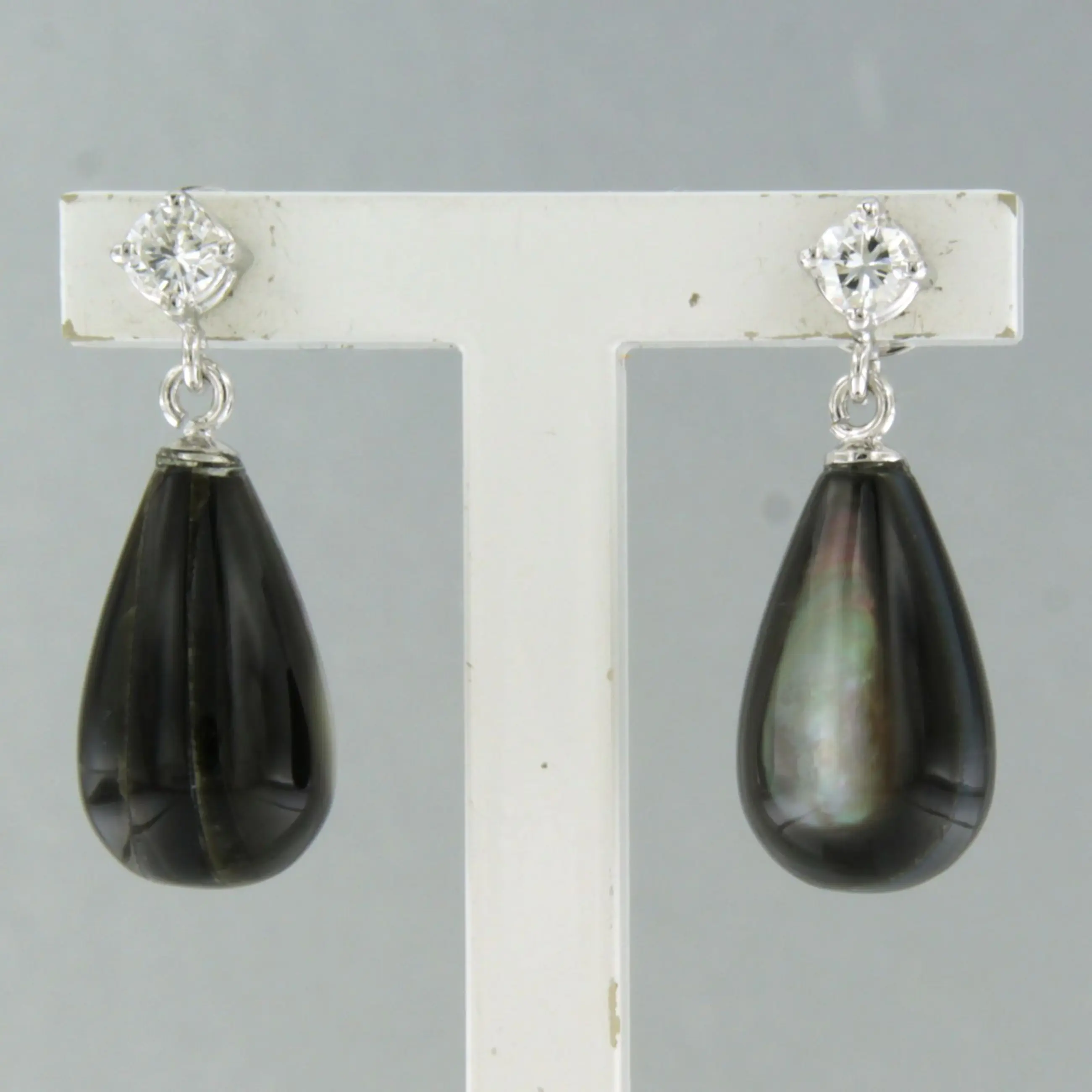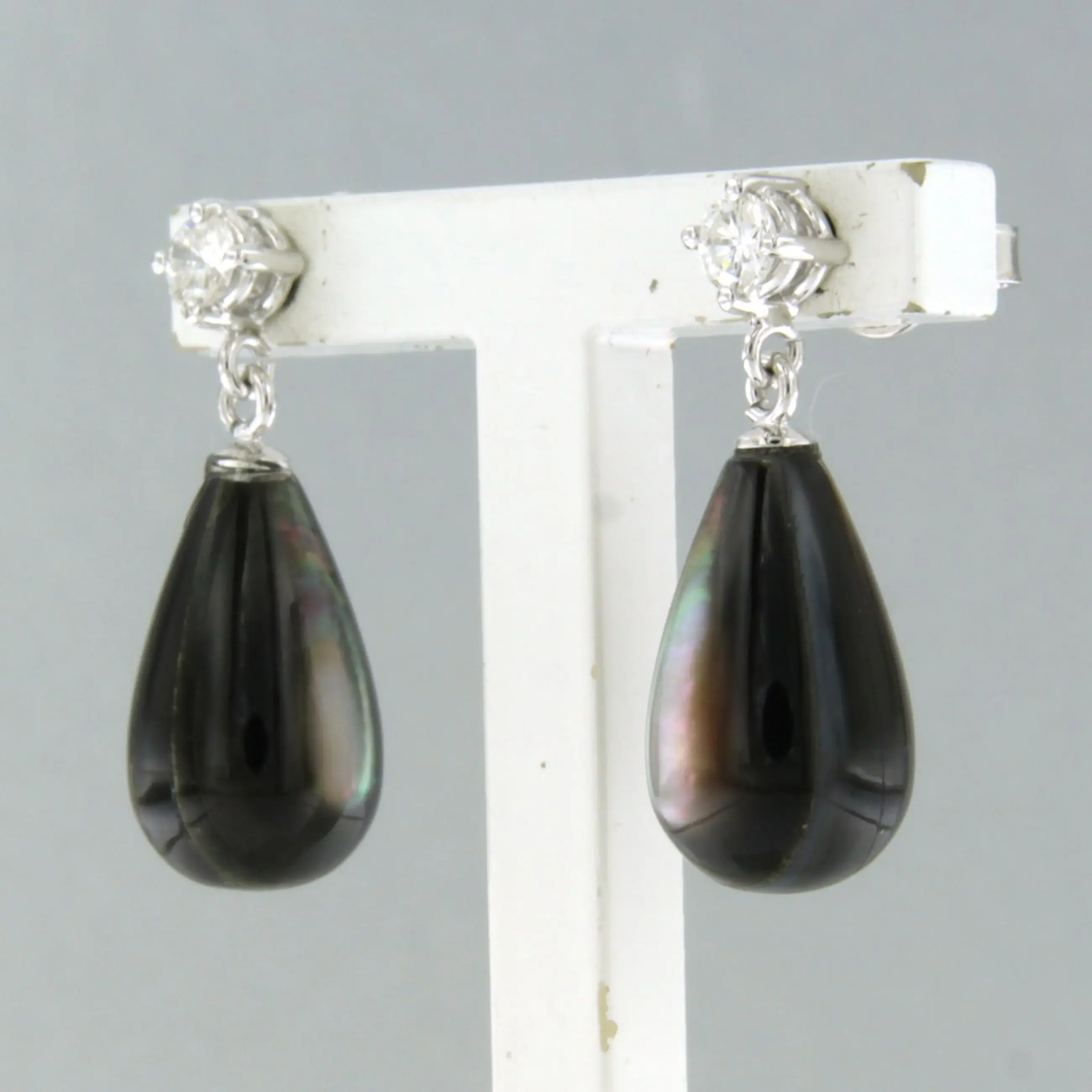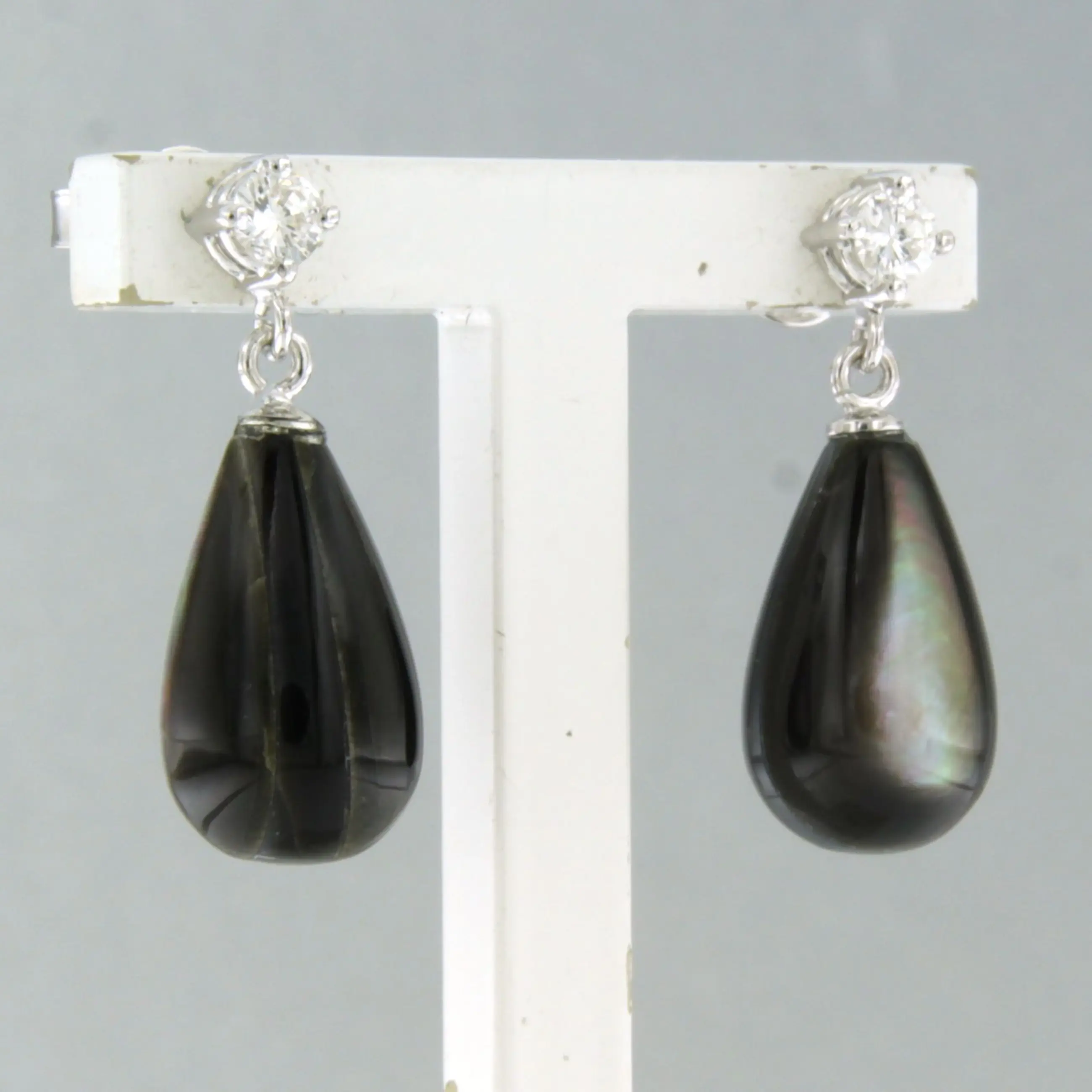 18k wit gouden oorhangers bezet met parelmoer en briljant geslepen diamant tot. 0.20ct – F/G – VS/SI