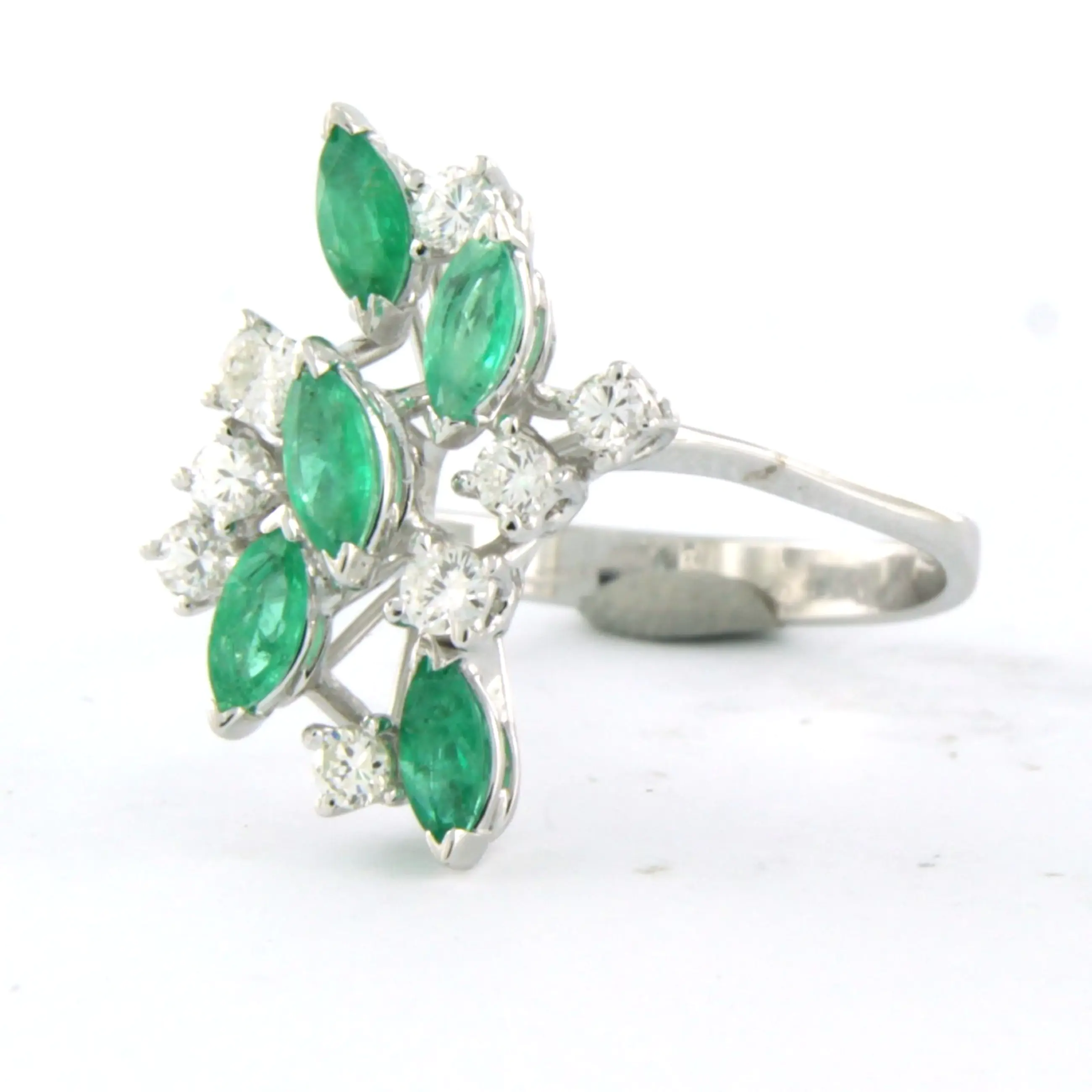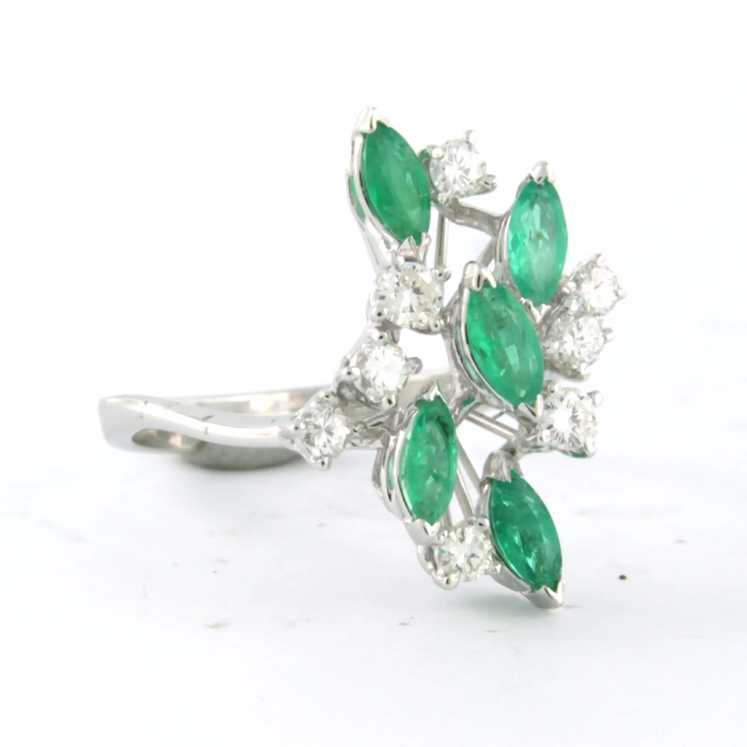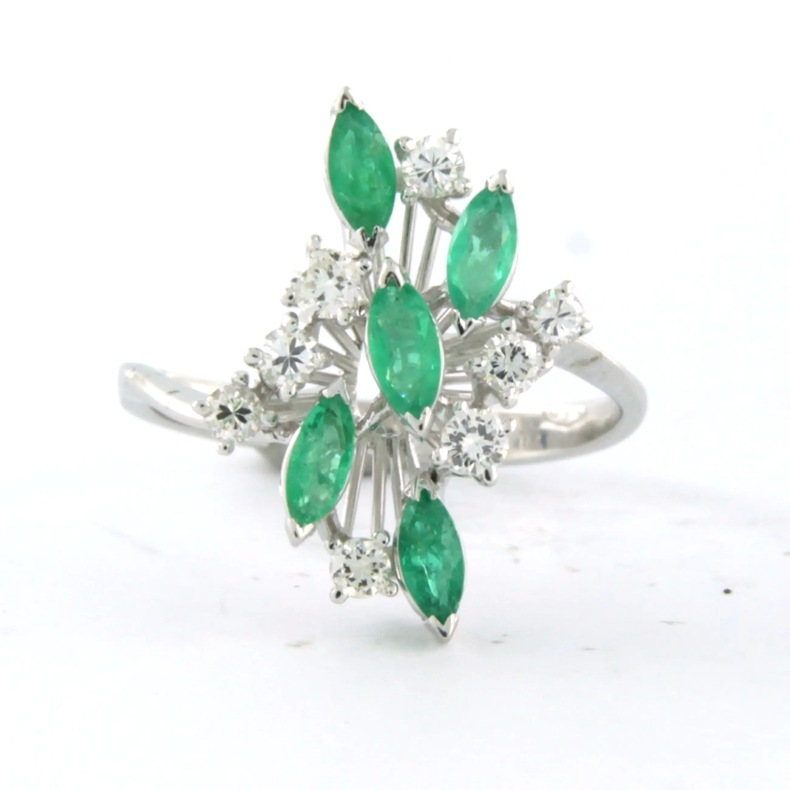 18k witgouden ring bezet met smaragd en briljant geslepen diamant tot. 0,36ct - F/G - VS/SI - ringmaat 17,25(54)